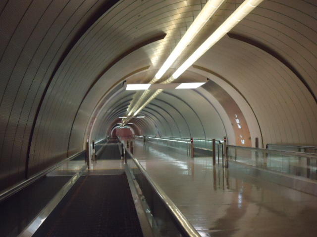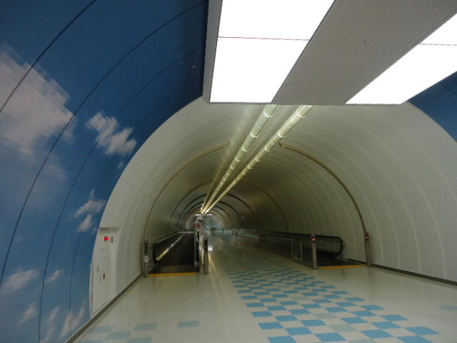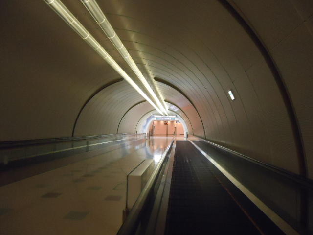 第2ターミナルから第1ターミナルへの400メートル地下道を初めて移動