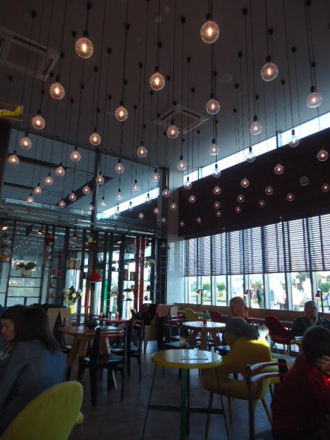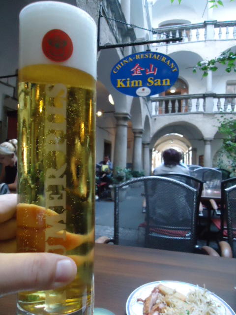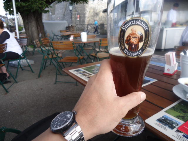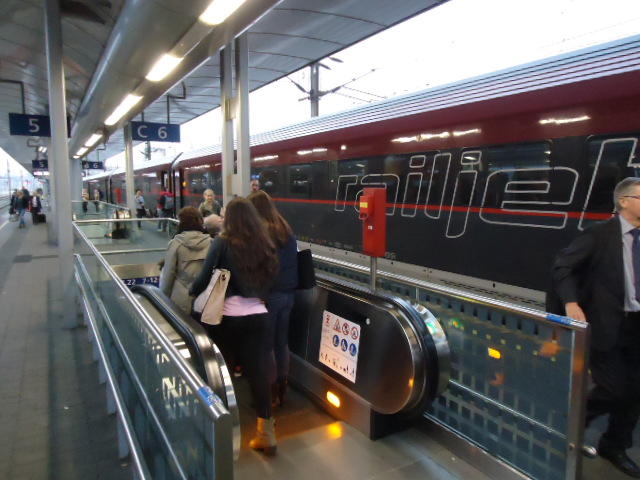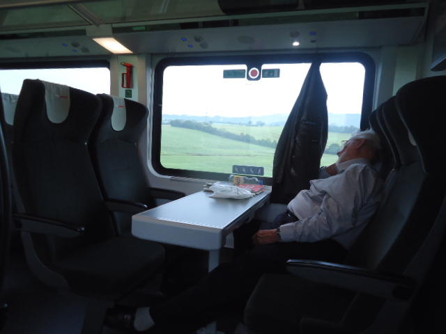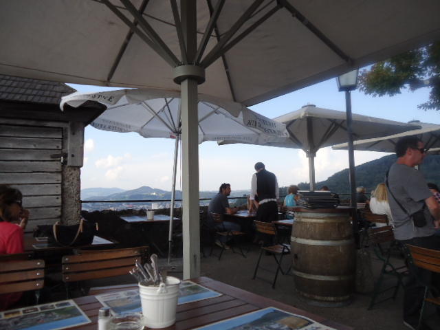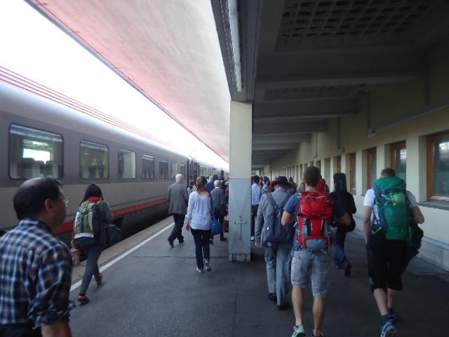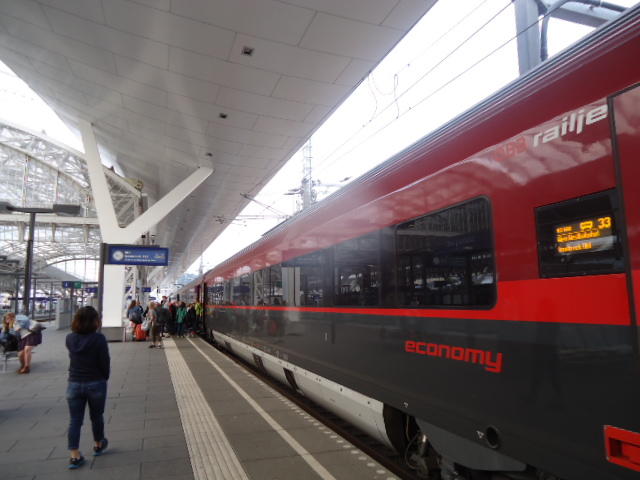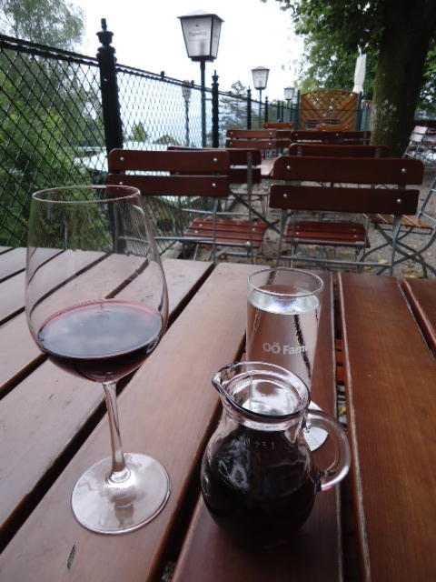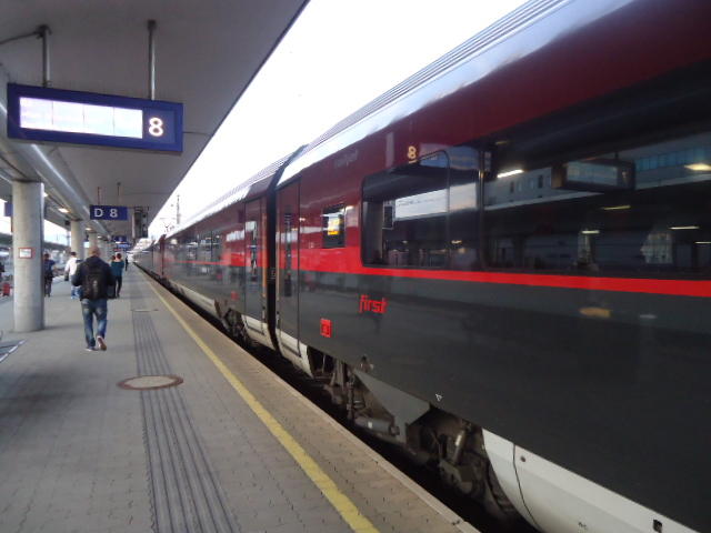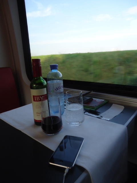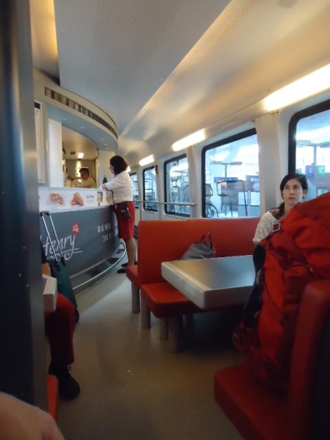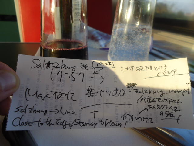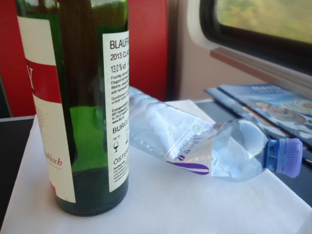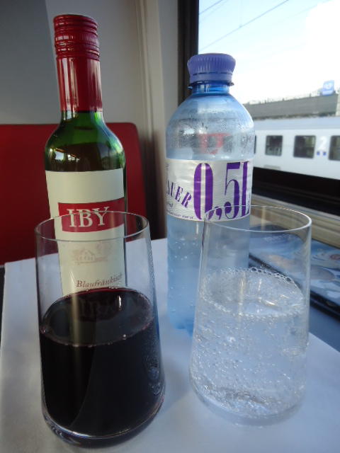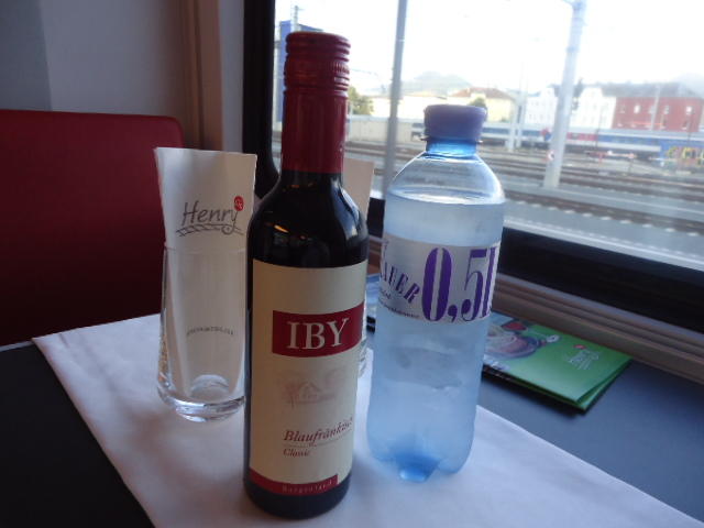 駅に戻り、リンツへの列車はそこそこ混んでいたので、食堂車でまったり