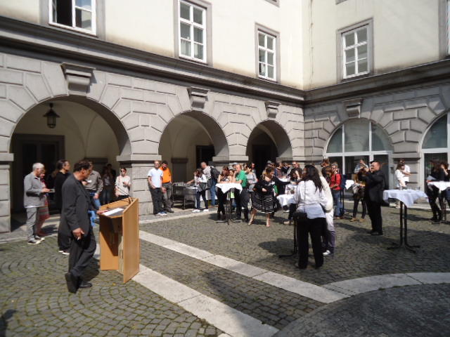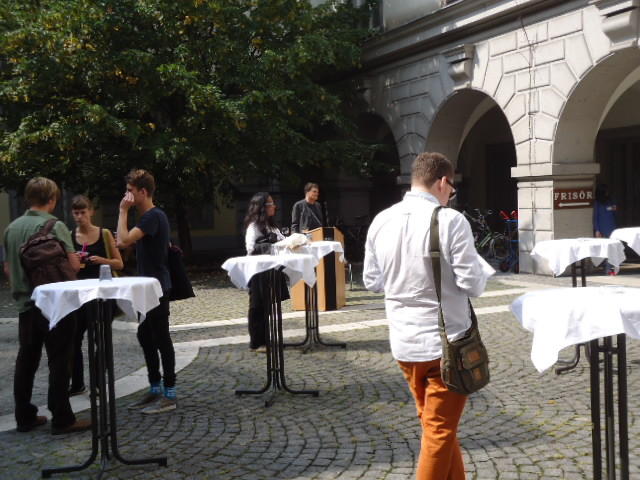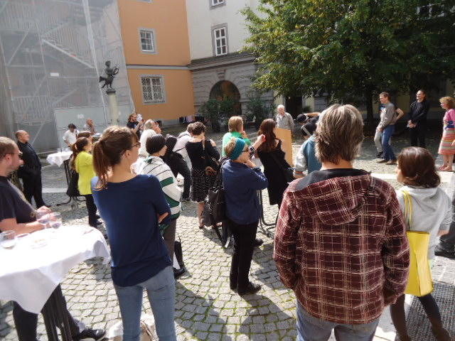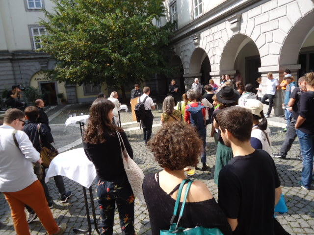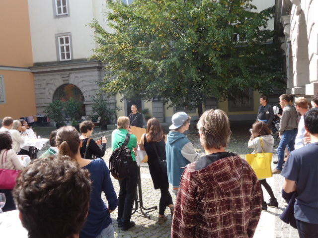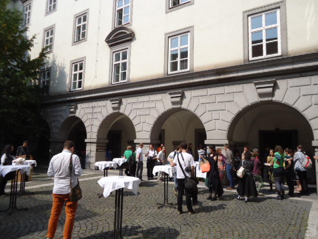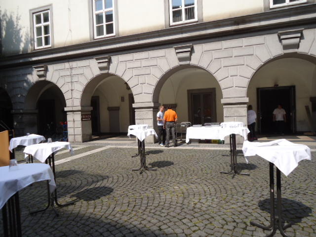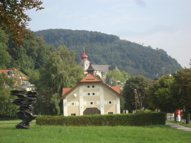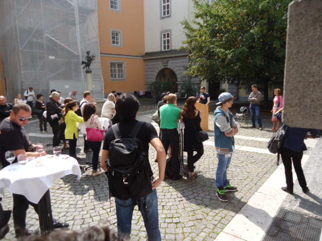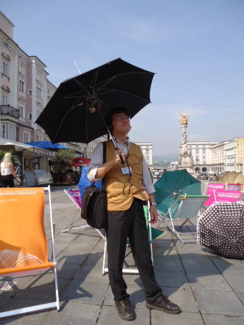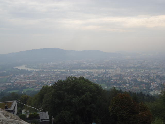 リンツを見下ろすあの丘の上のいつもの教会まで、ハイキング。休憩のカフェで三輪さんの講演予定を発見