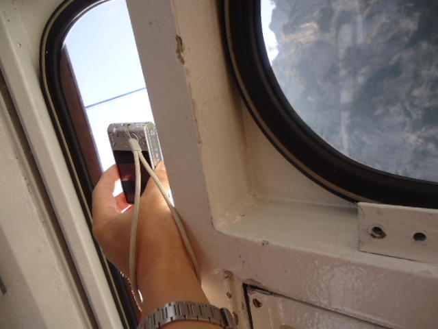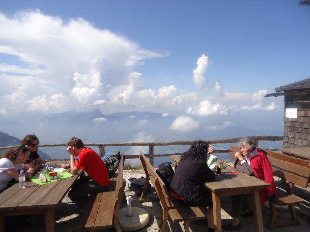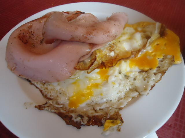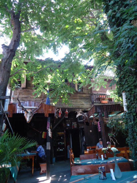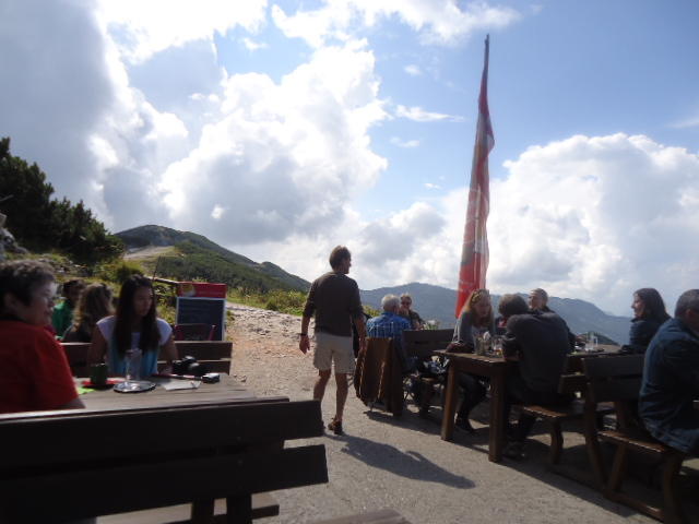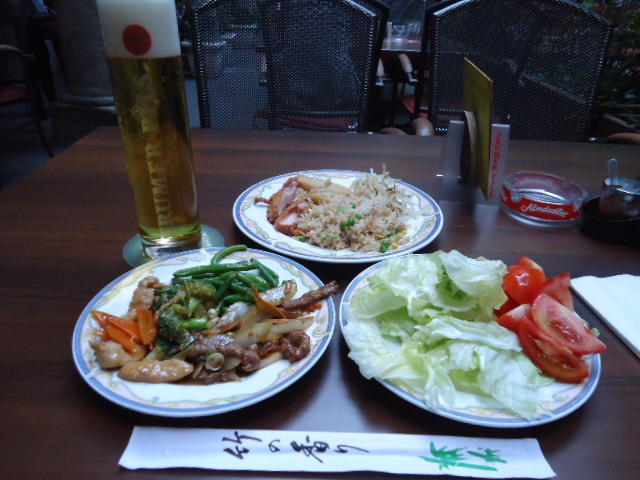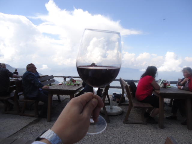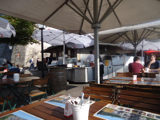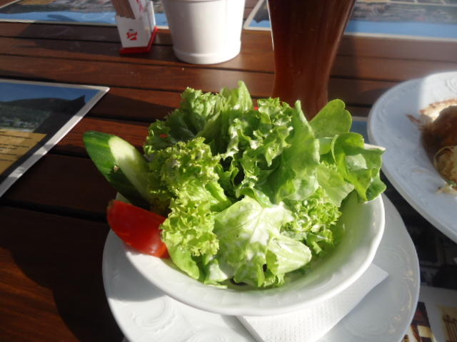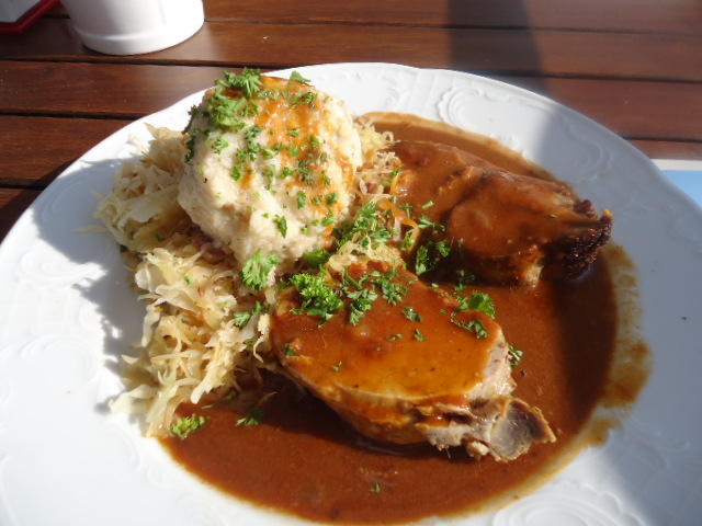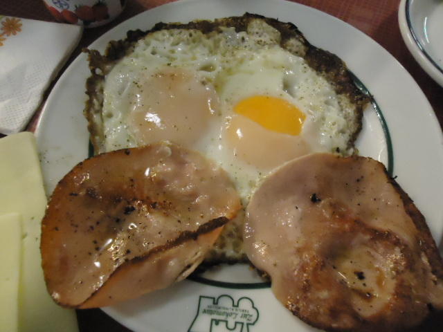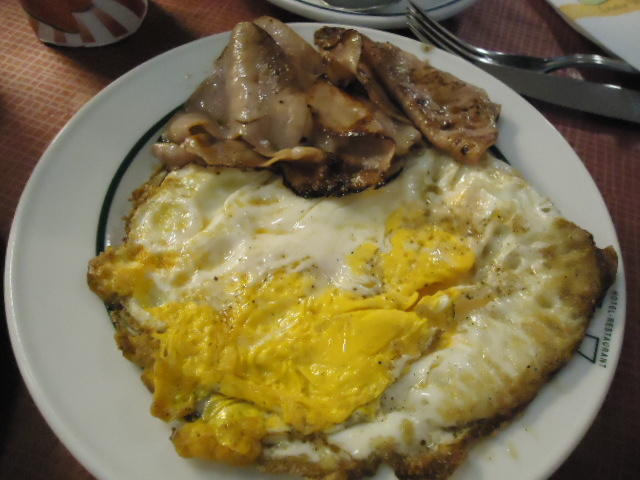 見晴らしのいいカフェで、出発して1週間で初めて、肉らしい肉を喰ってみた(^_^)