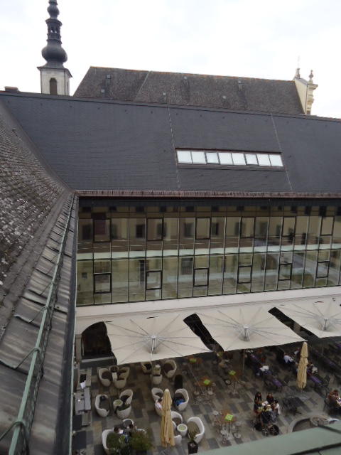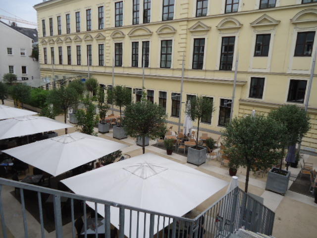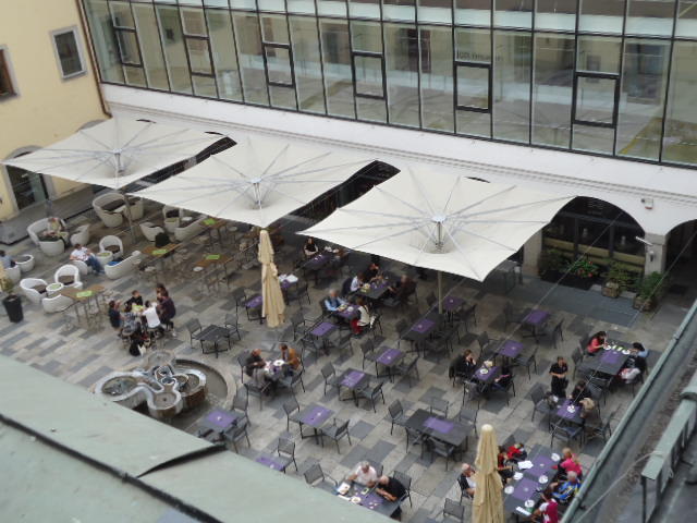 現代美術館のテラスは絶景というので、ザルツブルクカードで無料のエレベータで上り、美術館には入らず(^_^;)