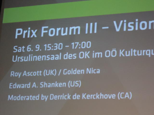 引き続き、新しい「パイオニア」部門のRoy Ascott氏のフォーラム