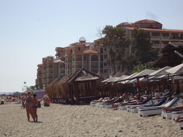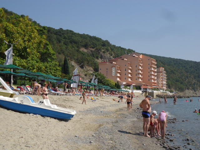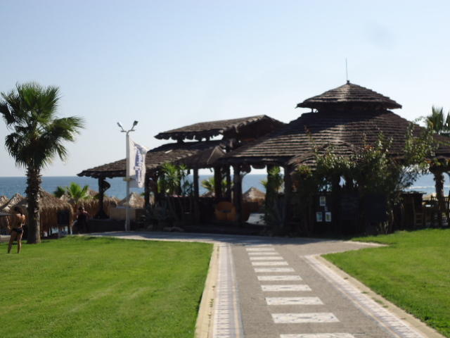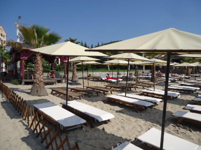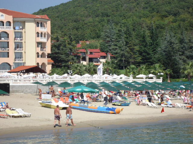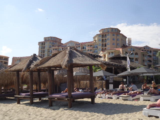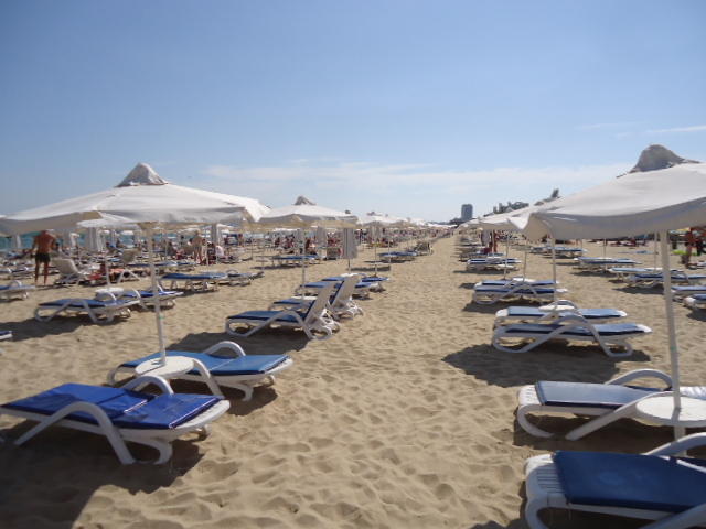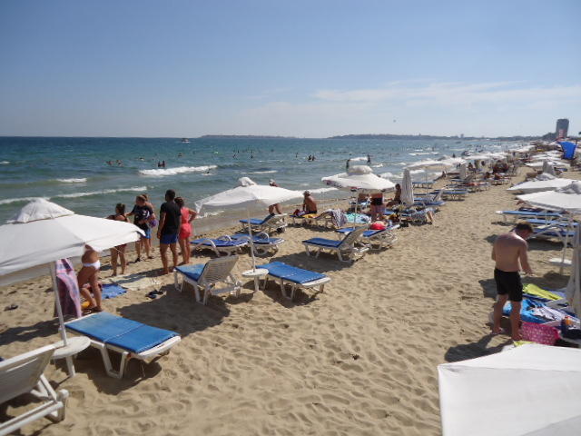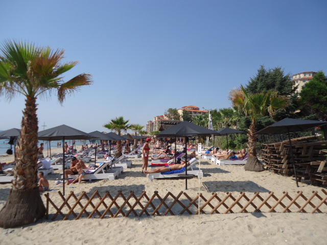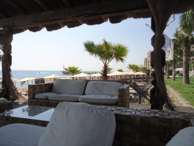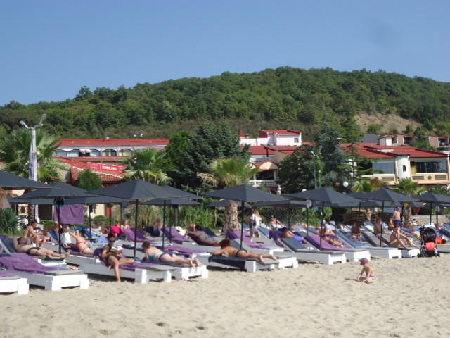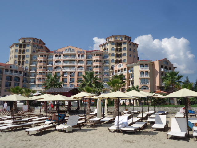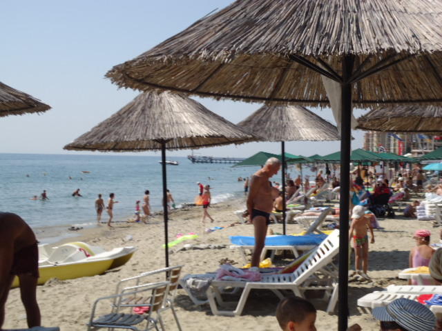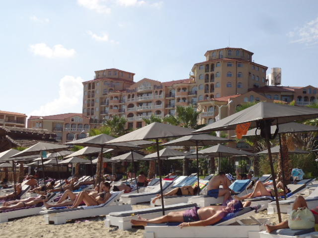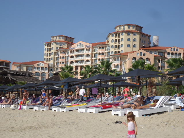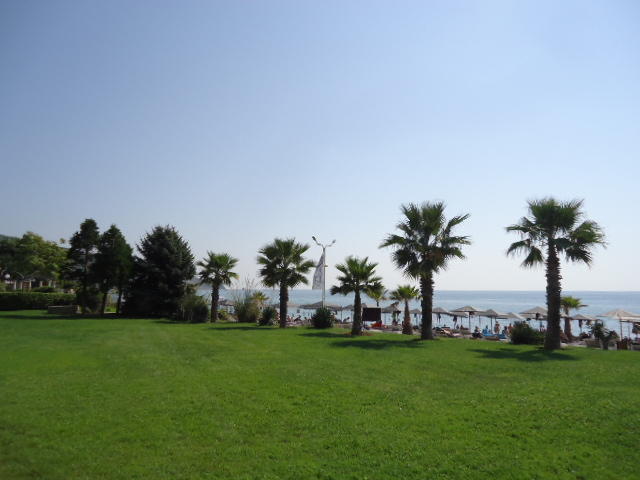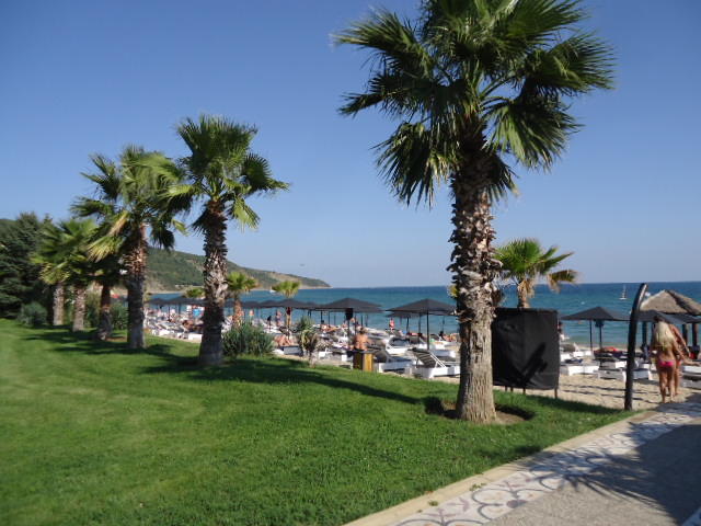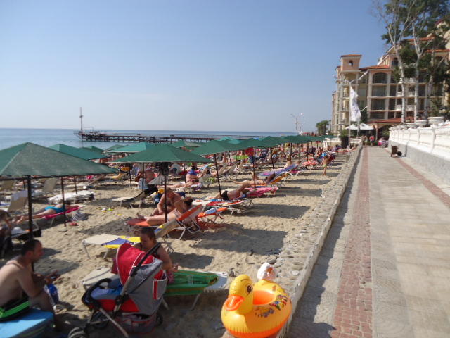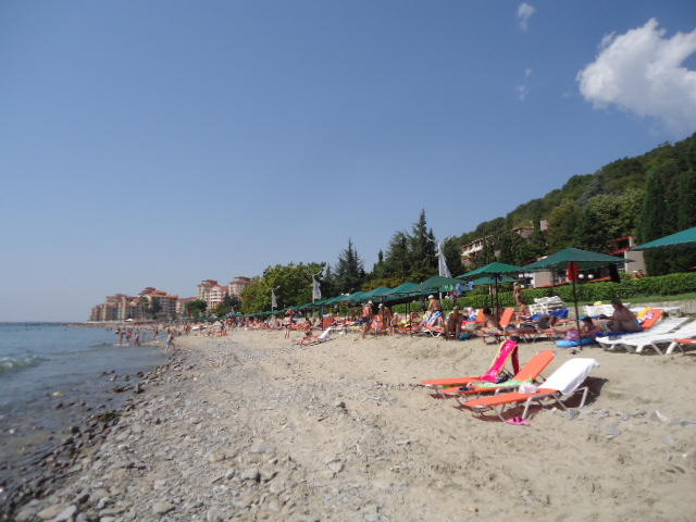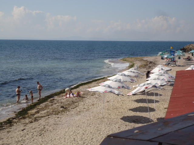 陽が高くなってきたので、とりあえず徒歩数分のプライベートビーチに行ってみると、さすが黒海沿岸の屈指のビーチリゾートという風景が・・・