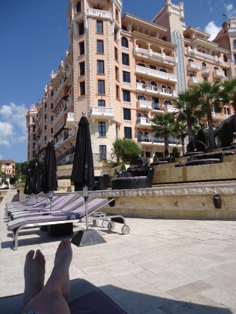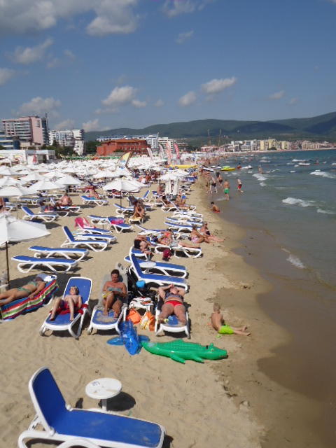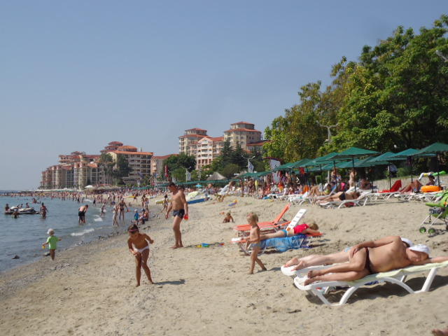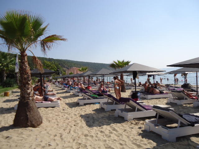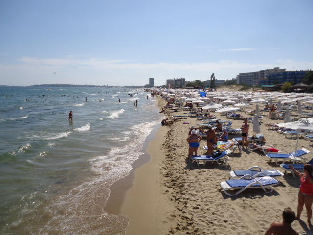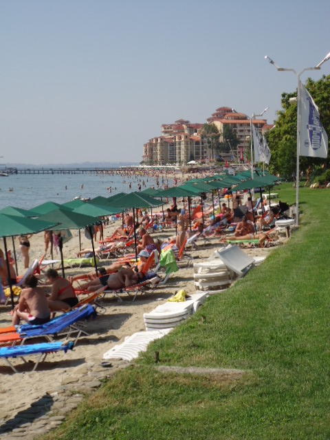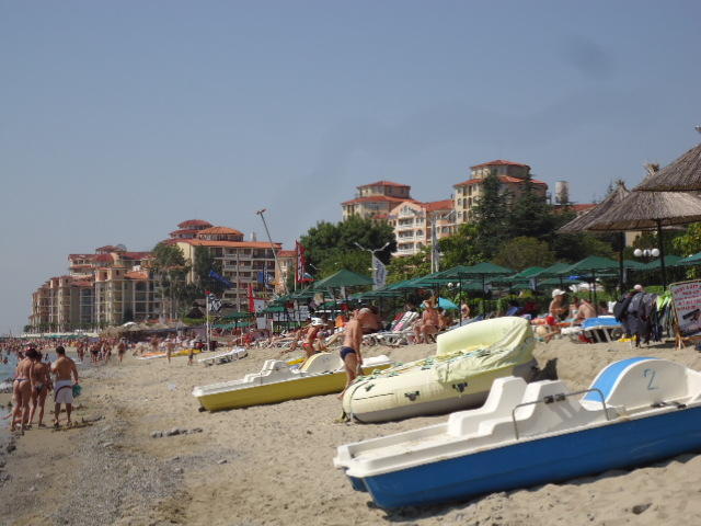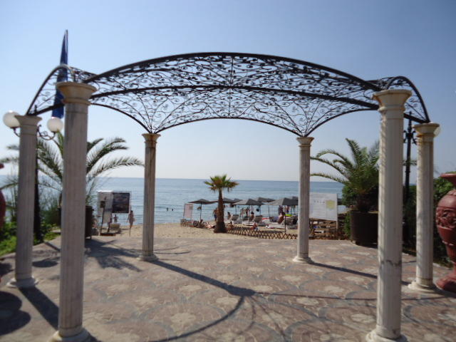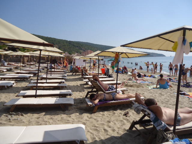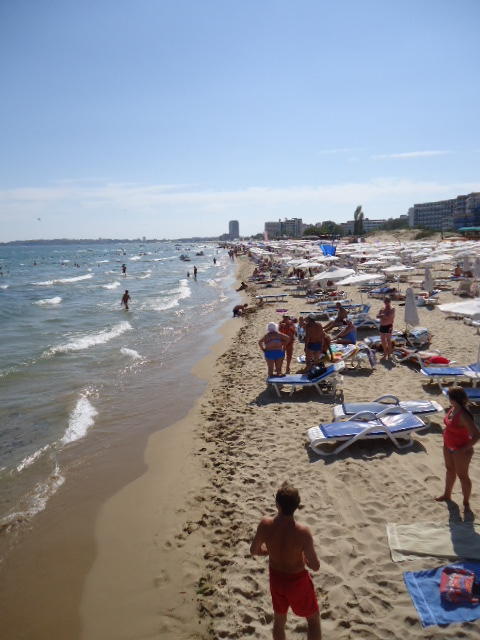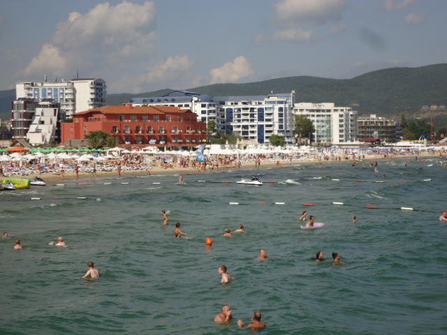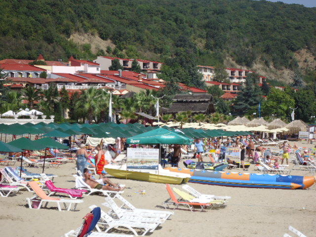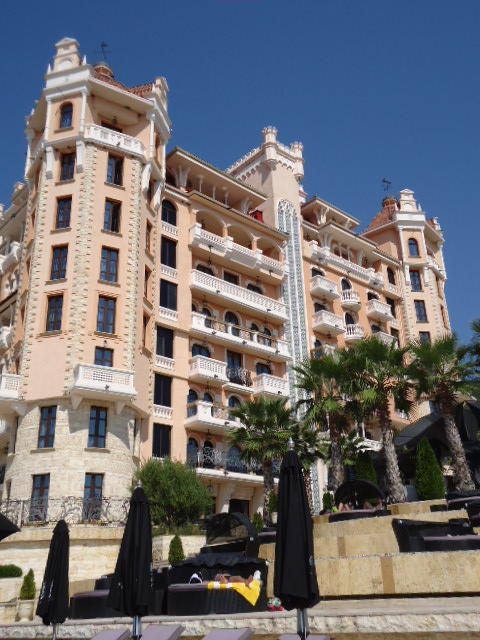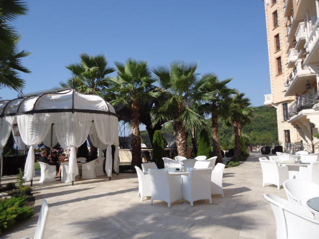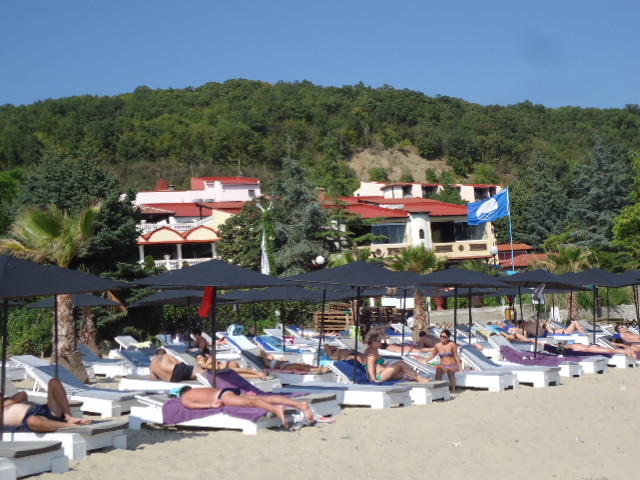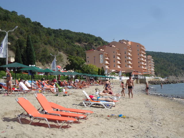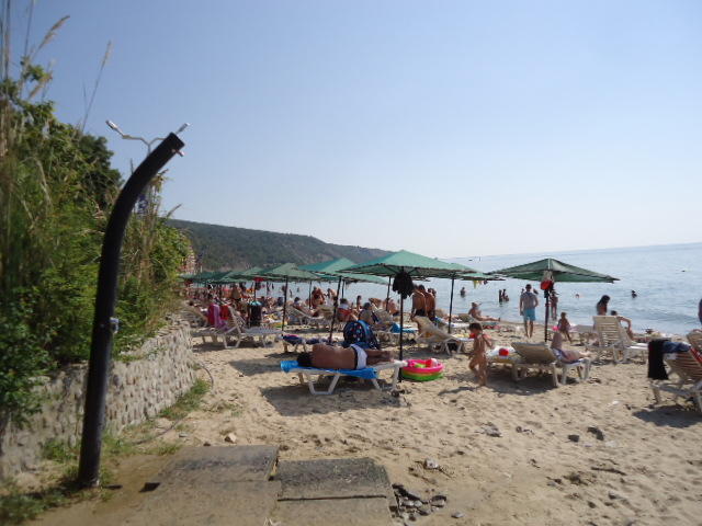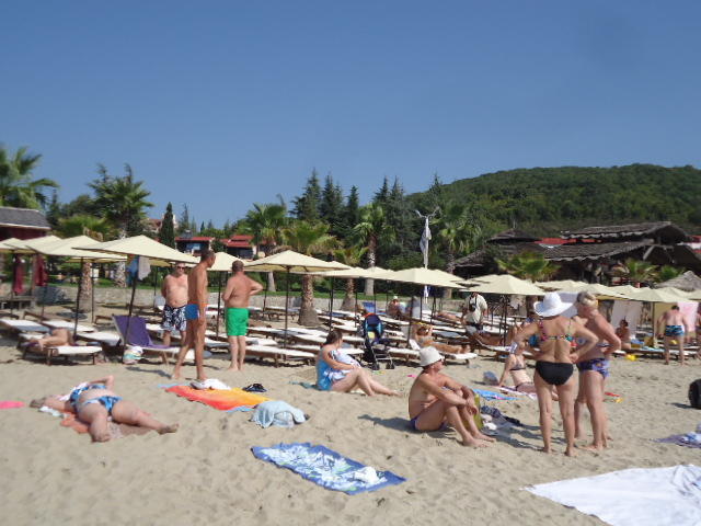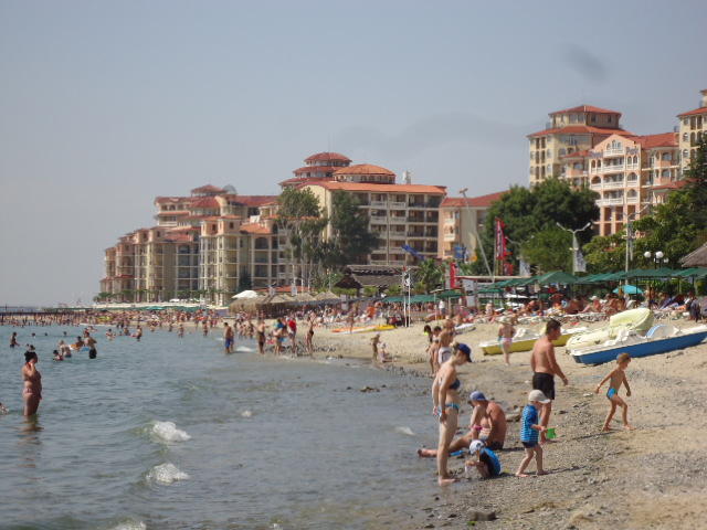 陽が高くなってきたので、とりあえず徒歩数分のプライベートビーチに行ってみると、さすが黒海沿岸の屈指のビーチリゾートという風景が・・・