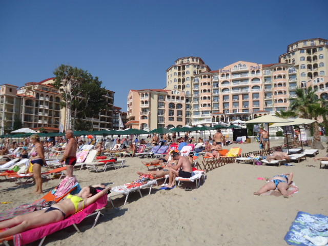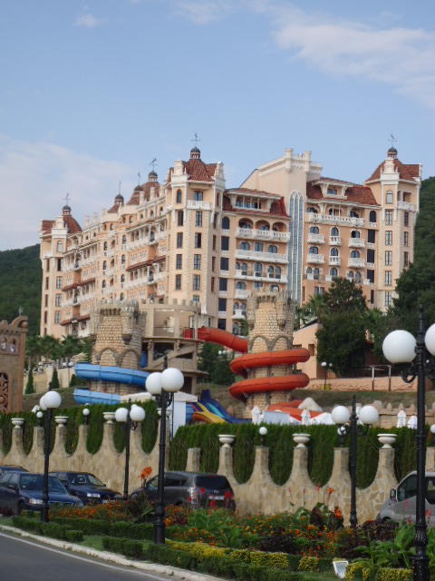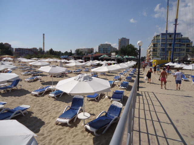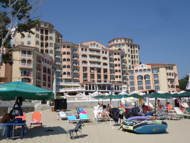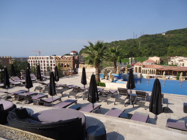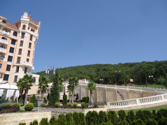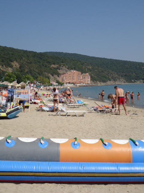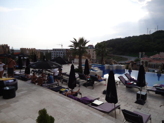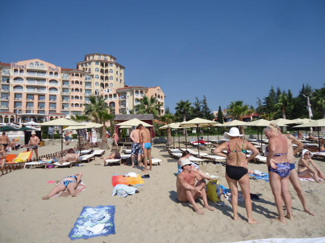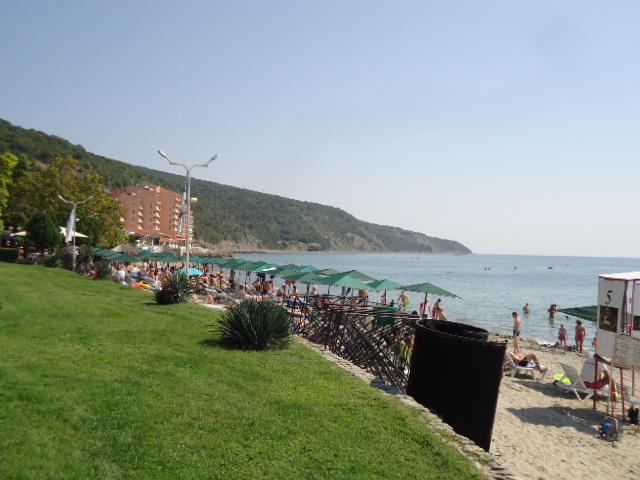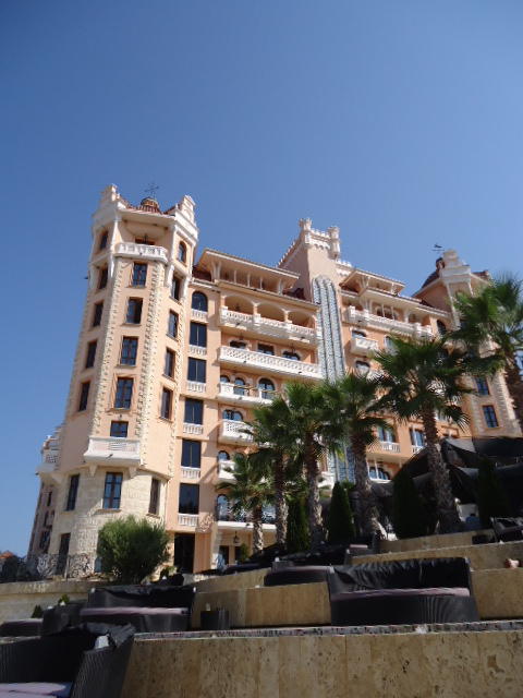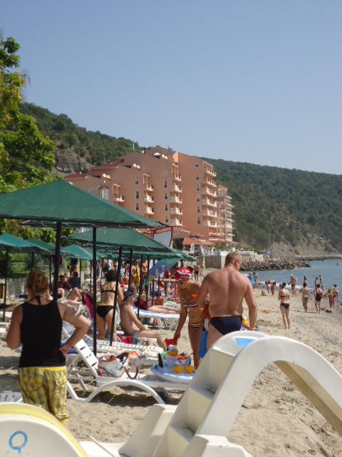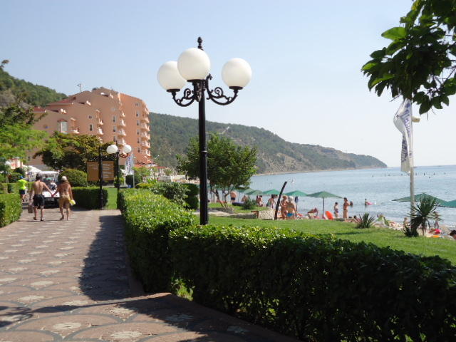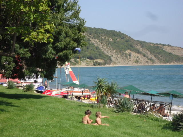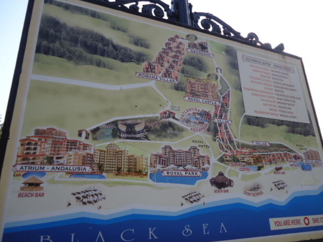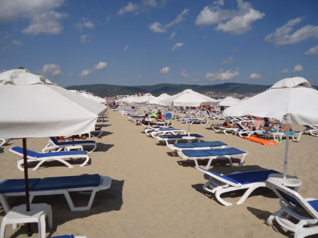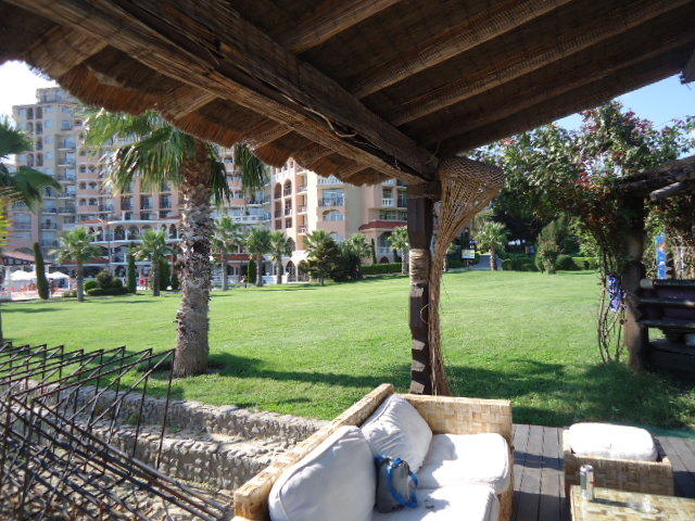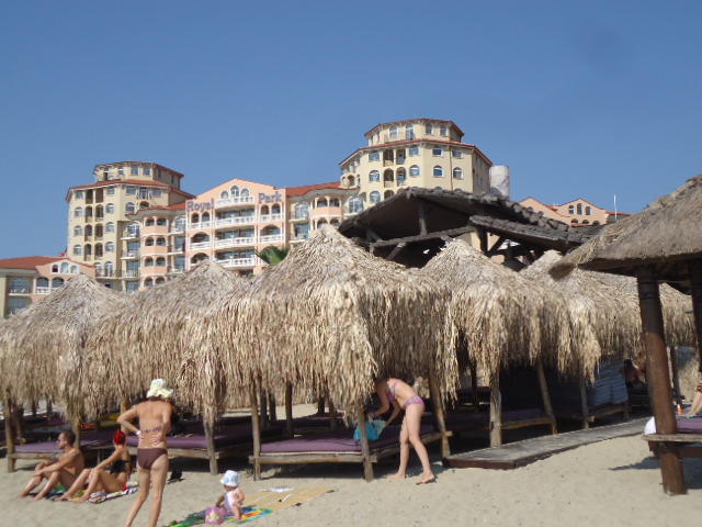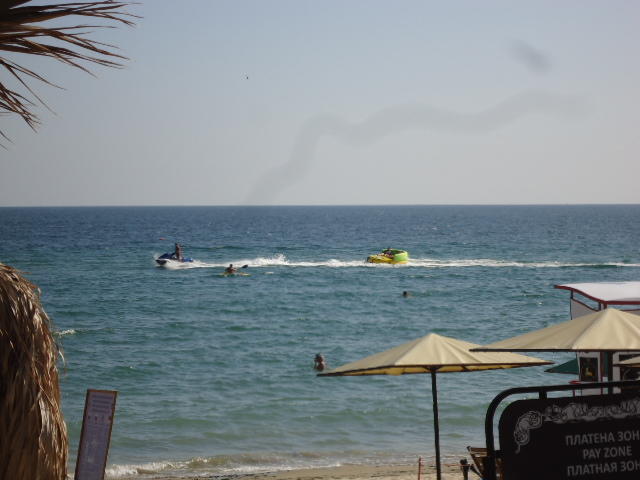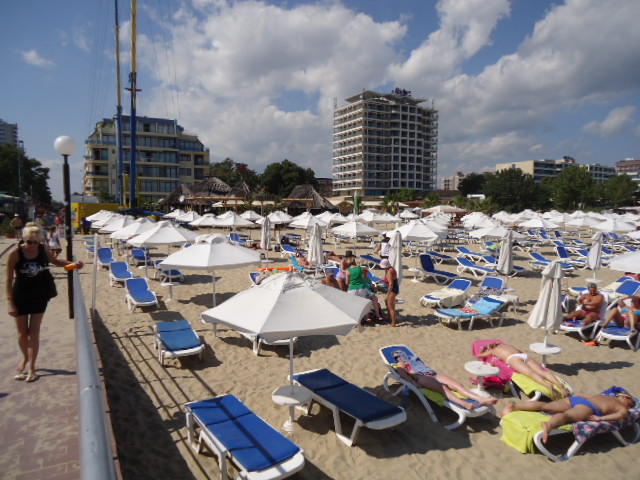 陽が高くなってきたので、とりあえず徒歩数分のプライベートビーチに行ってみると、さすが黒海沿岸の屈指のビーチリゾートという風景が・・・