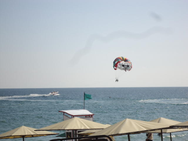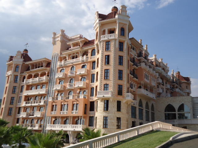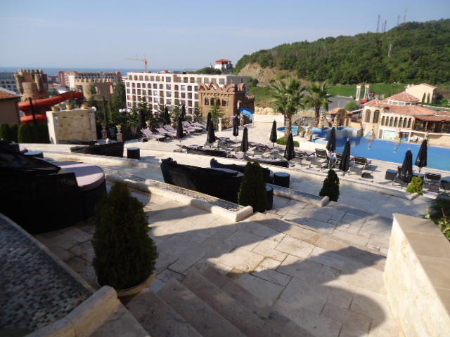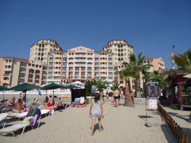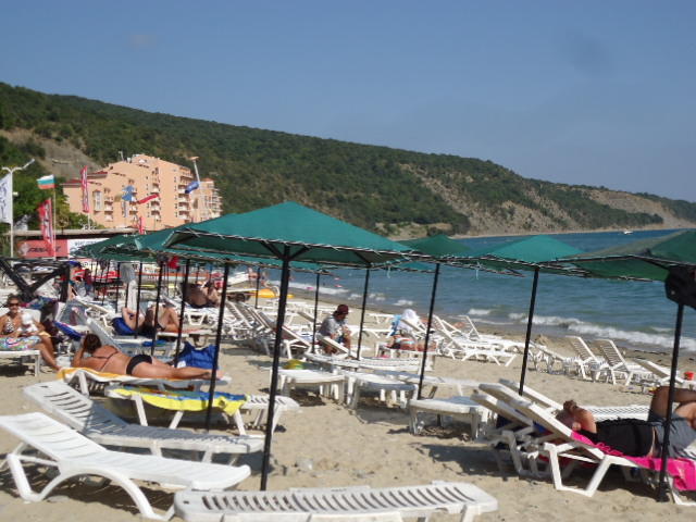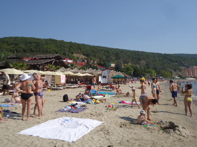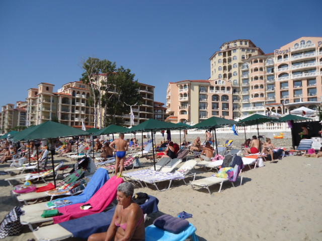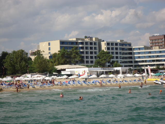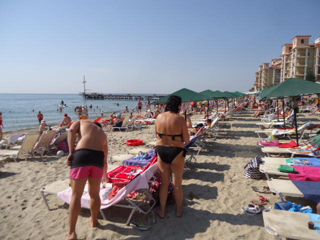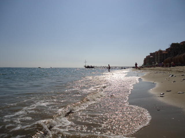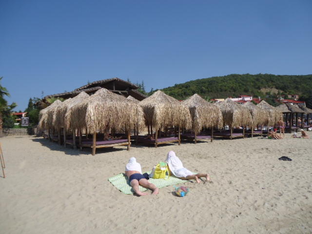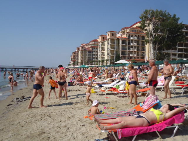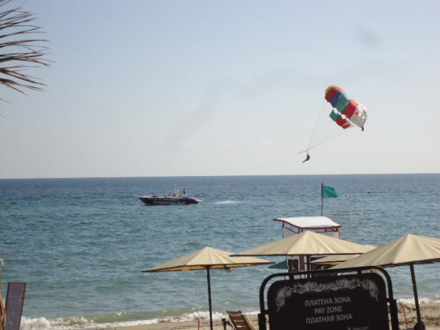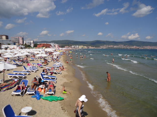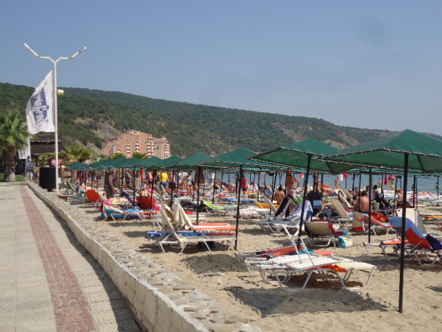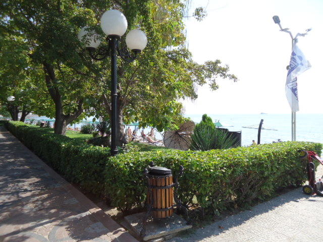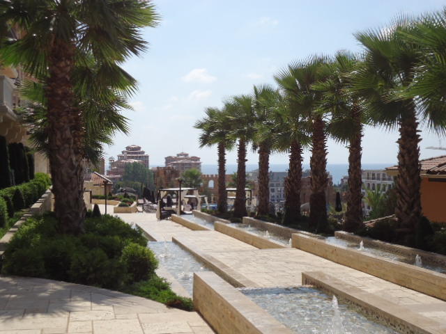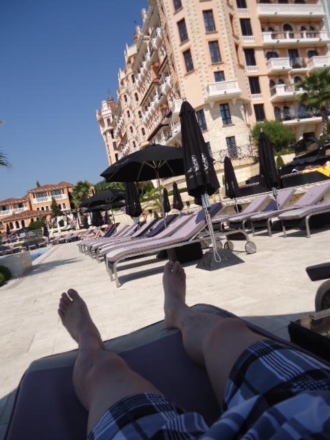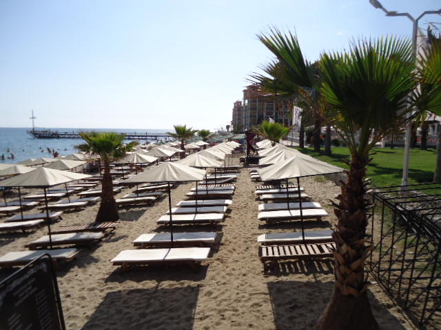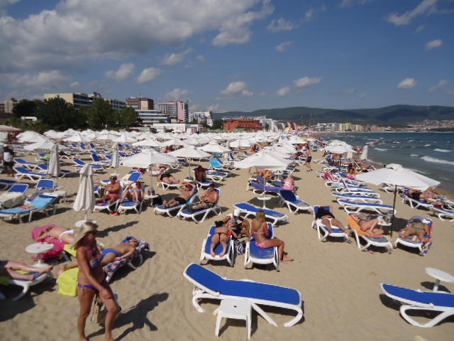 陽が高くなってきたので、とりあえず徒歩数分のプライベートビーチに行ってみると、さすが黒海沿岸の屈指のビーチリゾートという風景が・・・