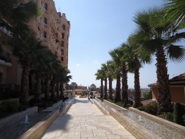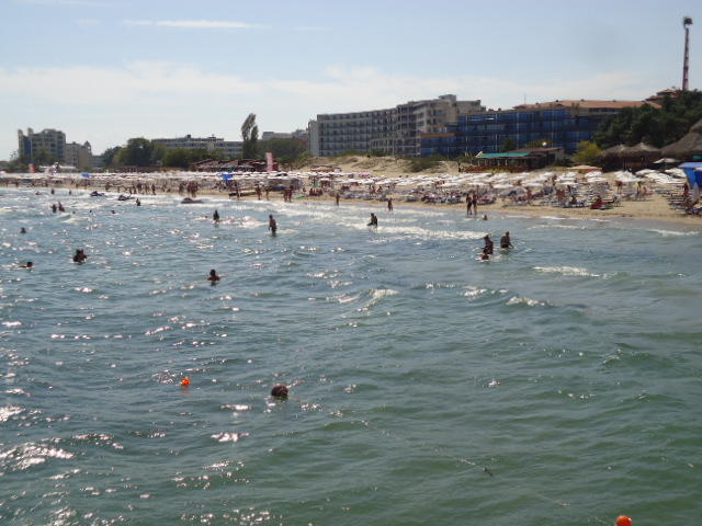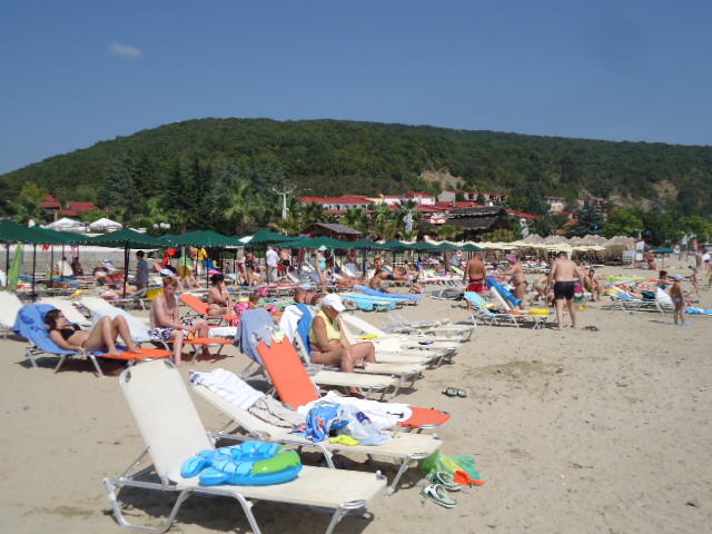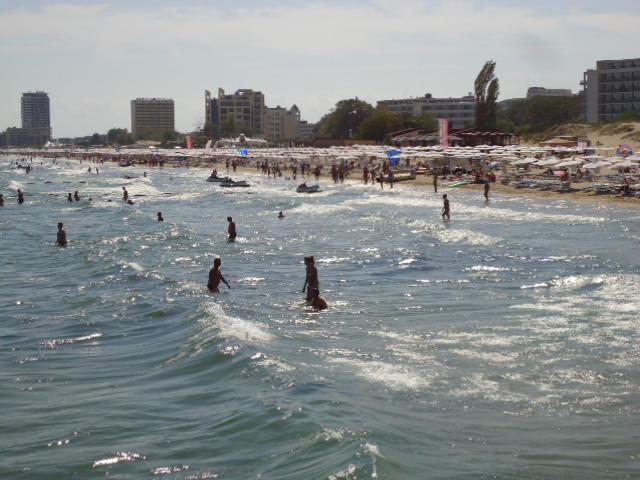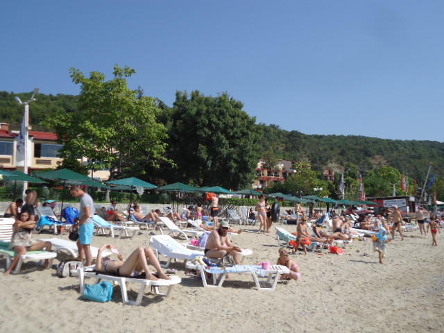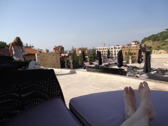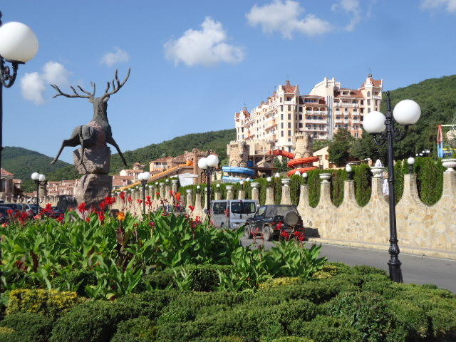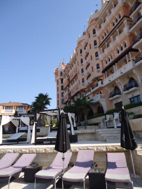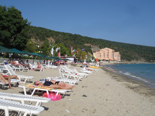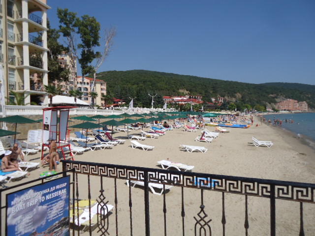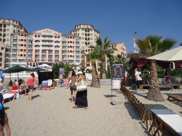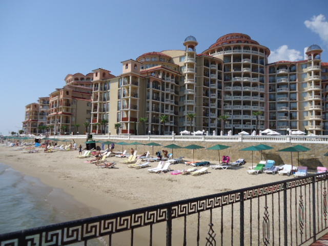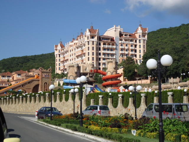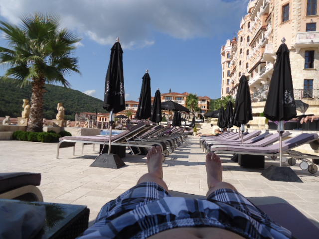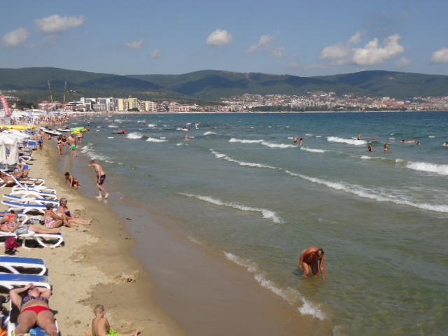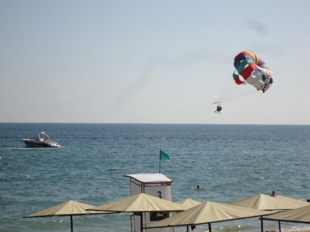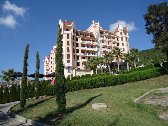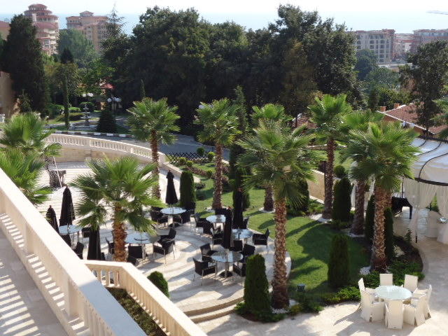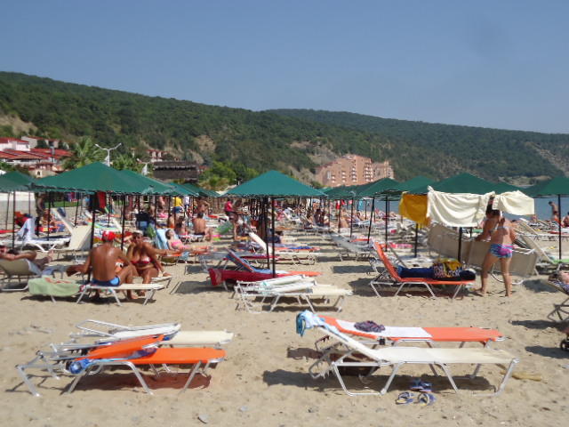 陽が高くなってきたので、とりあえず徒歩数分のプライベートビーチに行ってみると、さすが黒海沿岸の屈指のビーチリゾートという風景が・・・