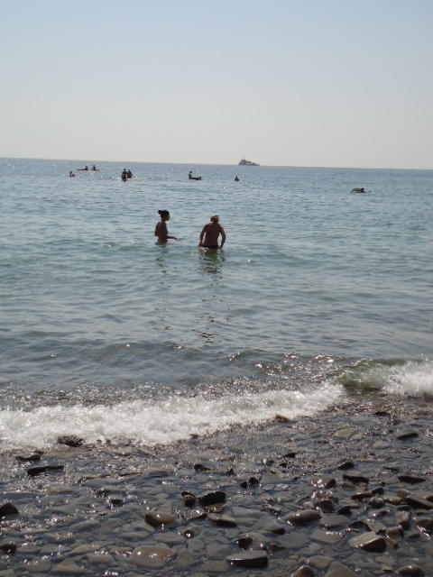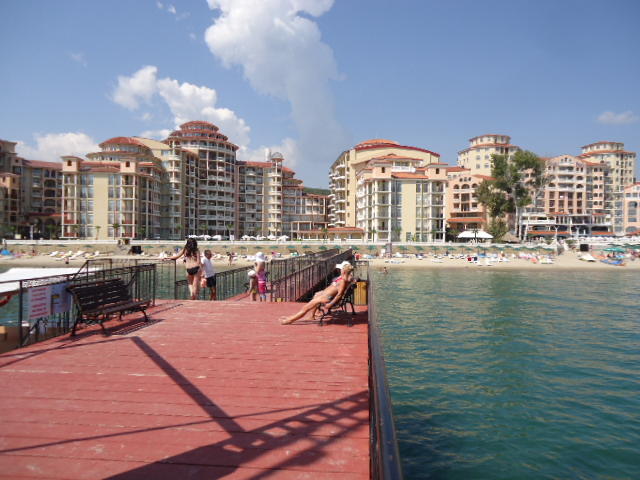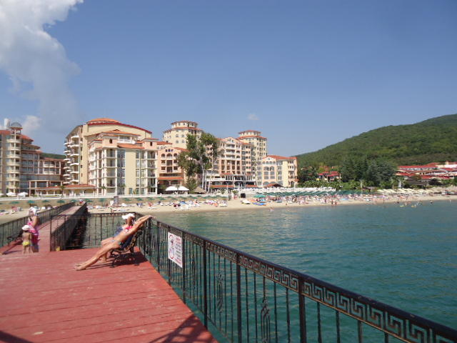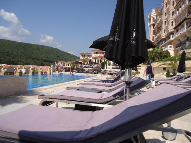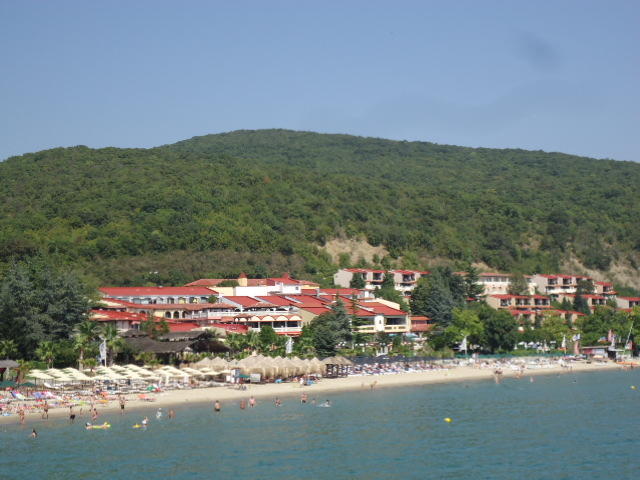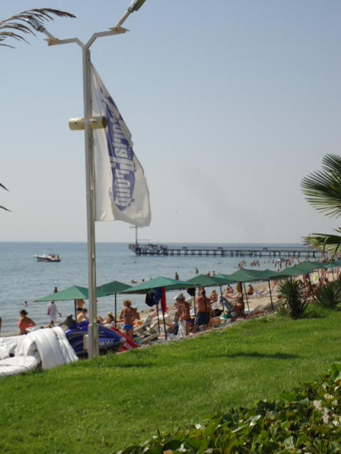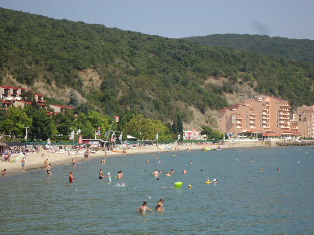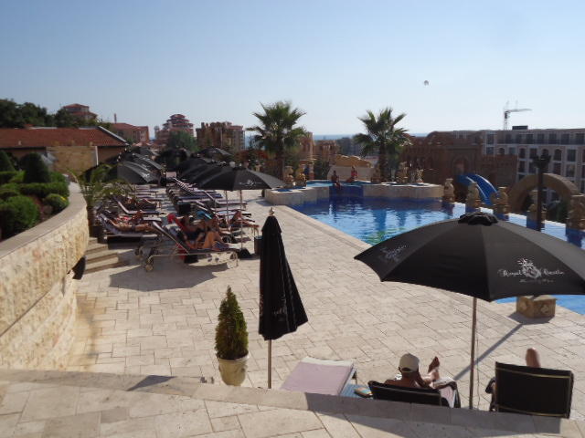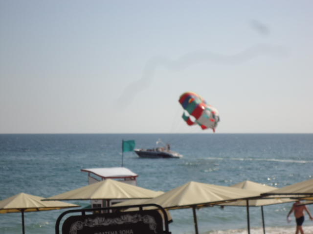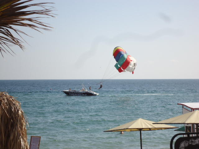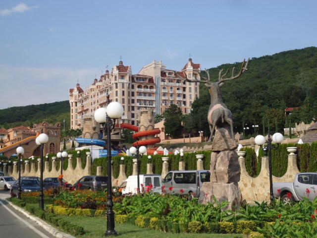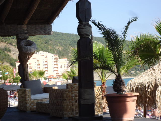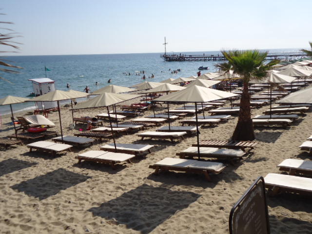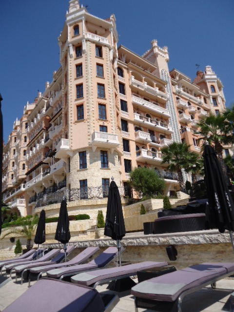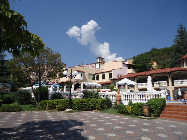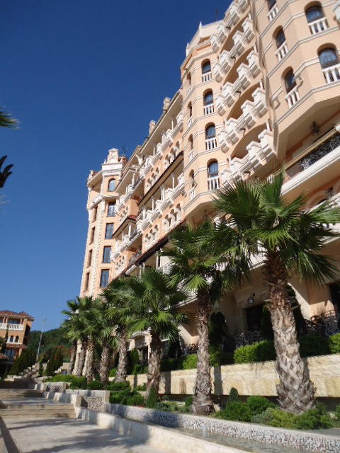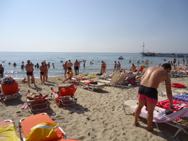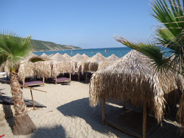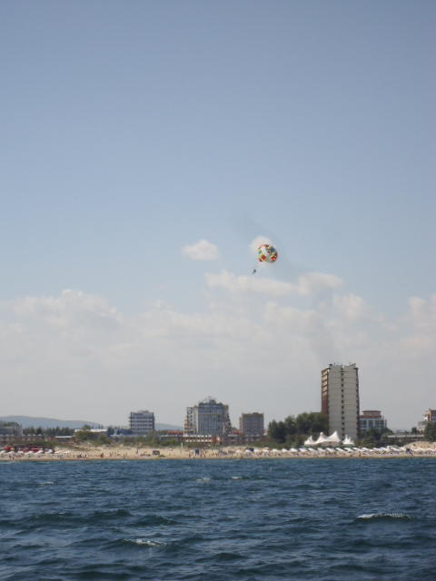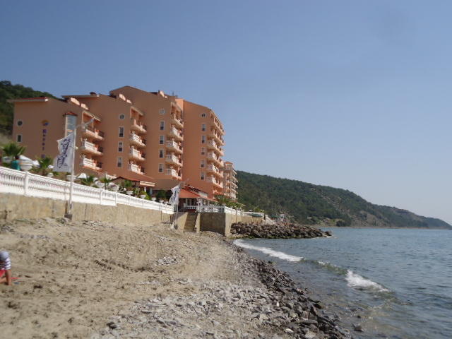 陽が高くなってきたので、とりあえず徒歩数分のプライベートビーチに行ってみると、さすが黒海沿岸の屈指のビーチリゾートという風景が・・・
