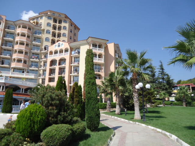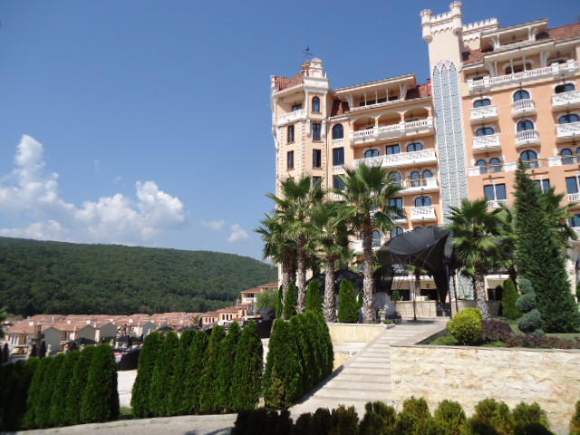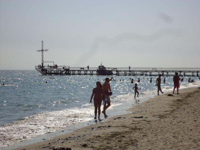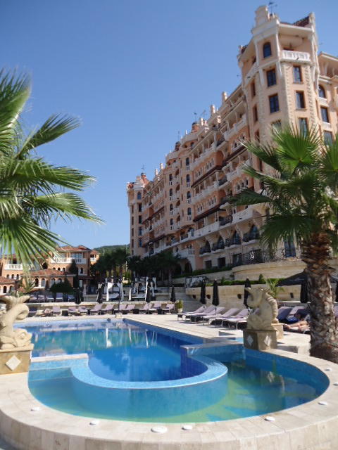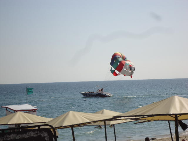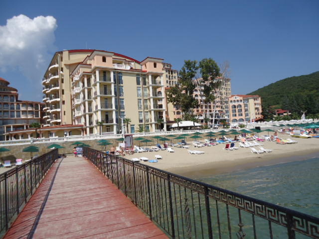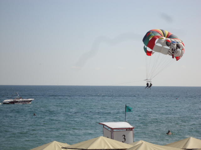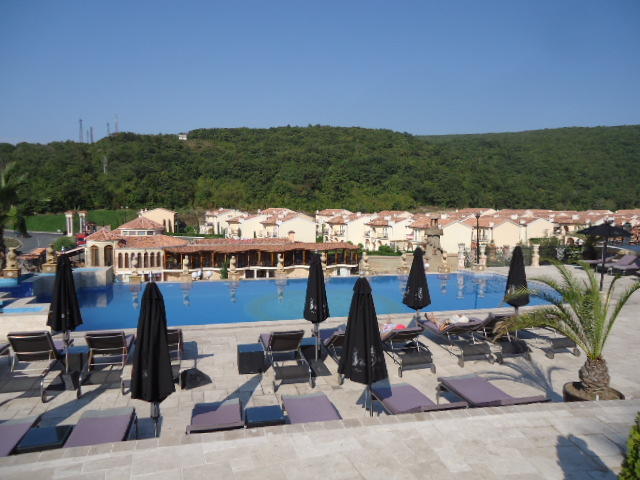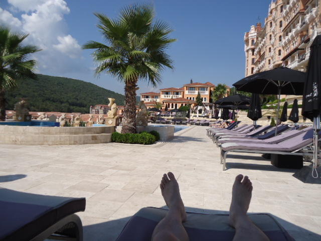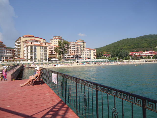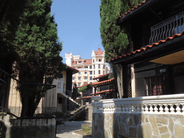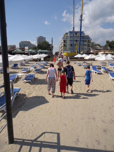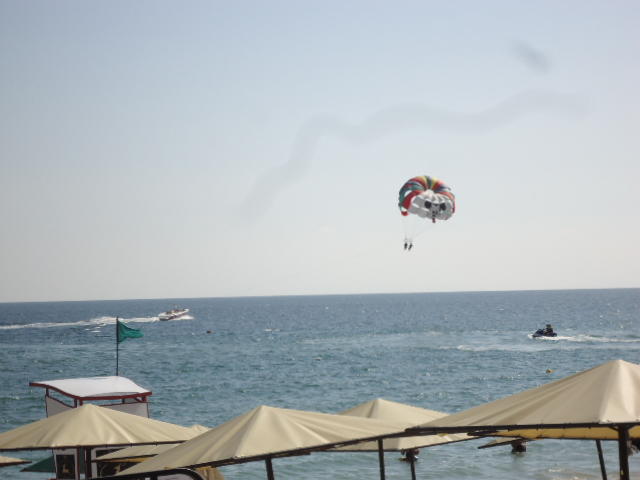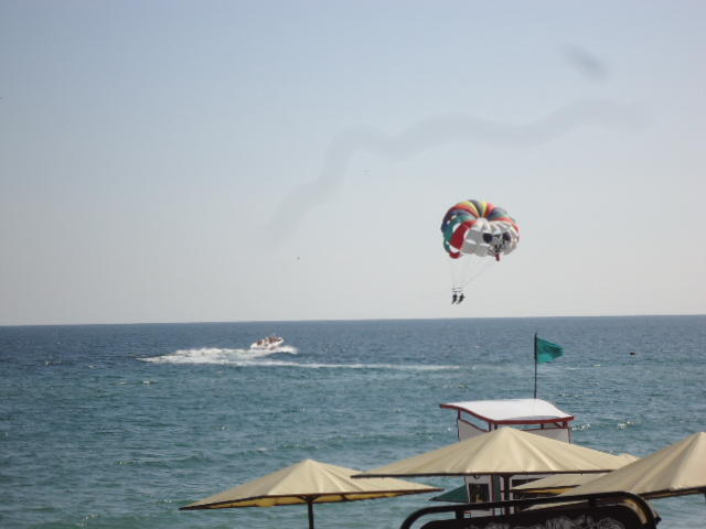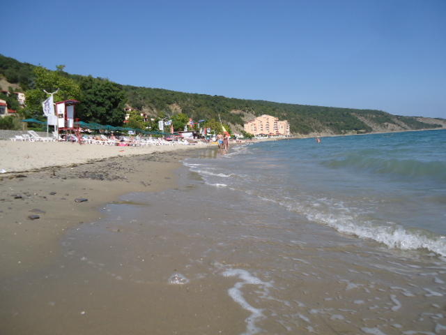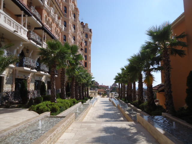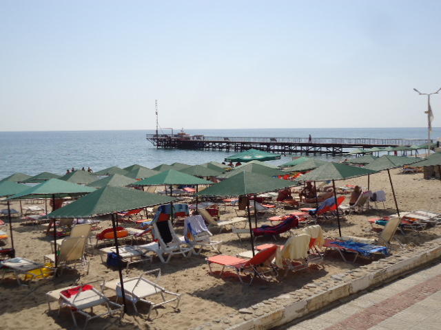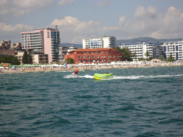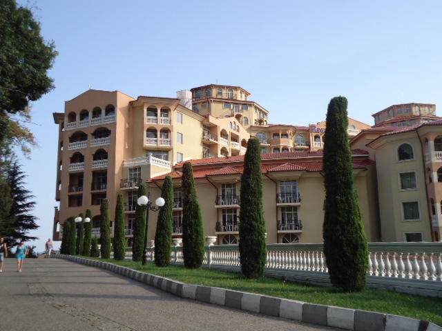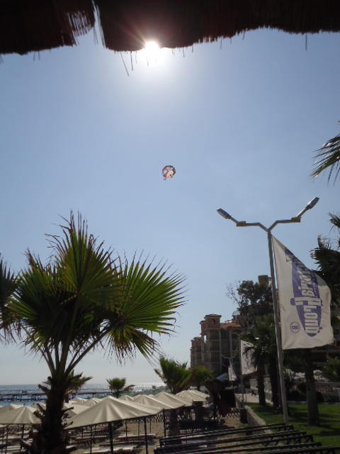 陽が高くなってきたので、とりあえず徒歩数分のプライベートビーチに行ってみると、さすが黒海沿岸の屈指のビーチリゾートという風景が・・・