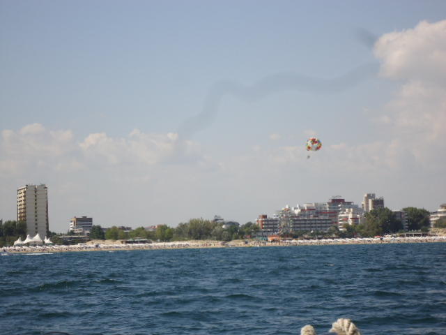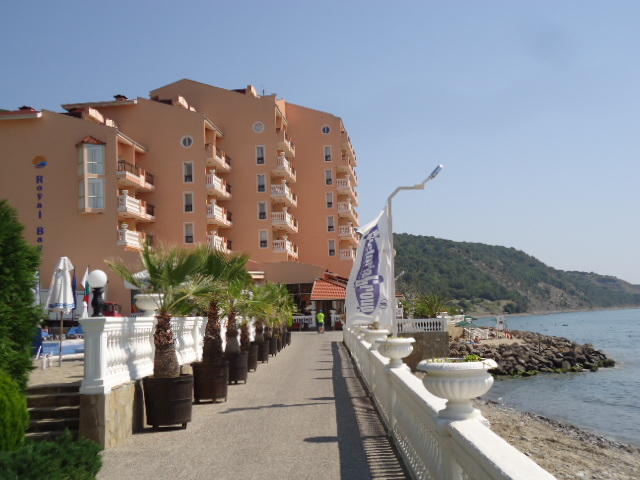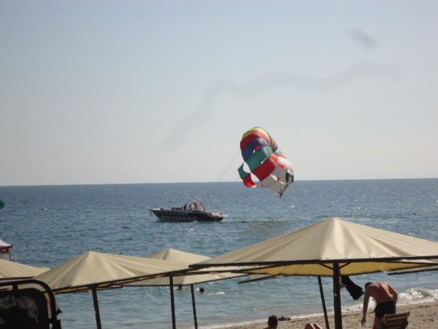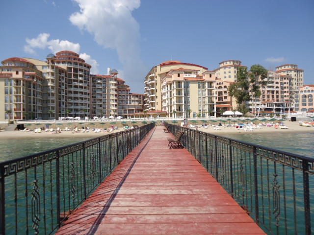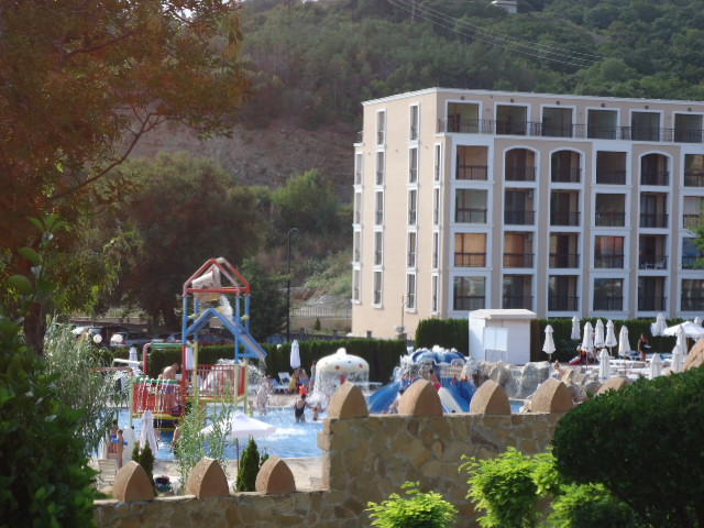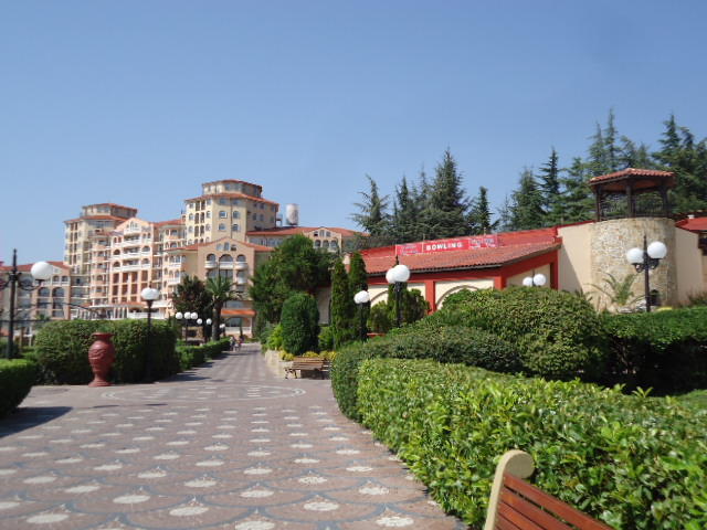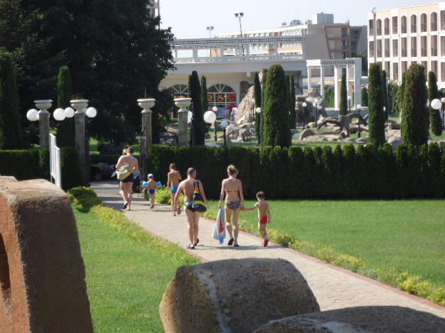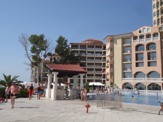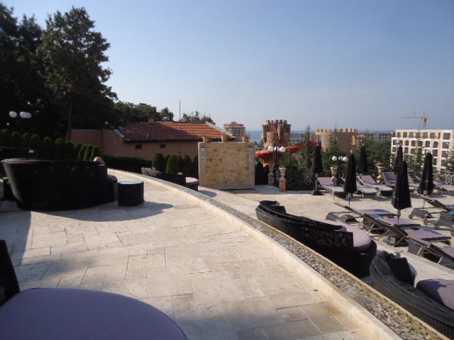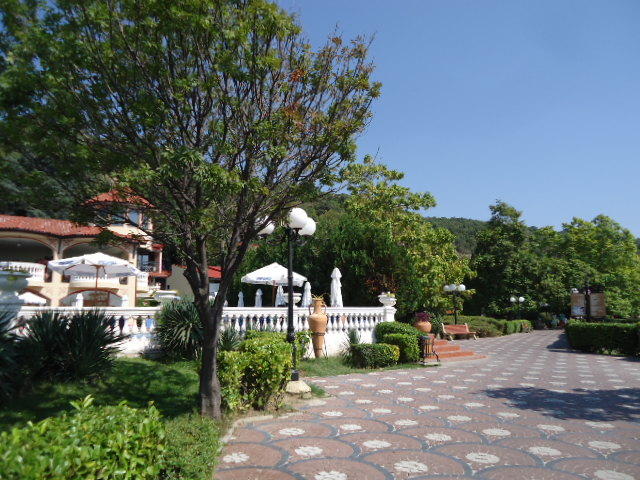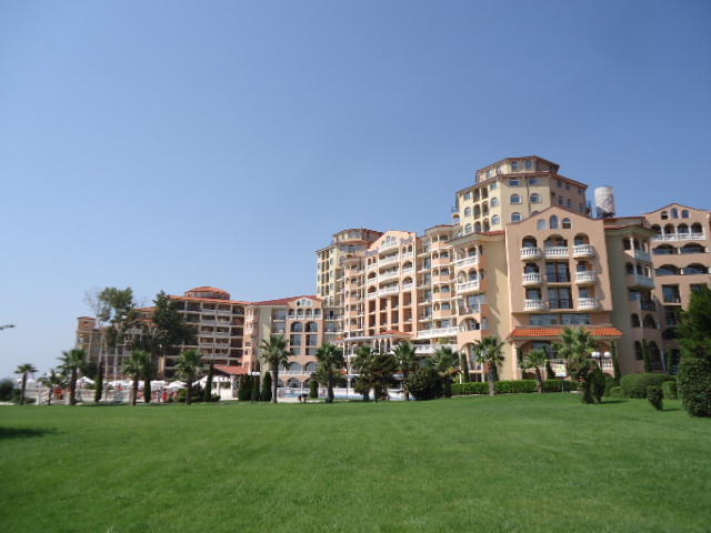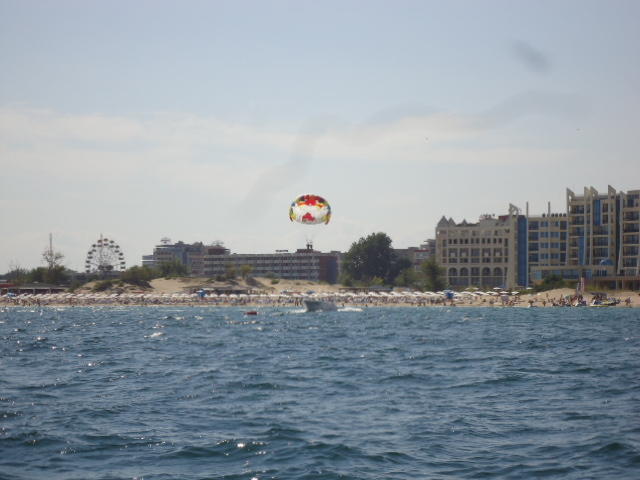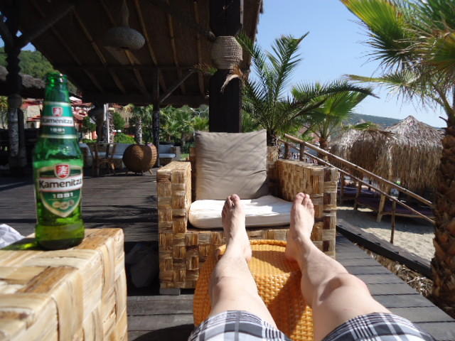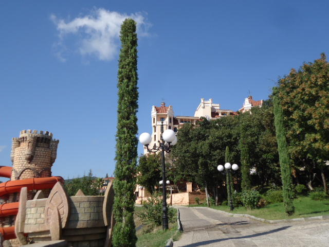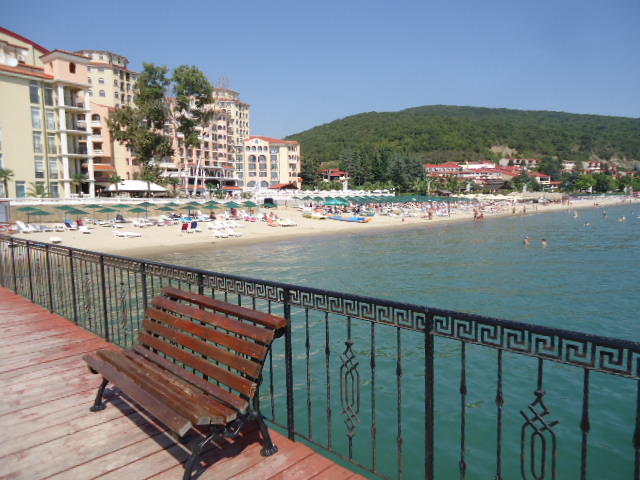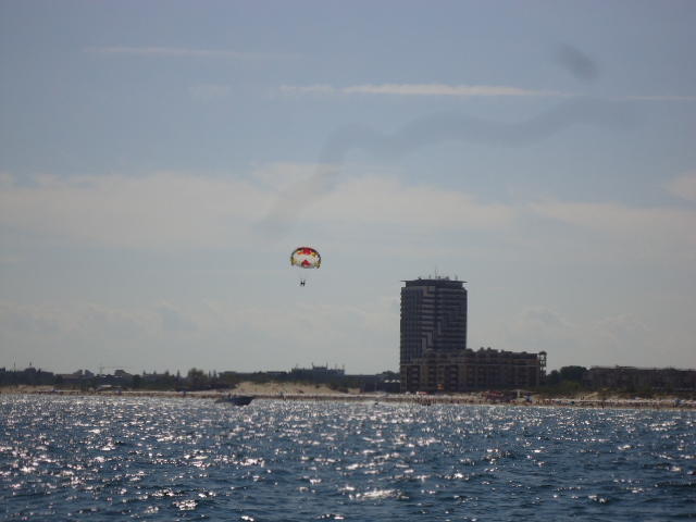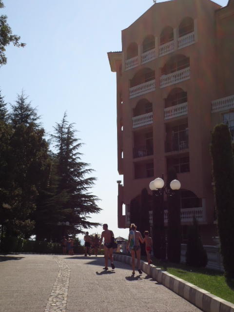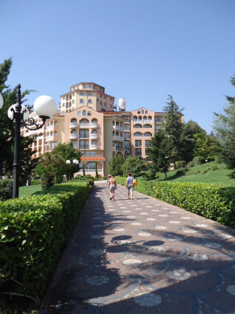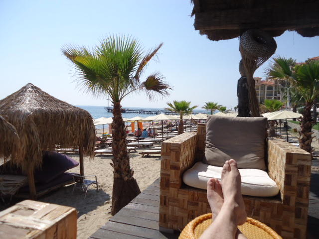 陽が高くなってきたので、とりあえず徒歩数分のプライベートビーチに行ってみると、さすが黒海沿岸の屈指のビーチリゾートという風景が・・・
