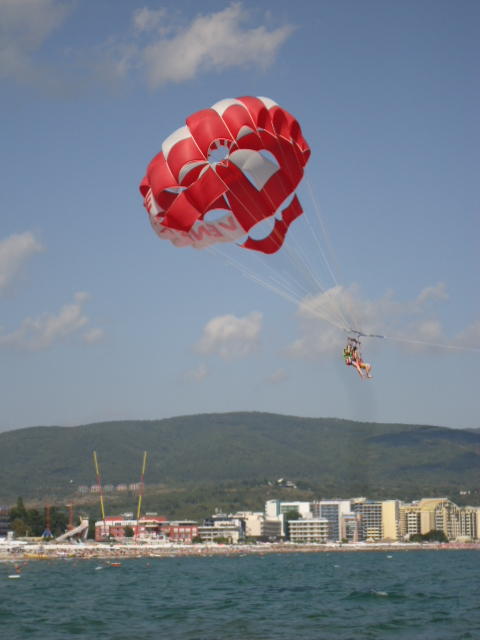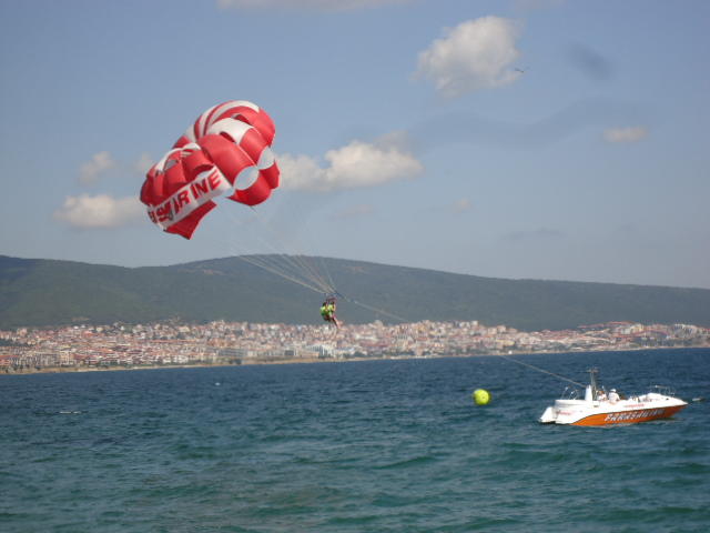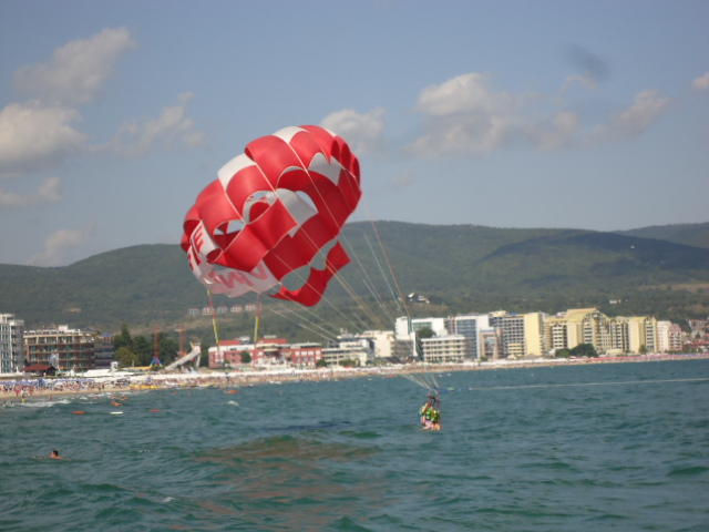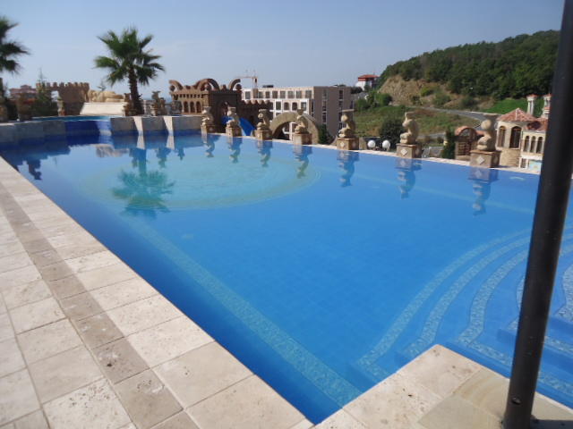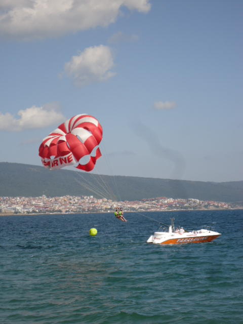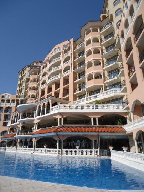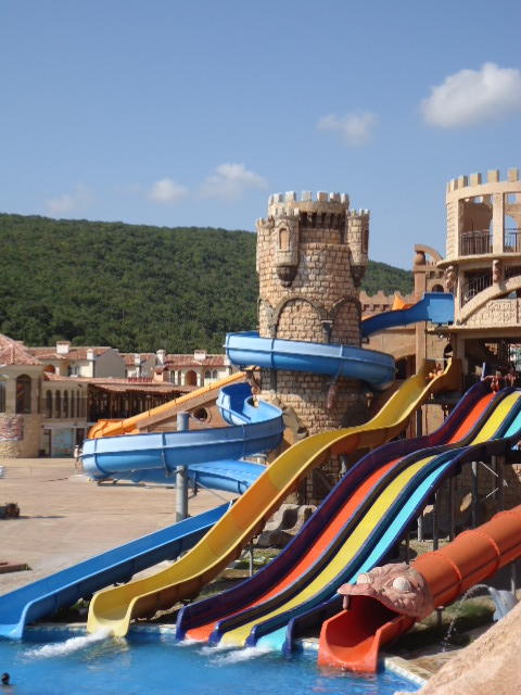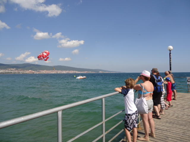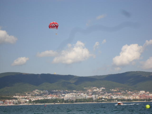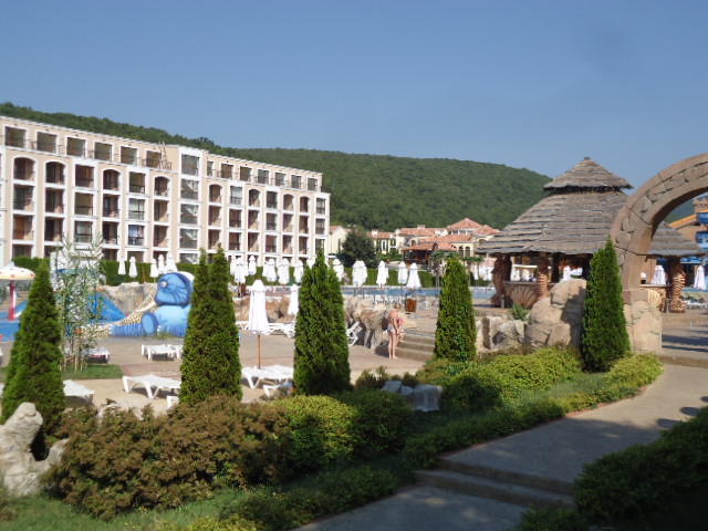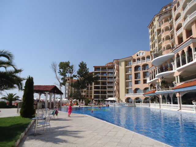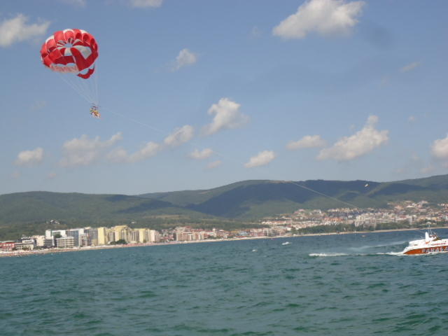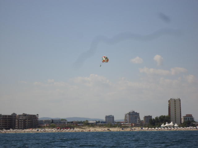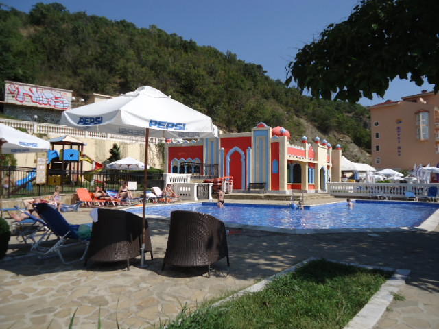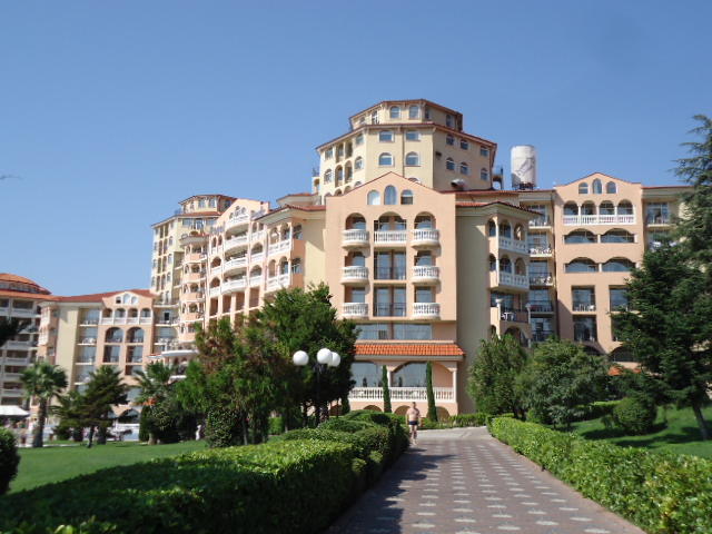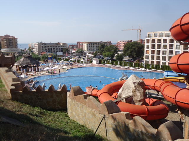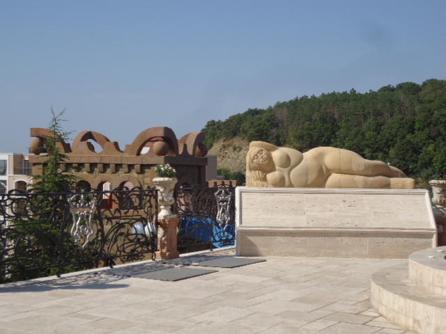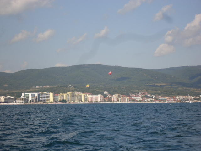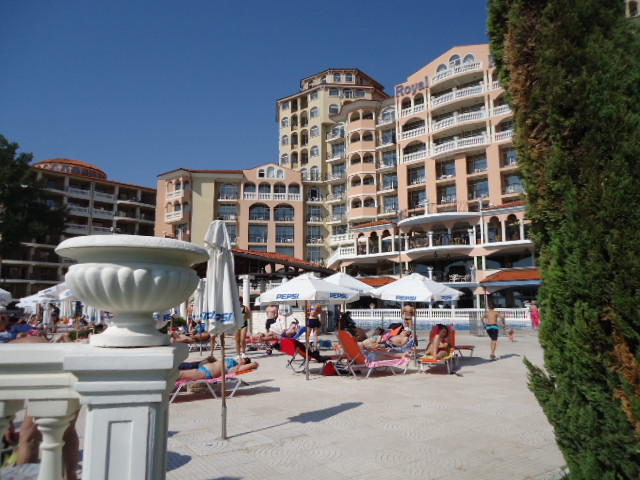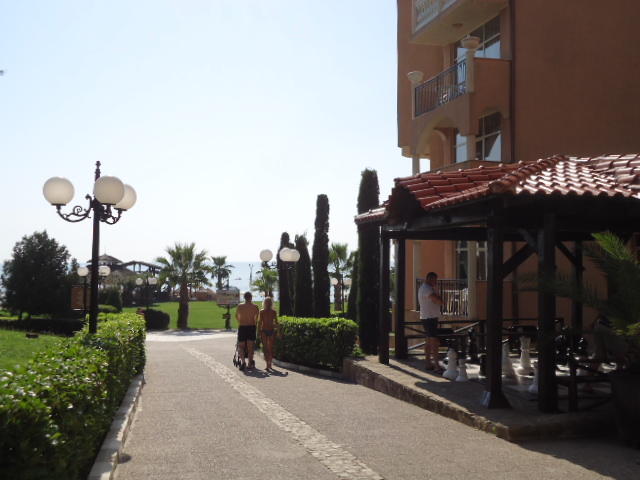 陽が高くなってきたので、とりあえず徒歩数分のプライベートビーチに行ってみると、さすが黒海沿岸の屈指のビーチリゾートという風景が・・・