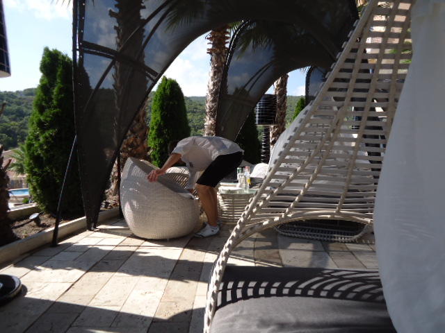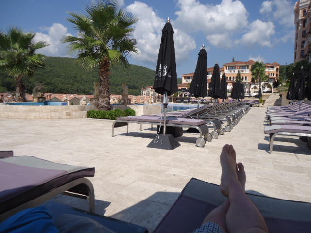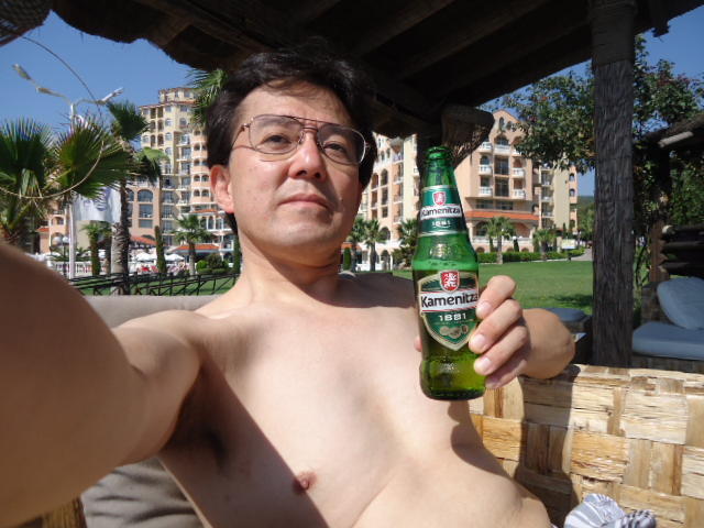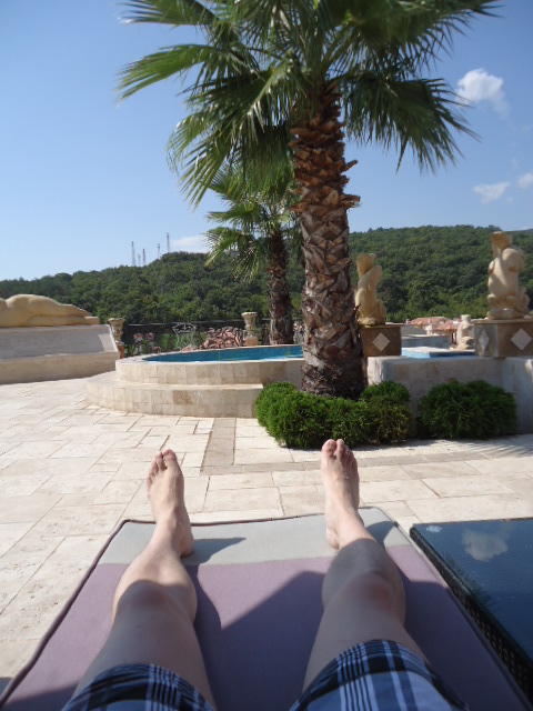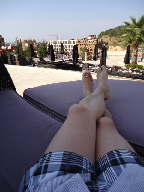 コーヒーブレークに続いて昼食休憩ということで、またまたプールサイドで日焼けしてみたりして