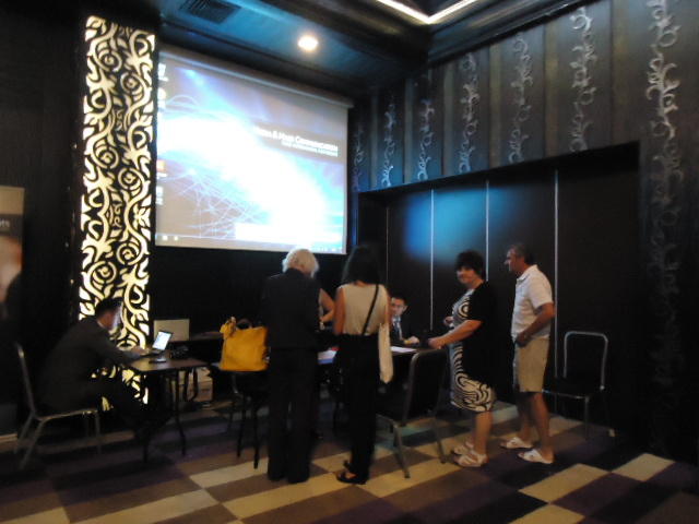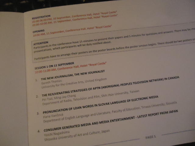 ようやく夕方に、カンファレンス会場に行ってレジストレーション。ネームタグとプログラムを受け取り、明日の発表を待つまで