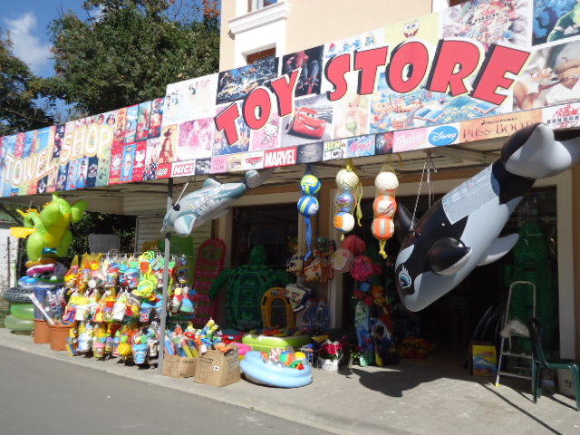 まだ陽が高いので、とりあえず外に出て様子を見て、ショップで水着とサンダルを購入