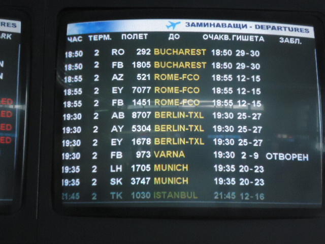 ソフィア空港に到着。終日「雨」とのことで、キャリーバッグを引きずって市内観光に出るのを断念、空港で乗り継ぎのルフトハンザまで約10時間の待機(^_^;)