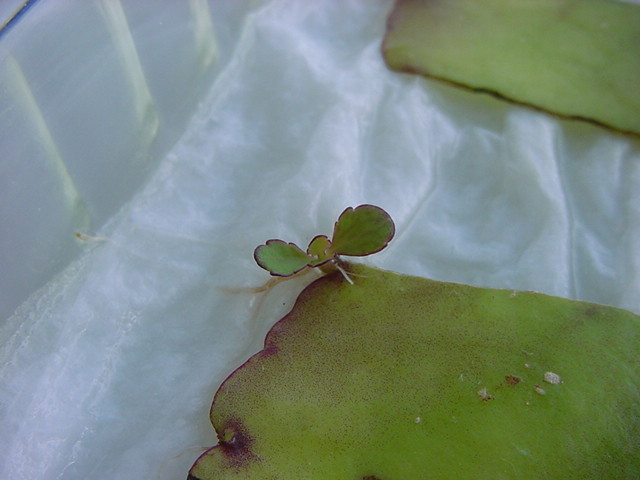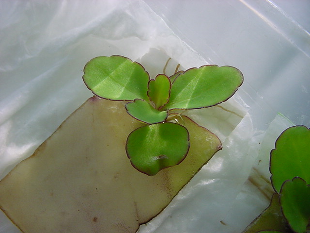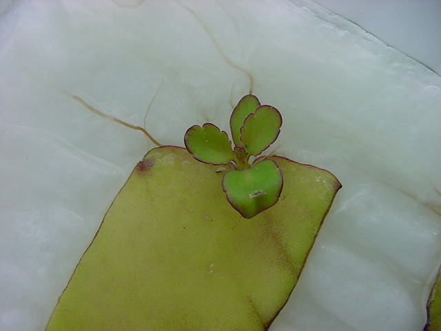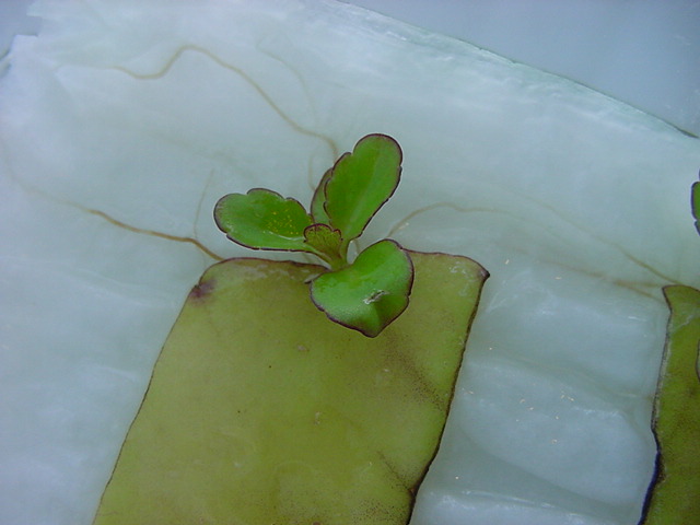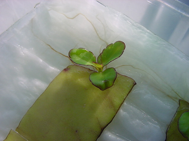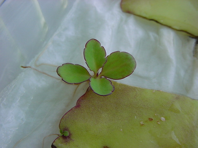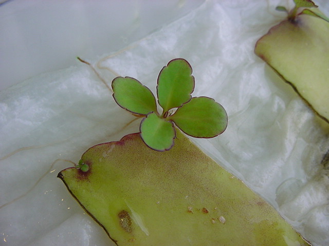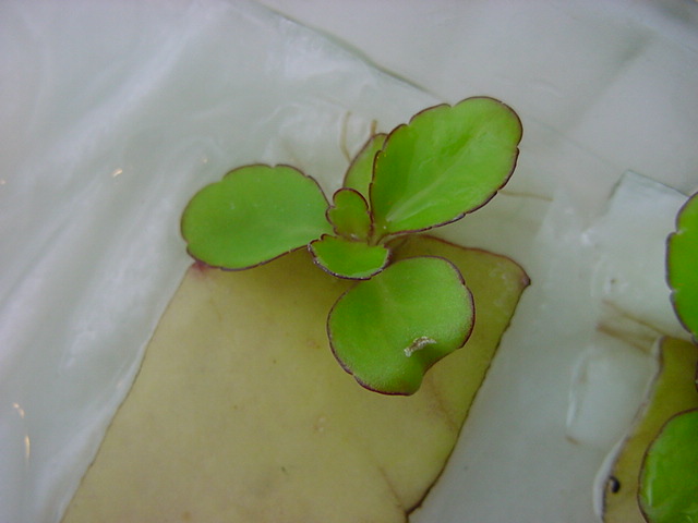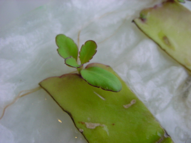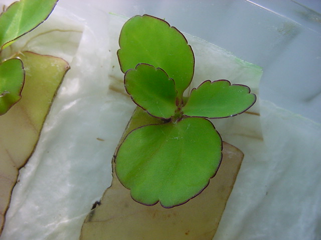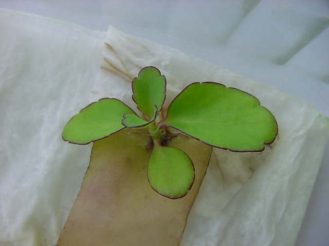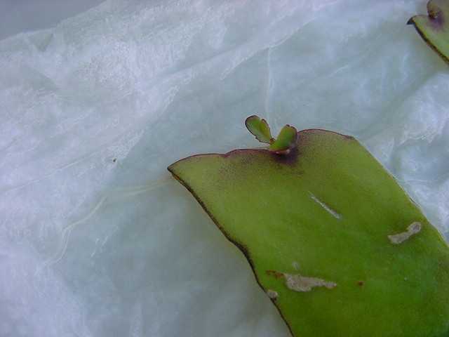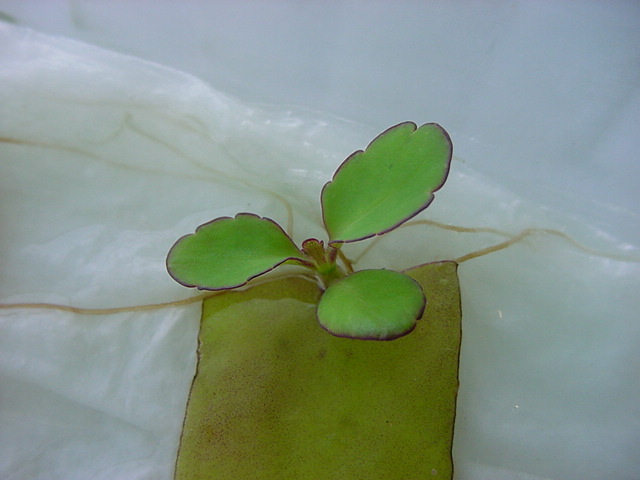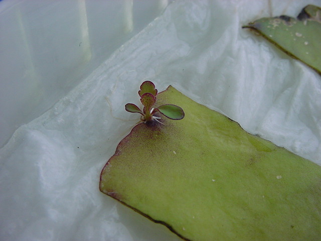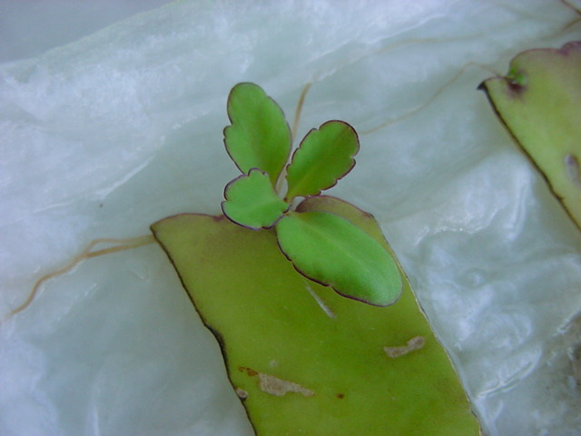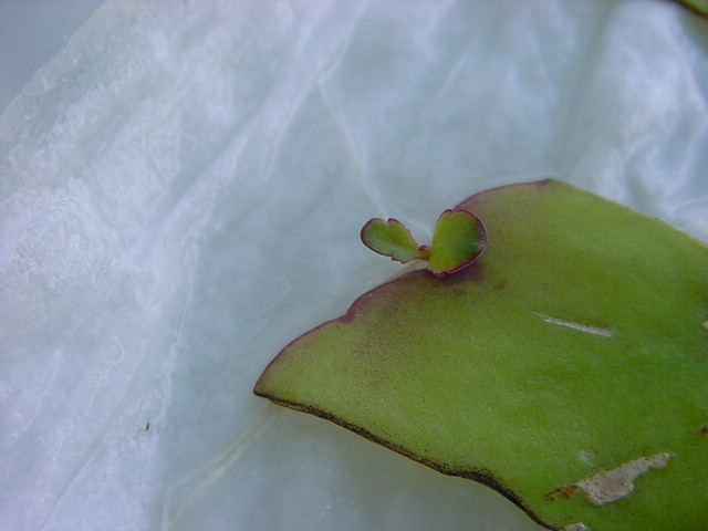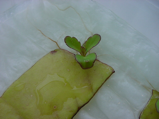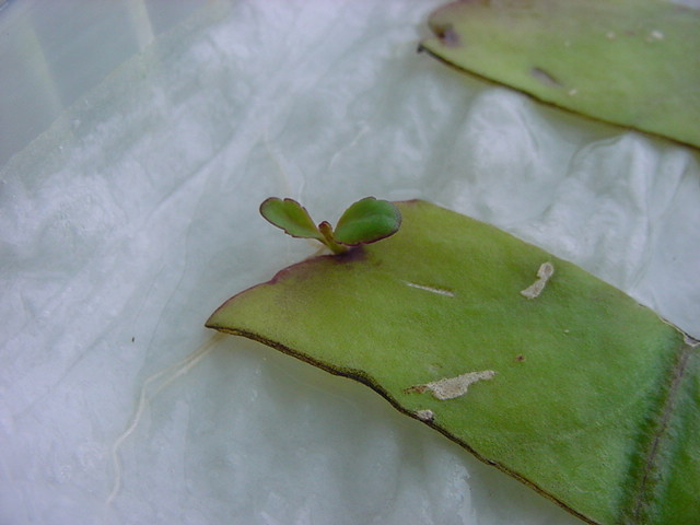 お店のおばちゃんによれば、これは「葉から芽」と呼ばれていて、葉っぱをハサミで細かく切って、濡れたティッシュの上に置いておくだけで芽が出て来て、どんどん大きくなるのだという事でした。 ちょっと信じられないものの、ビニール袋に入った小さな葉っぱが2枚で500円というお土産を買って帰りました。