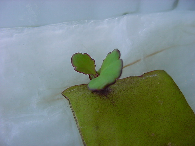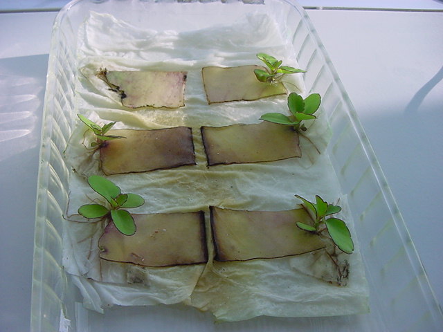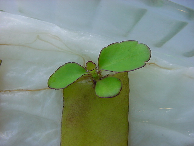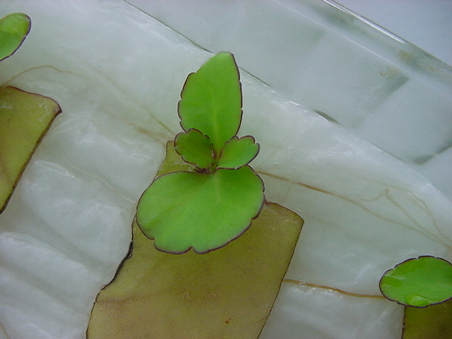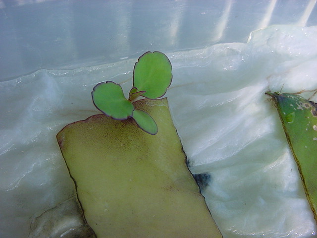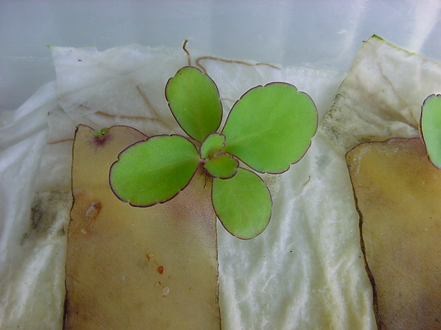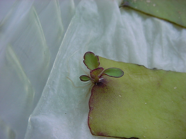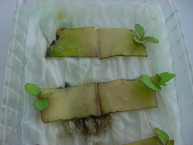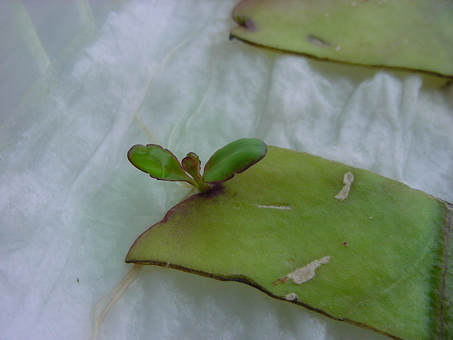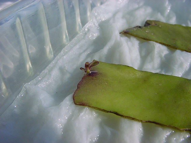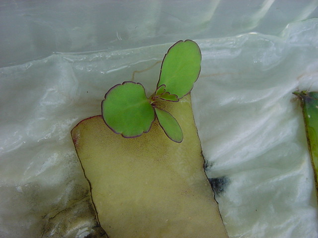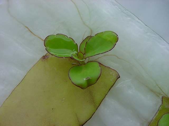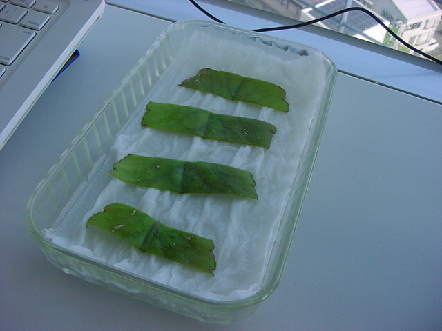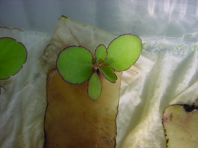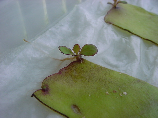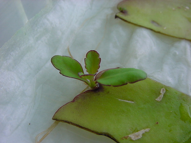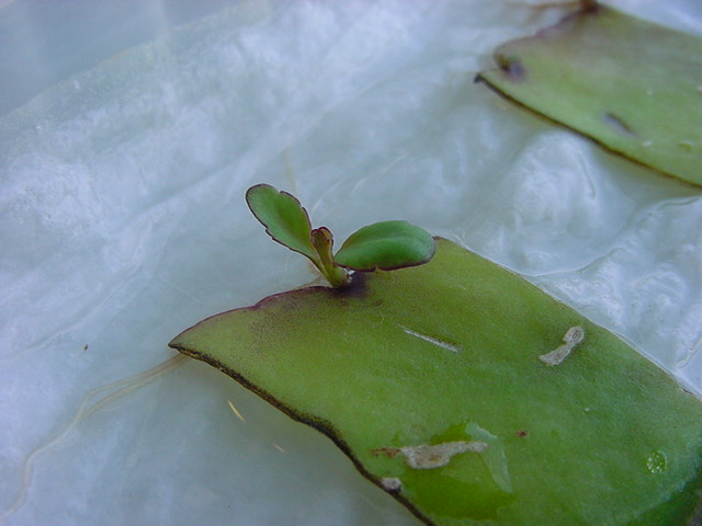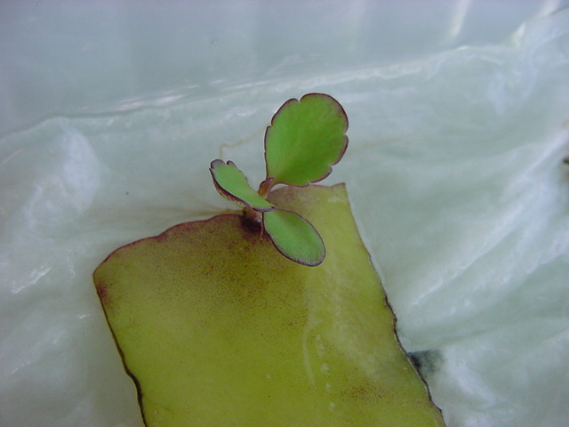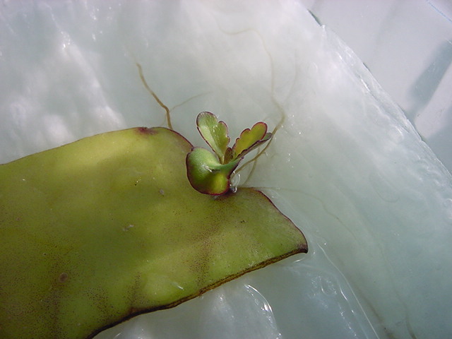 お店のおばちゃんによれば、これは「葉から芽」と呼ばれていて、葉っぱをハサミで細かく切って、濡れたティッシュの上に置いておくだけで芽が出て来て、どんどん大きくなるのだという事でした。 ちょっと信じられないものの、ビニール袋に入った小さな葉っぱが2枚で500円というお土産を買って帰りました。