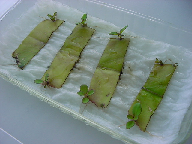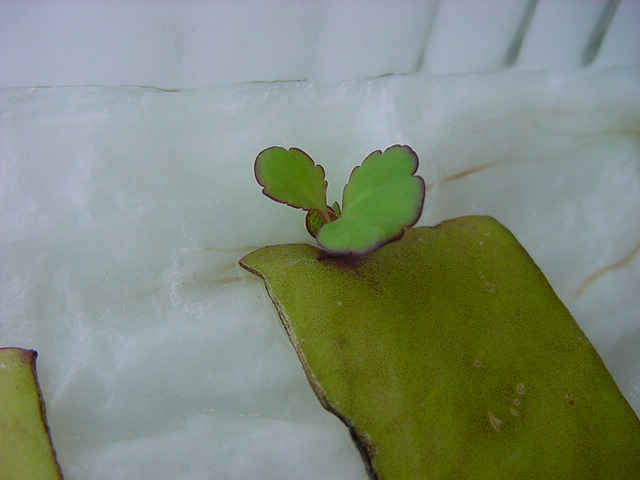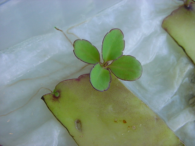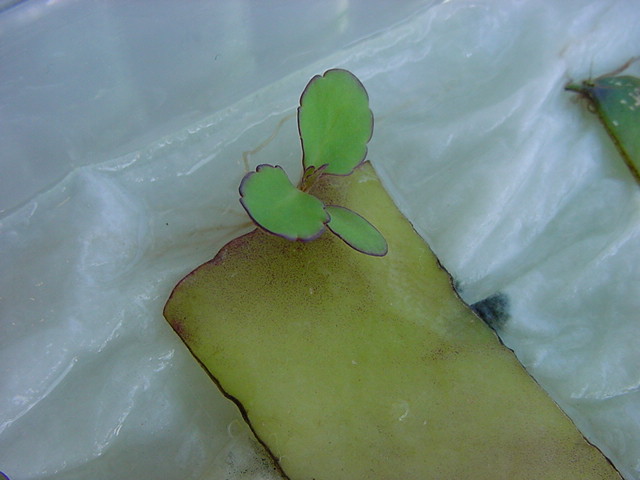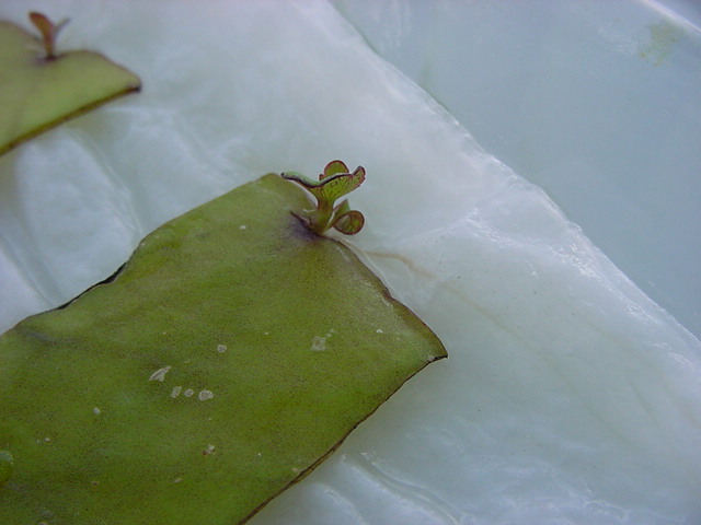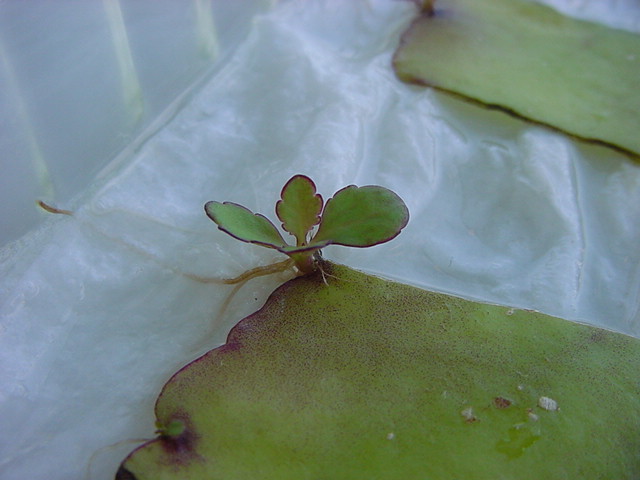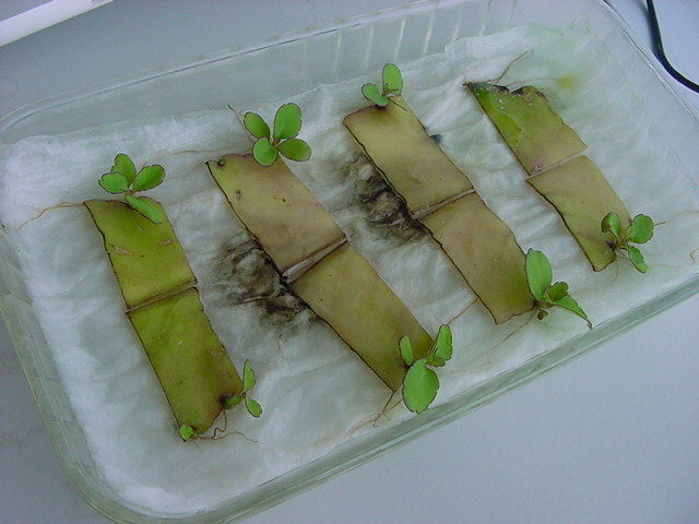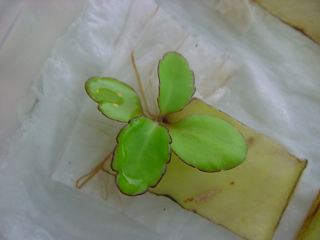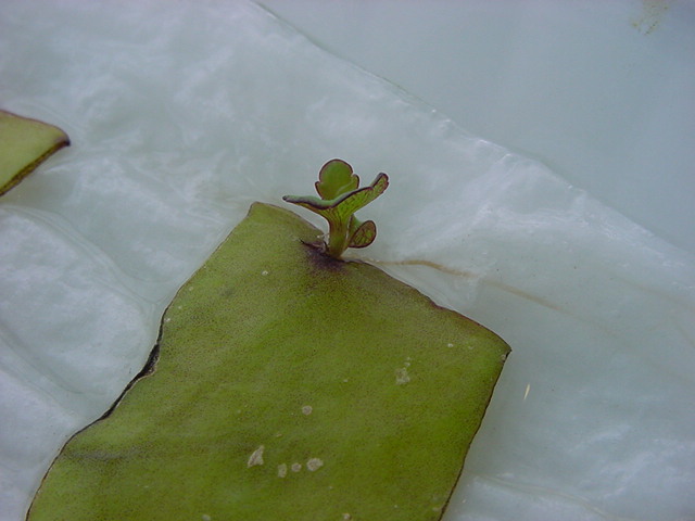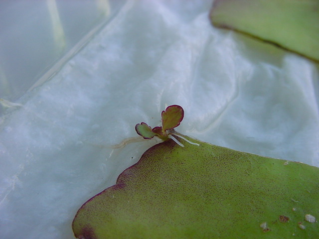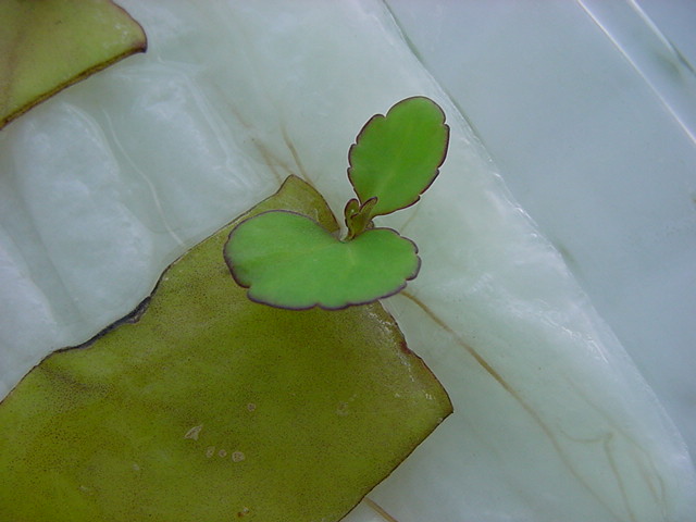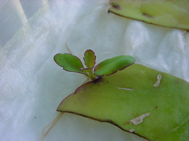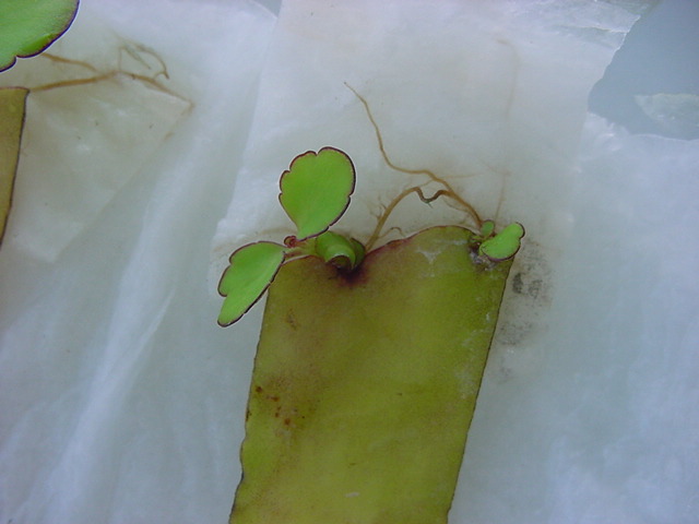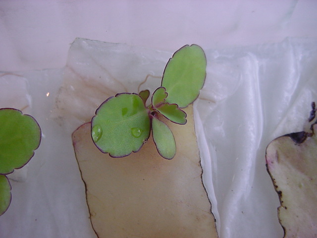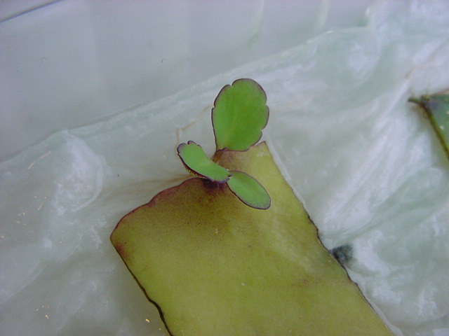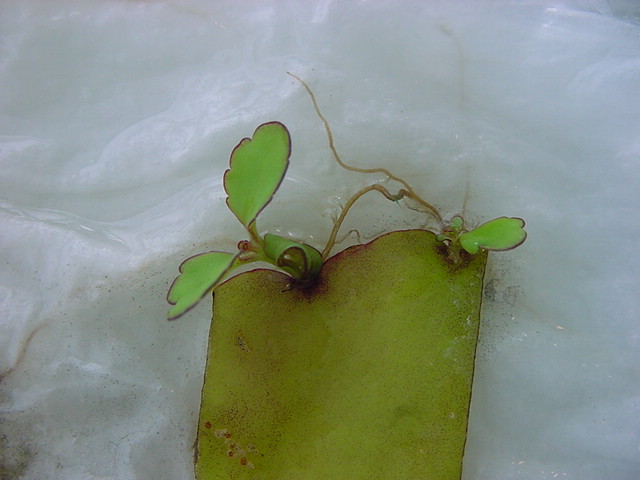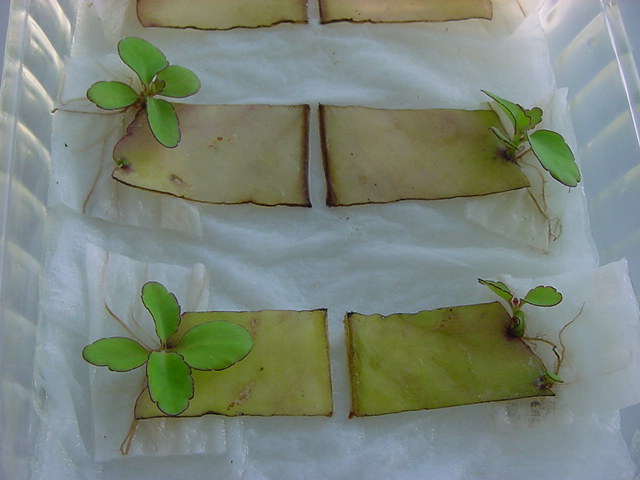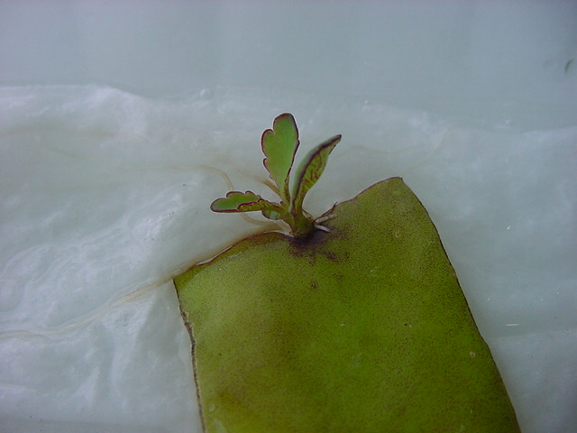 お店のおばちゃんによれば、これは「葉から芽」と呼ばれていて、葉っぱをハサミで細かく切って、濡れたティッシュの上に置いておくだけで芽が出て来て、どんどん大きくなるのだという事でした。 ちょっと信じられないものの、ビニール袋に入った小さな葉っぱが2枚で500円というお土産を買って帰りました。
