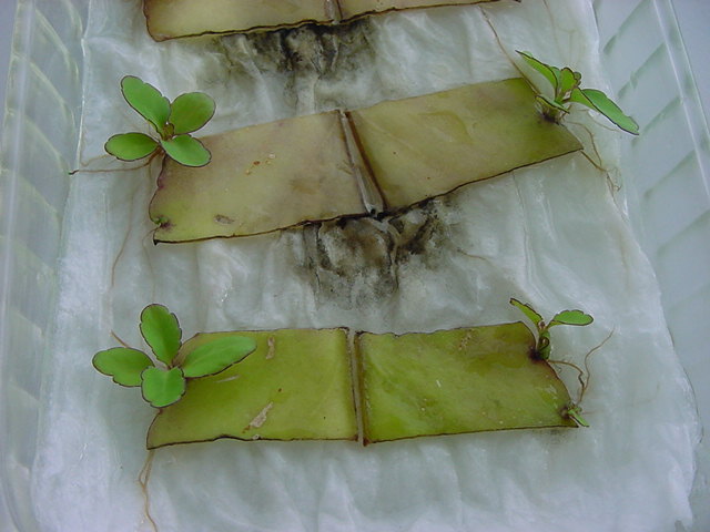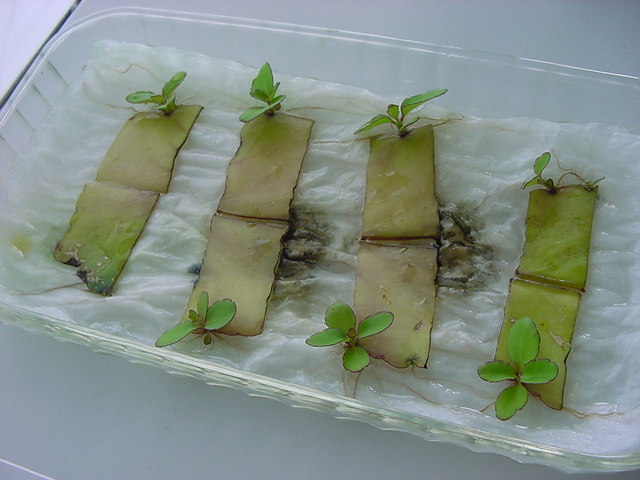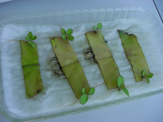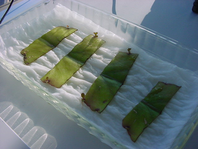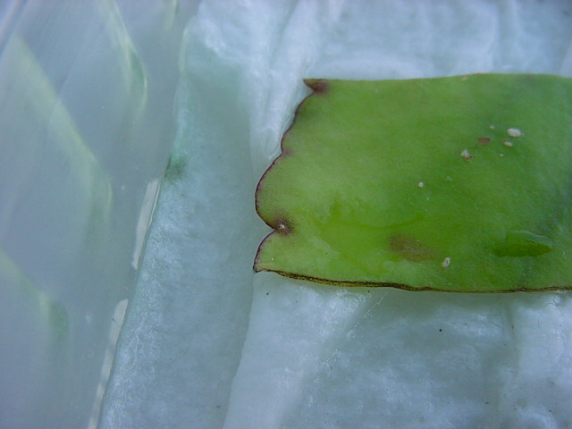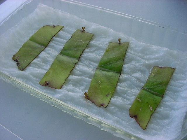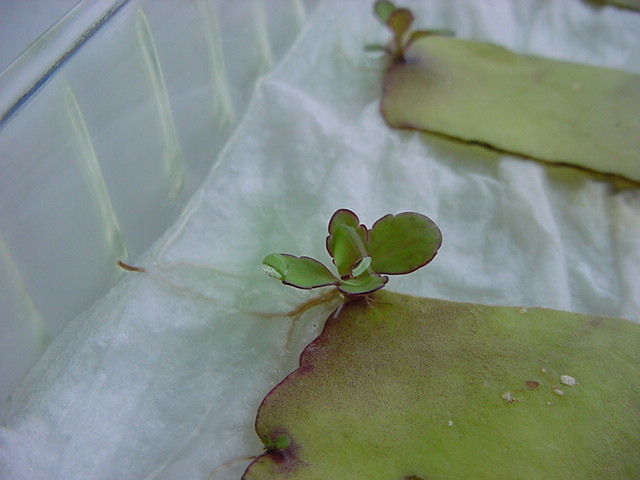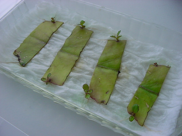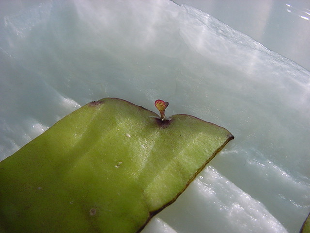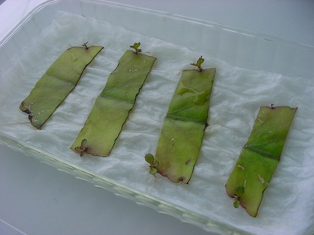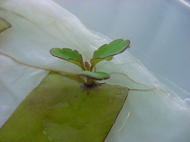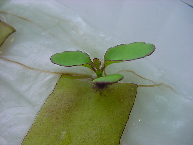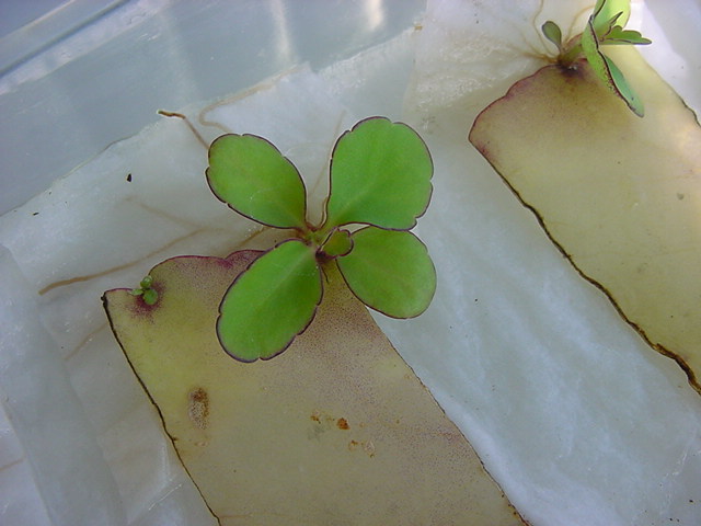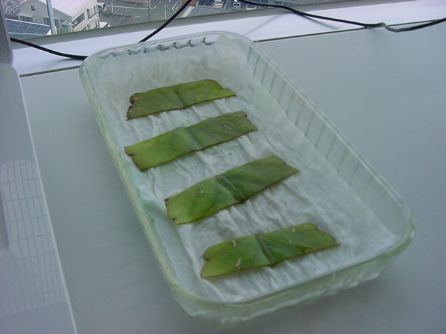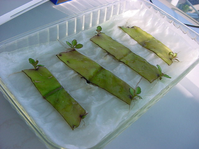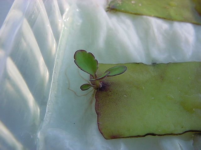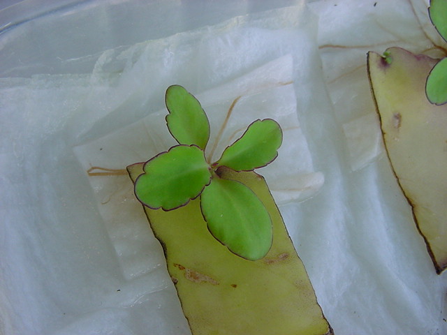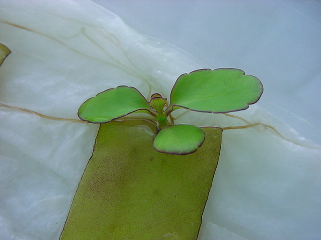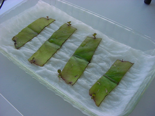 お店のおばちゃんによれば、これは「葉から芽」と呼ばれていて、葉っぱをハサミで細かく切って、濡れたティッシュの上に置いておくだけで芽が出て来て、どんどん大きくなるのだという事でした。 ちょっと信じられないものの、ビニール袋に入った小さな葉っぱが2枚で500円というお土産を買って帰りました。