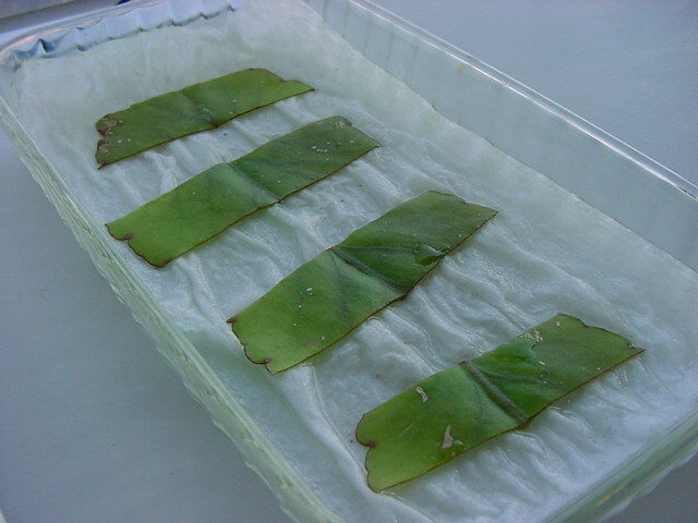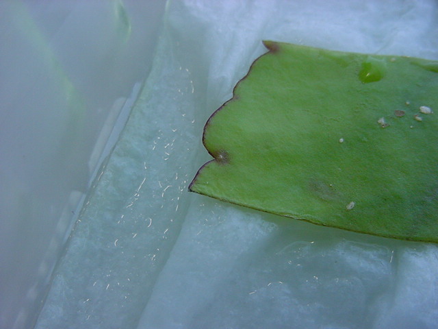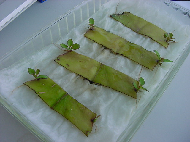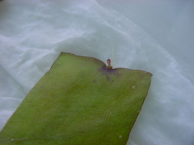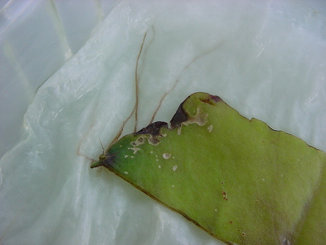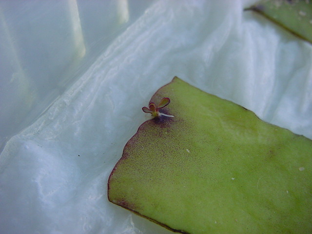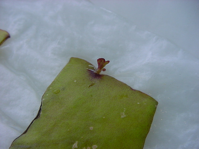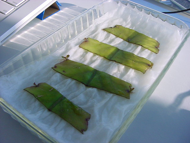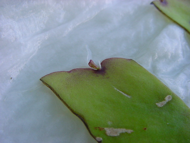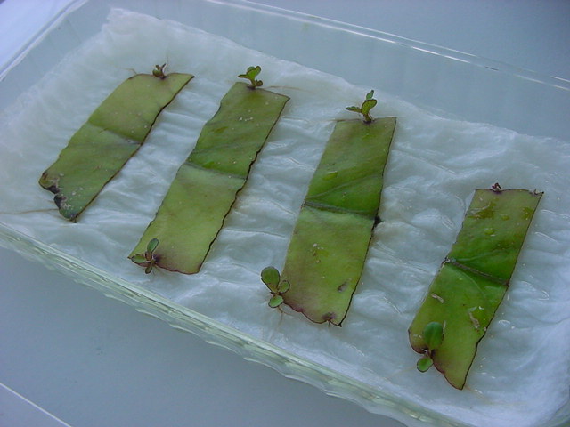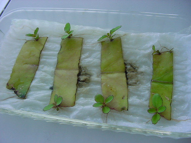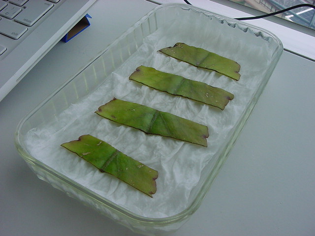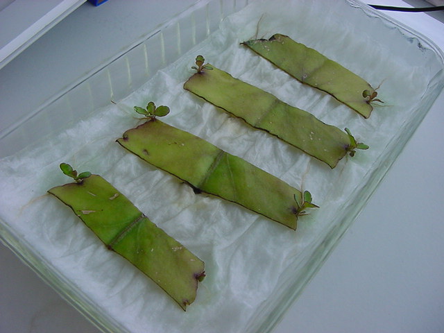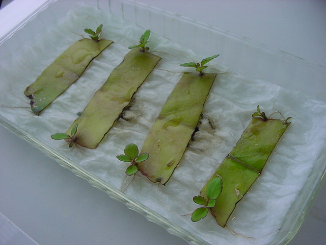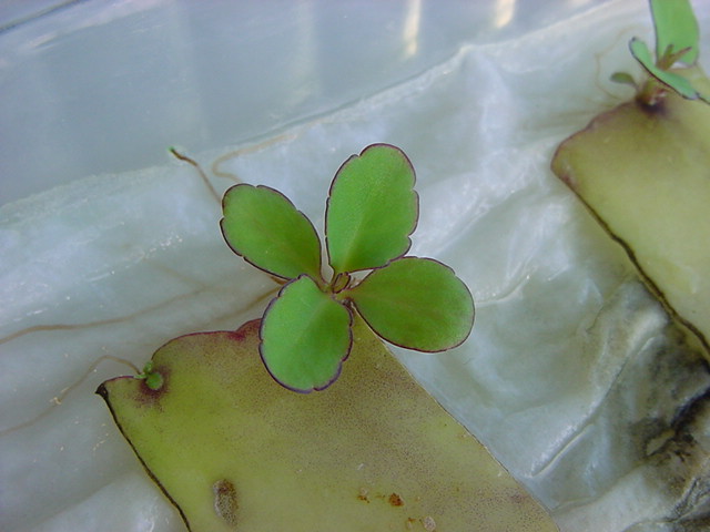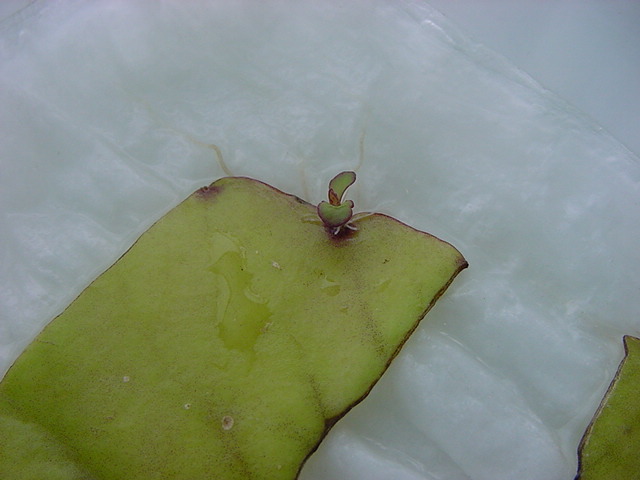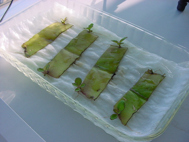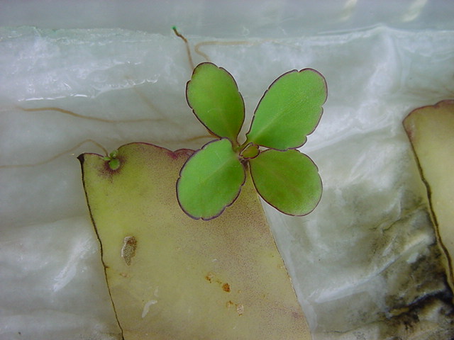 お店のおばちゃんによれば、これは「葉から芽」と呼ばれていて、葉っぱをハサミで細かく切って、濡れたティッシュの上に置いておくだけで芽が出て来て、どんどん大きくなるのだという事でした。 ちょっと信じられないものの、ビニール袋に入った小さな葉っぱが2枚で500円というお土産を買って帰りました。