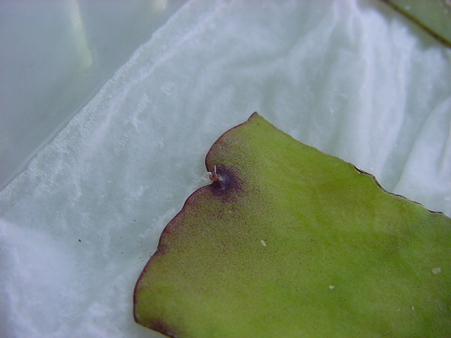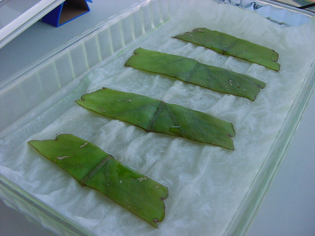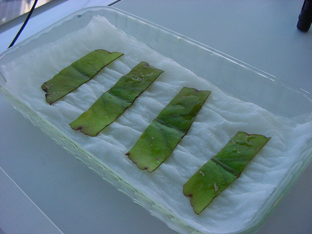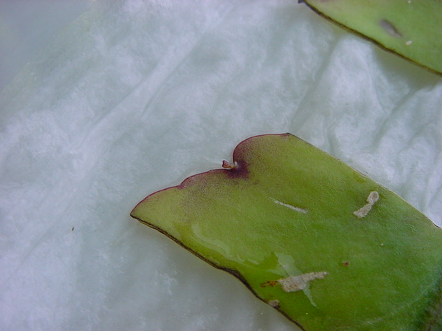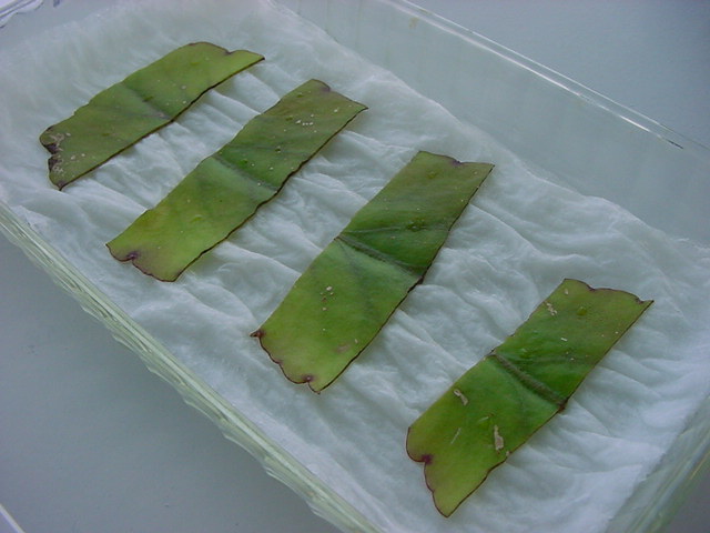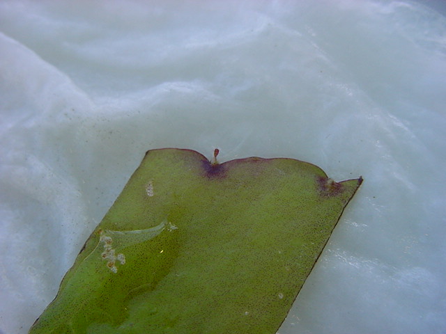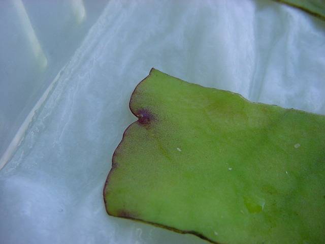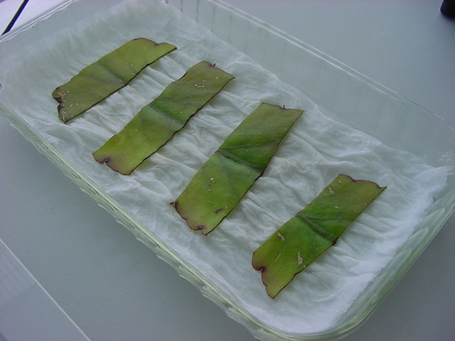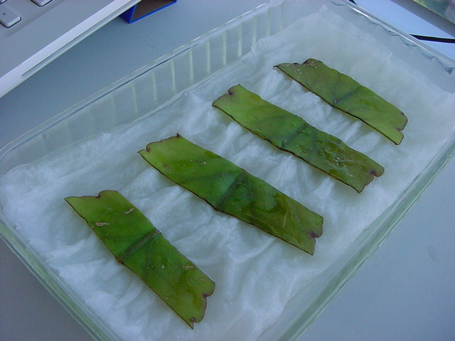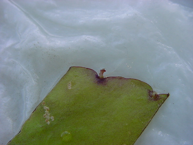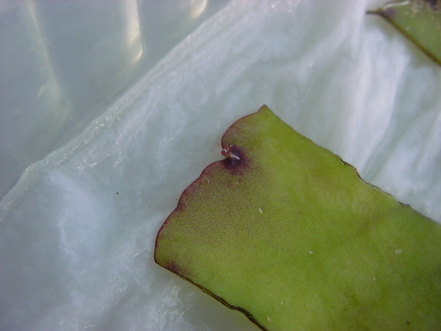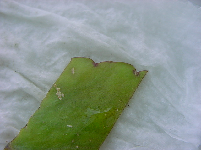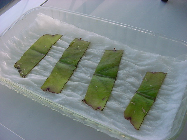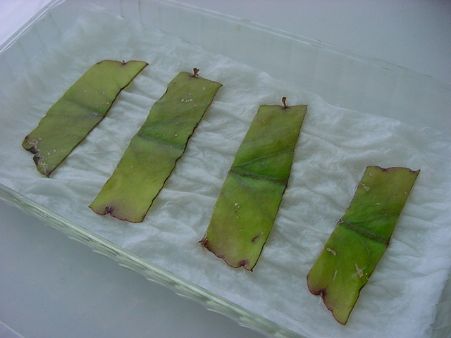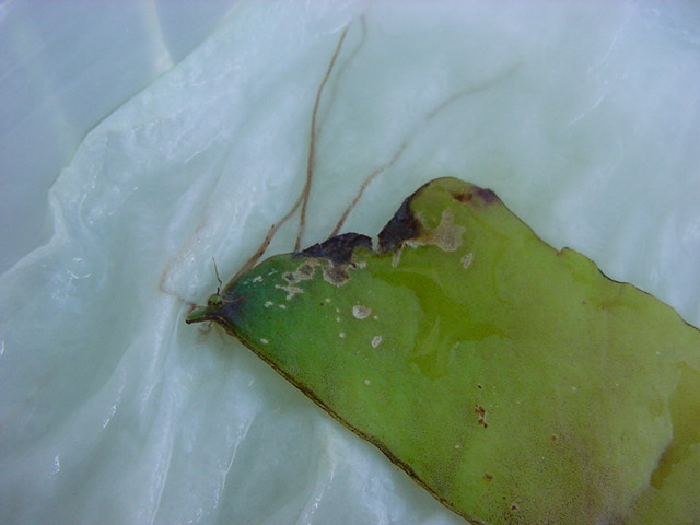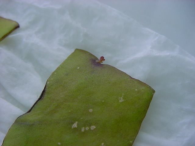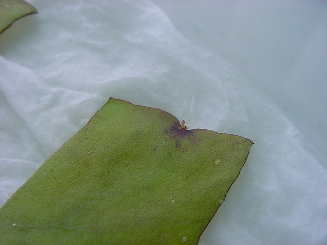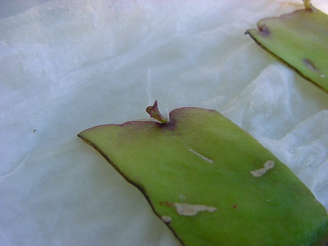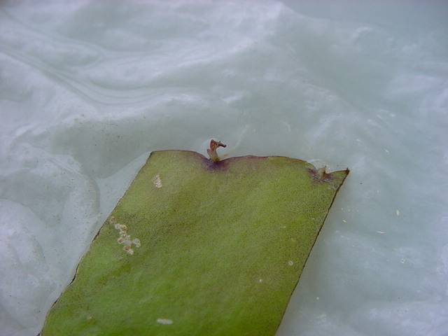 お店のおばちゃんによれば、これは「葉から芽」と呼ばれていて、葉っぱをハサミで細かく切って、濡れたティッシュの上に置いておくだけで芽が出て来て、どんどん大きくなるのだという事でした。 ちょっと信じられないものの、ビニール袋に入った小さな葉っぱが2枚で500円というお土産を買って帰りました。