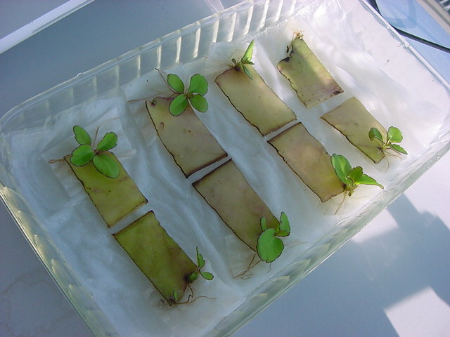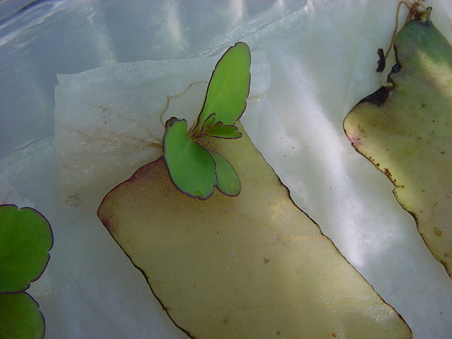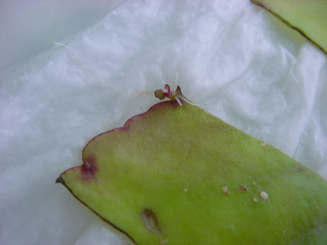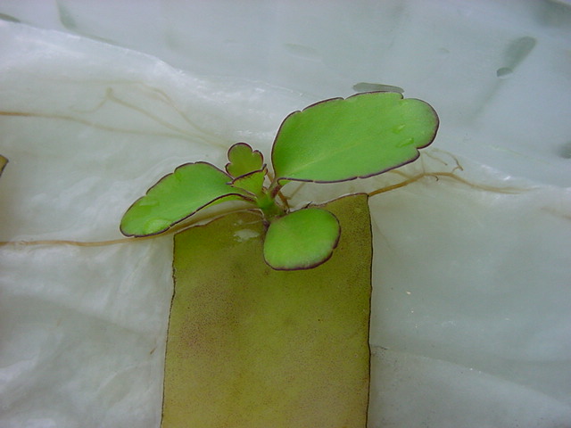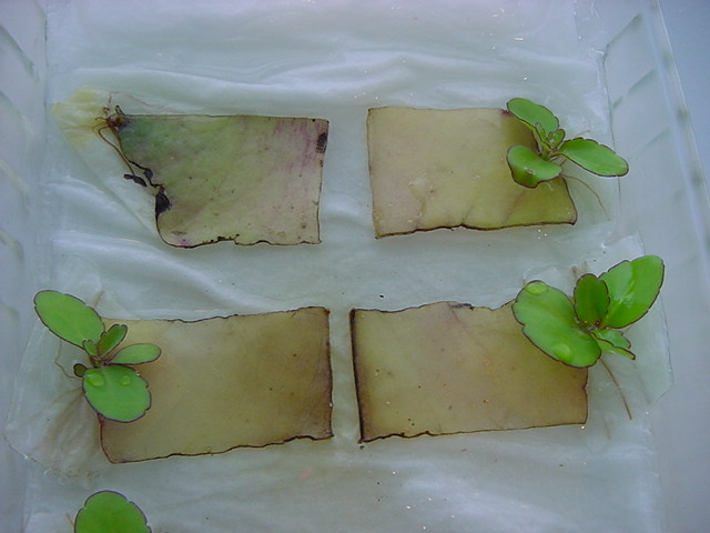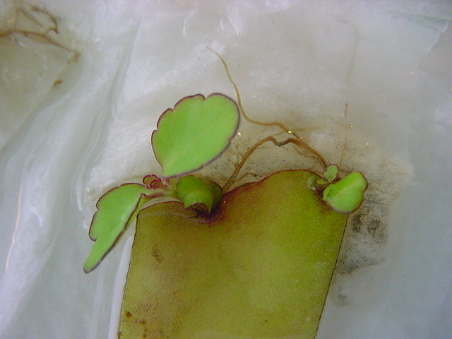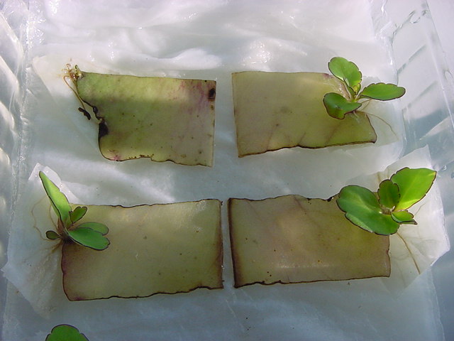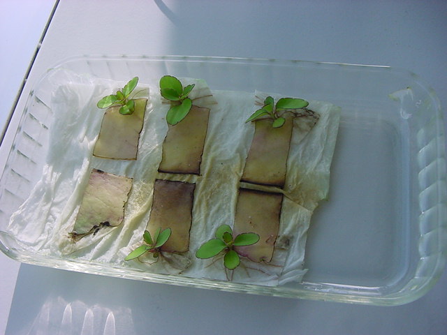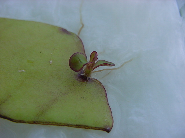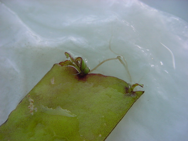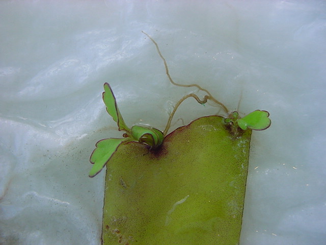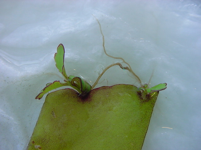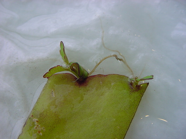9日経過。「葉から芽」に加えて「葉から根」も出て来ました。