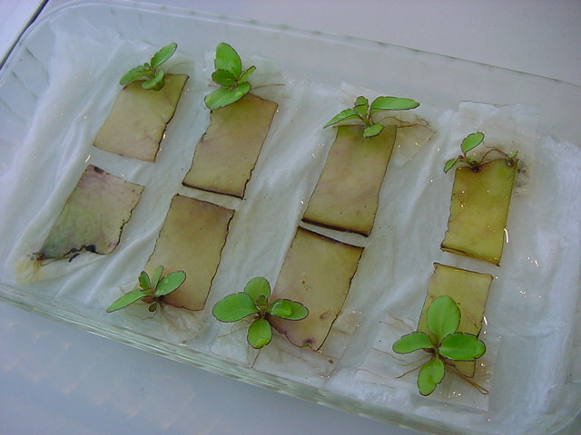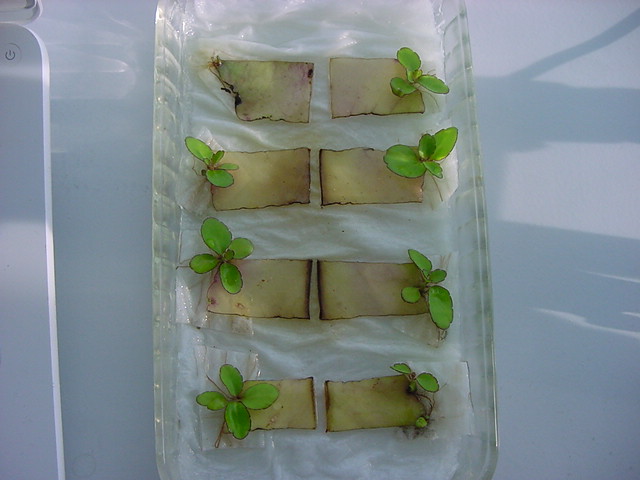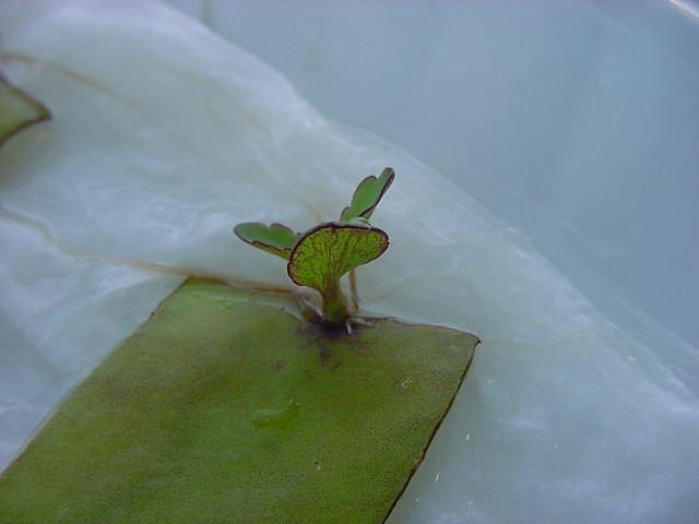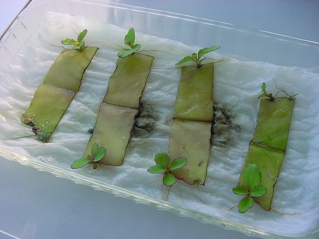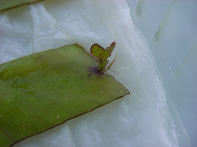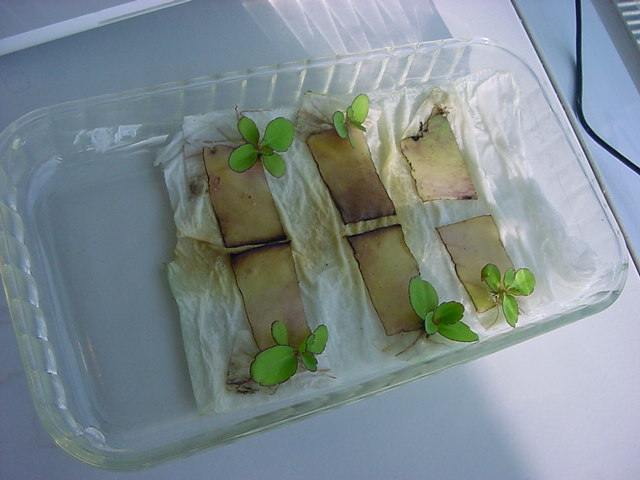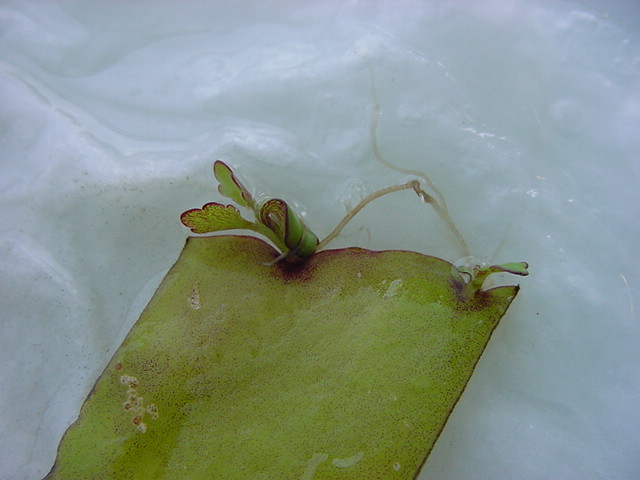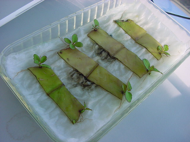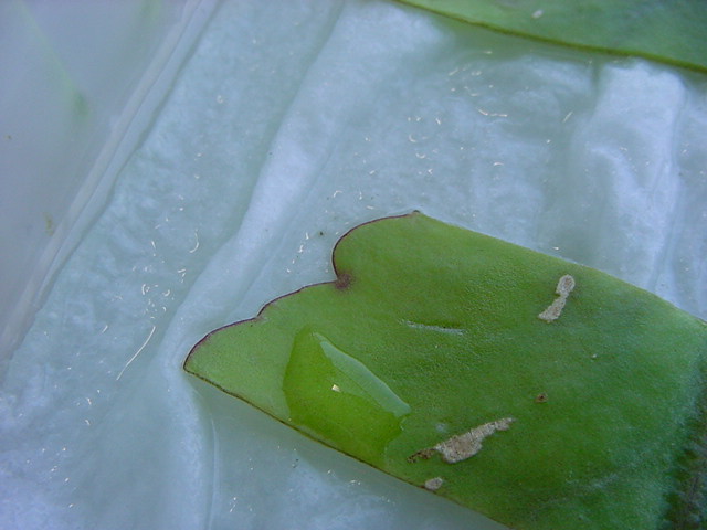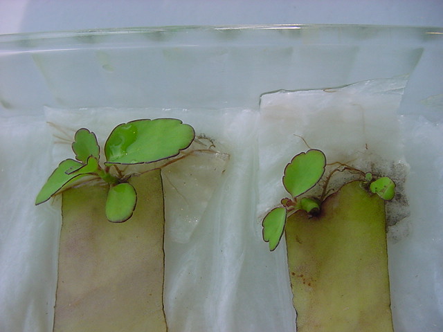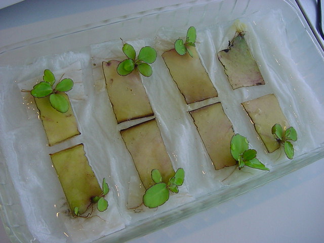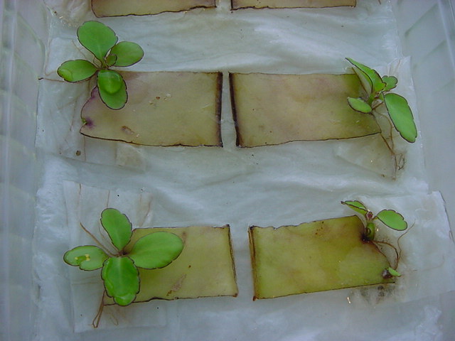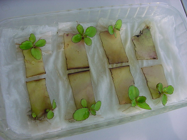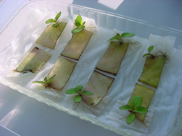 9日経過。「葉から芽」に加えて「葉から根」も出て来ました。