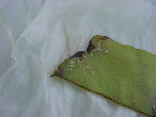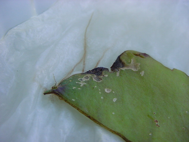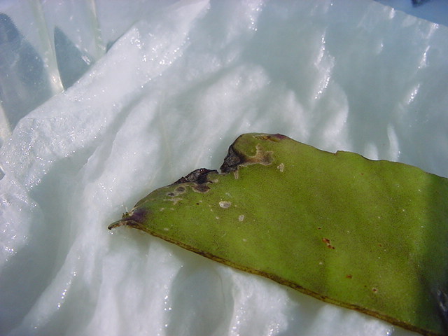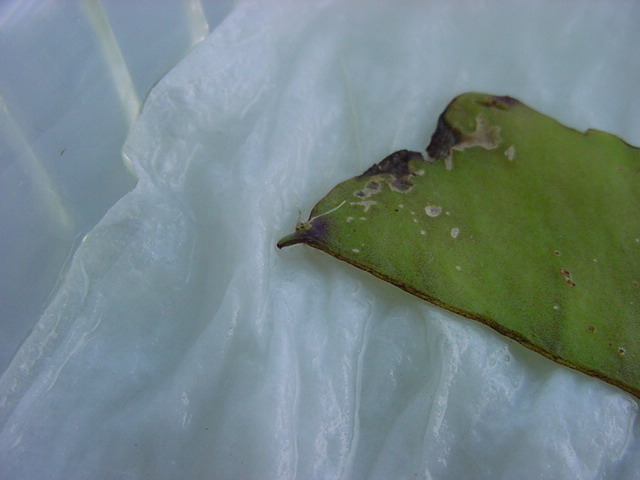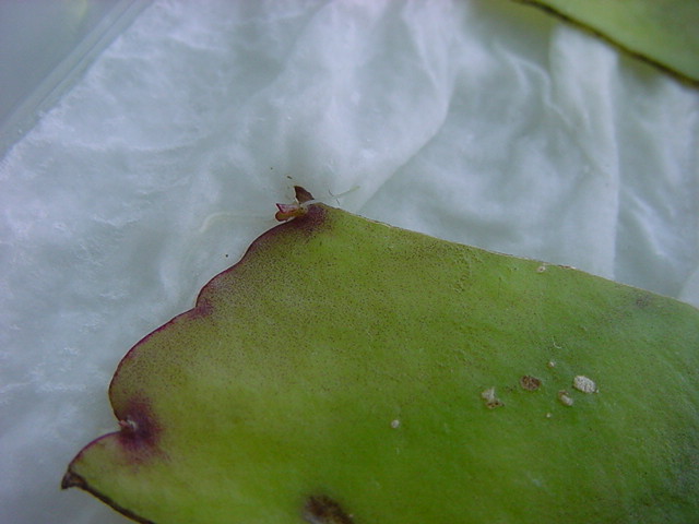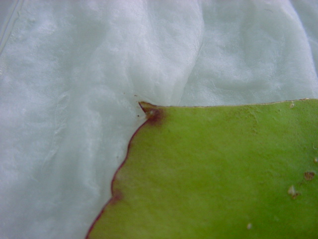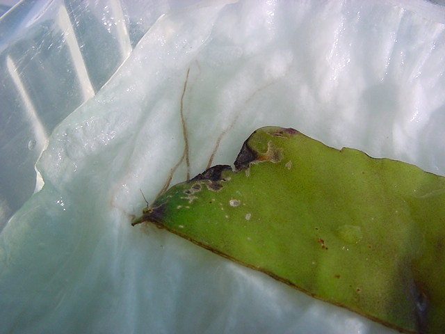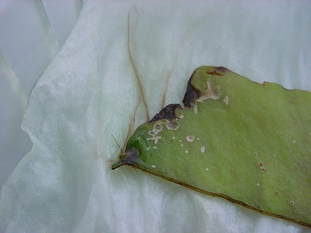 25日経過。カビが目立ってきたので濡れティッシュを交換しましたが、かなり長く根が伸びていました。