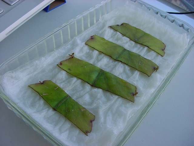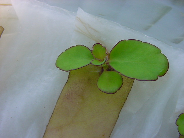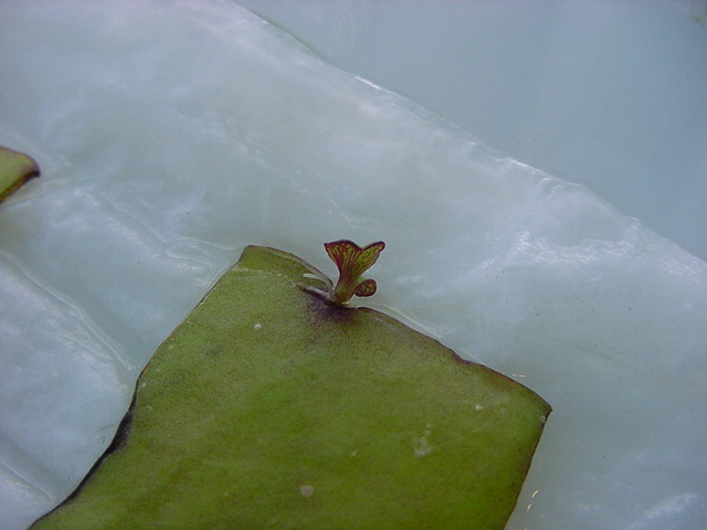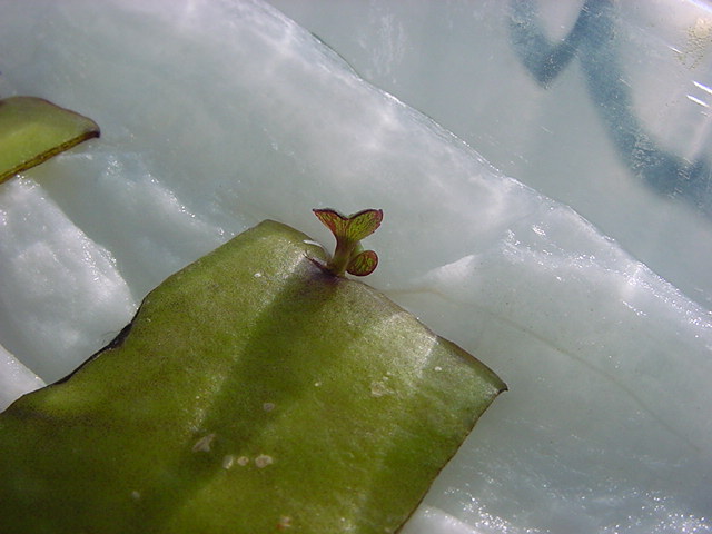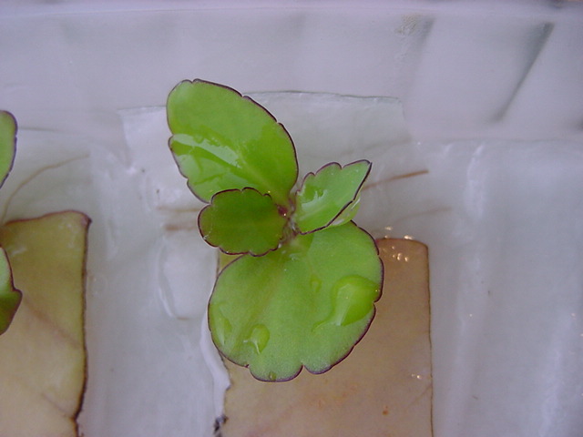 - 定点観測を続けてきた「葉から芽」クンですが、来週末は札幌に出張で水やり出来なくなるので、ここで育ってきた「葉から芽」クンを希望者にお譲りします