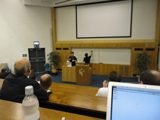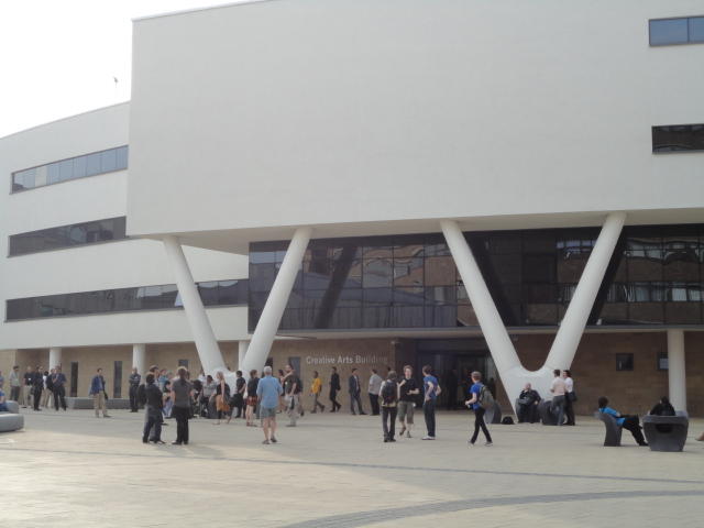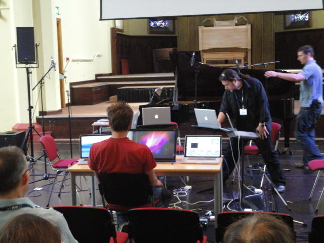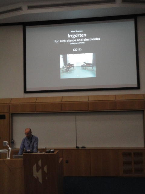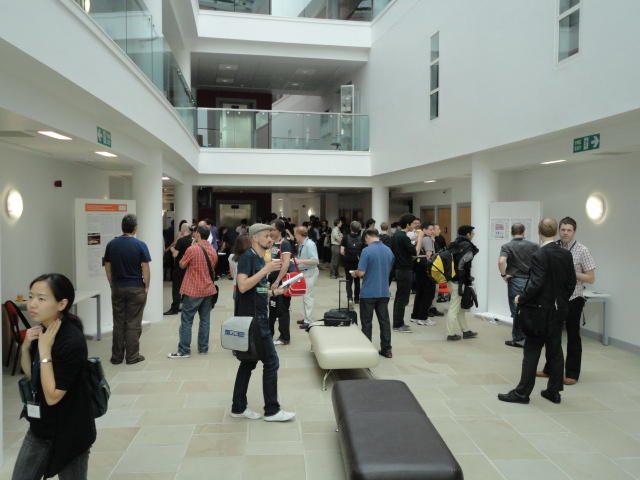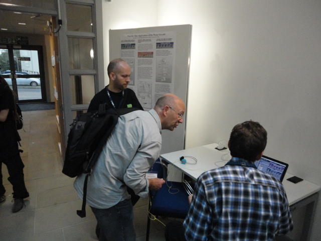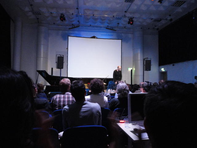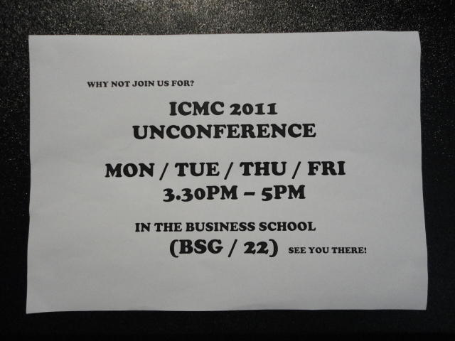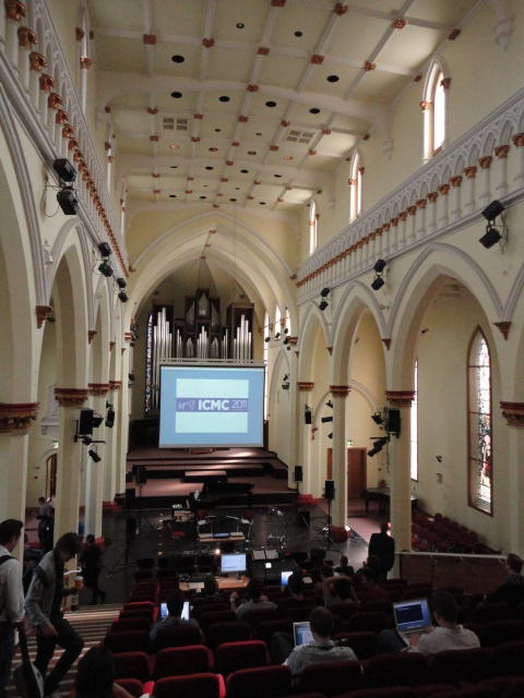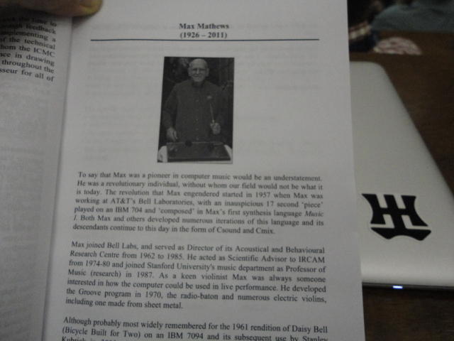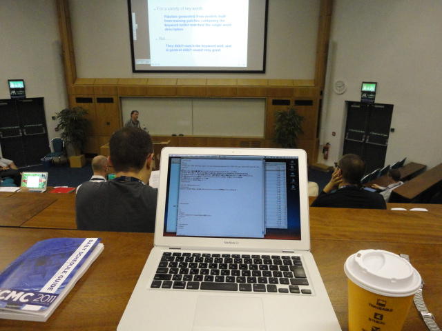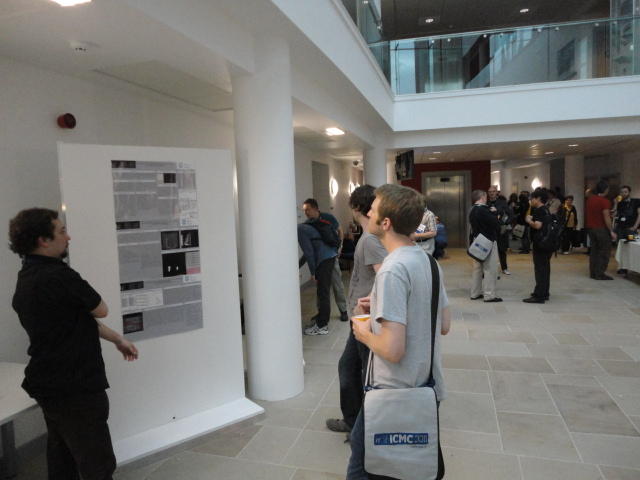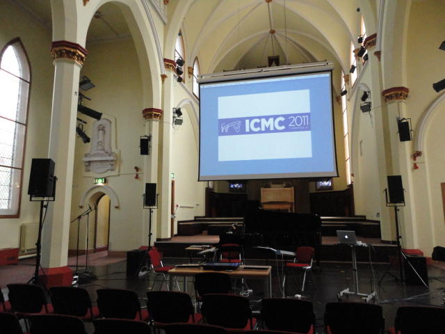 ここ にあるように、1991年以来、これまで何度も参加している、Computer Musicの国際会議 ICMC2011 に、研究発表が採択されて参加しました。 今年の開催場所はマンチェスターから近いHuddersfieldにある、University of Huddersfieldでした。 ICMC2011は、世界のComputer Music研究を60年近くにわたってリードしてしてきた、 Max Mathews博士(Max/MSP/jitterの名前の由来)が亡くなった年のICMC、として記憶されることになりました。 Max Mathews博士の生き生きとしたICMCでの模様は、 ここ にあります。 今回は、日記としては SuperCollider日記(5)Processing日記(4) に日々、書いていたので、ここは淡々と写真だけです。