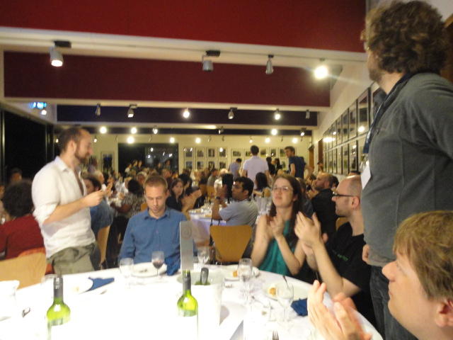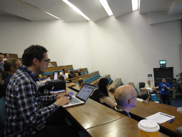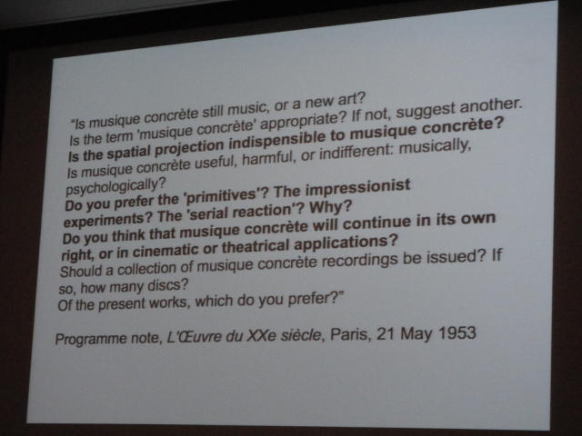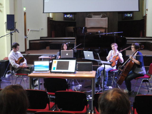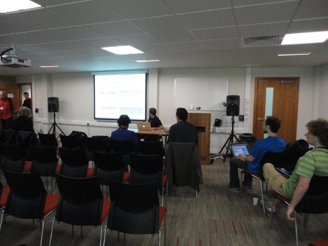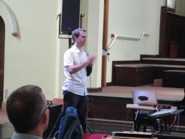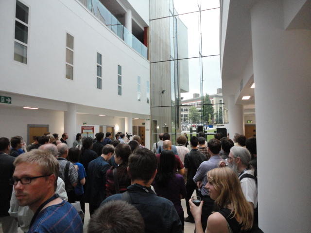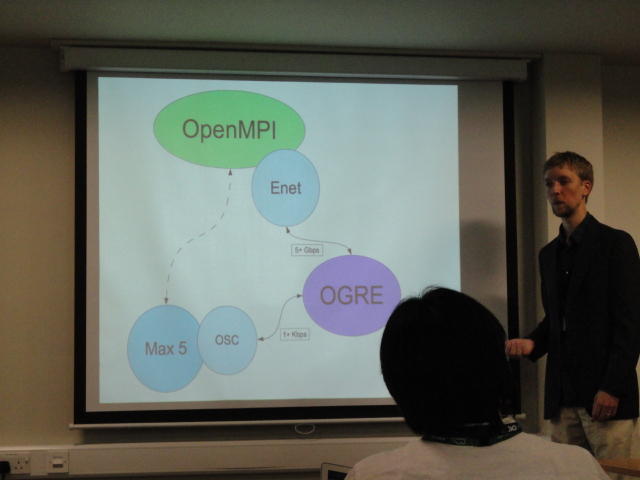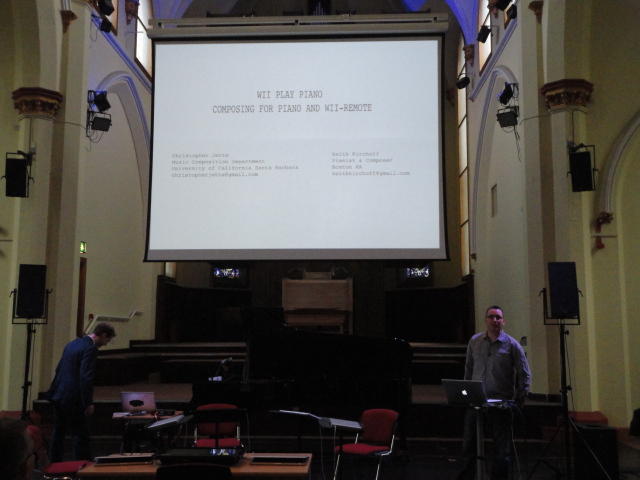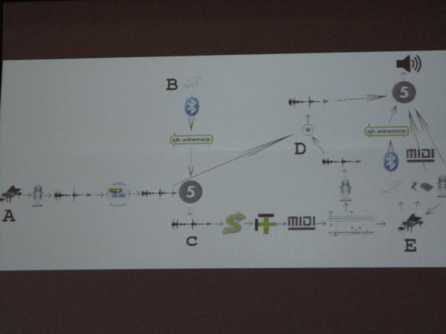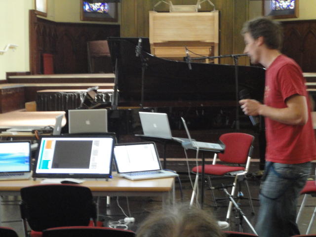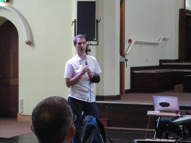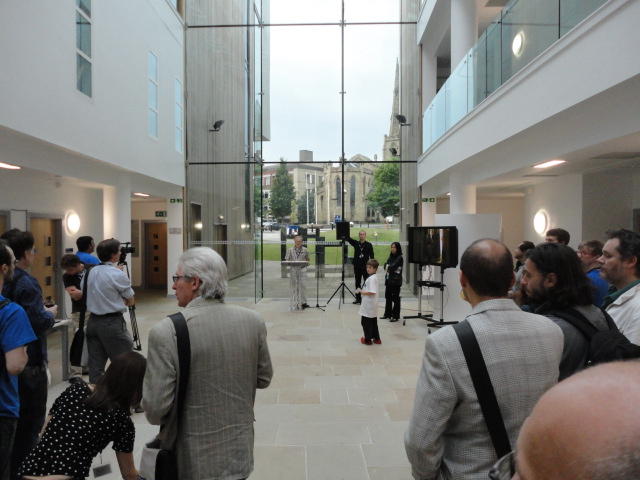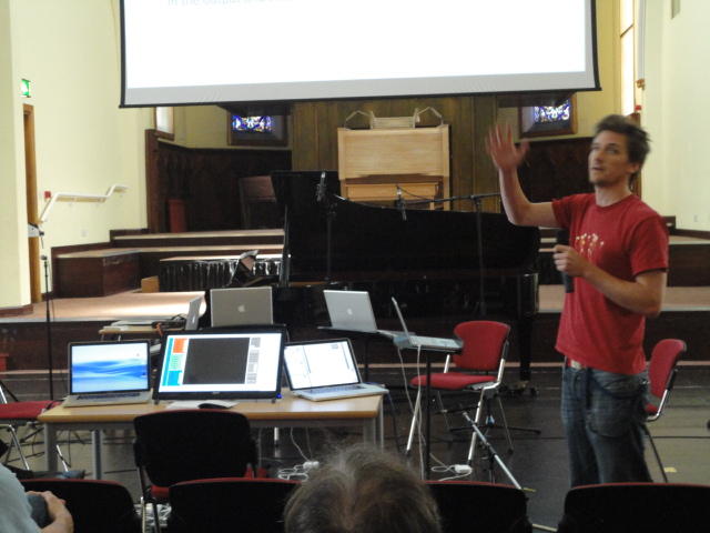 ここ にあるように、1991年以来、これまで何度も参加している、Computer Musicの国際会議 ICMC2011 に、研究発表が採択されて参加しました。 今年の開催場所はマンチェスターから近いHuddersfieldにある、University of Huddersfieldでした。 ICMC2011は、世界のComputer Music研究を60年近くにわたってリードしてしてきた、 Max Mathews博士(Max/MSP/jitterの名前の由来)が亡くなった年のICMC、として記憶されることになりました。 Max Mathews博士の生き生きとしたICMCでの模様は、 ここ にあります。 今回は、日記としては SuperCollider日記(5)Processing日記(4) に日々、書いていたので、ここは淡々と写真だけです。