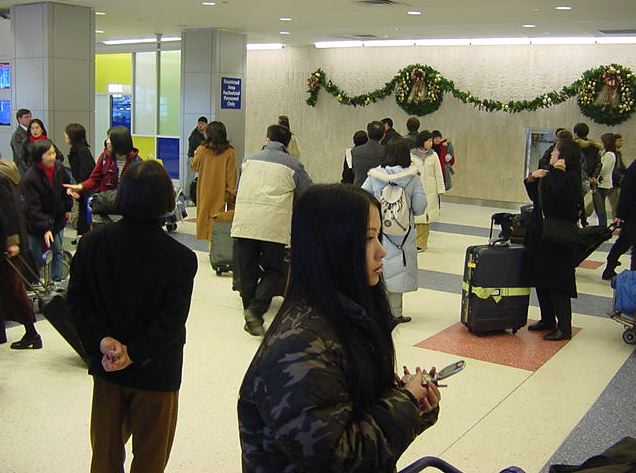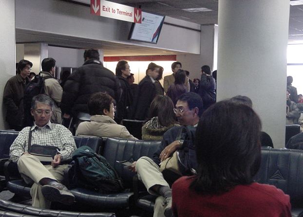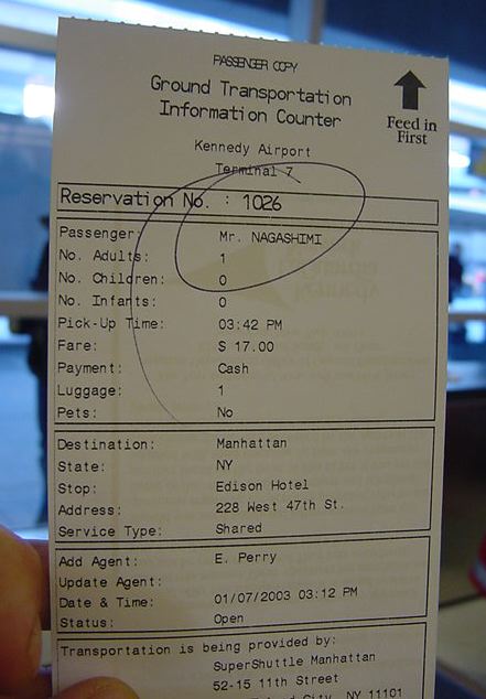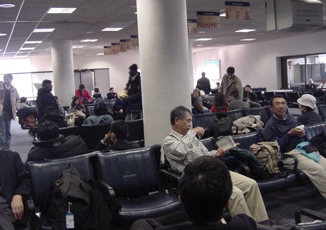 2003年1月15日(水)-16日(木)JFKまでのエクスプレスシャトルバスは朝7時にホテルに来る、と 予約していたのに、前夜になって「道が混むので朝6時に変更」と 電話があり、早朝4時半起きで準備して待ち構えました。ところが どうも、相乗りした他のお客の中にJFKでなく別の空港に行く人が いたために、その回り道の分だけ早起きさせられたようで、 まだ真っ暗な中での空港へのドライブでした。JFKに着いても まだANAのカウンターが開いていなかったのですが、空港内のカフェ でこのレポートの推敲をする時間が取れてラッキーでした。 初日は1/7が2日分もあって充実でしたが、帰りはニューヨークを1/15の 午前11時に出発して13時間のフライト(またまた35分も早く到着)を 経て成田に着くと1/16の午後2時半、ということで、あっという間の 帰国(翌日1/17はゼミのミーティング、そして1/18はセンター試験 など、時差ボケする暇もなくお仕事に復帰)となりました。 帰途のANAのNH009の機体はB747で、「中央ブロックの通路側」と わざわざ座席指定して取った席の隣が期待通りに空いている、 という快適なフライトでした。前回のB777のANAビジネスシートと あまり変わりません。窓側でぎゅうぎゅうに並ぶ3人が可哀想でした。 機内ではノートを出して、「帰国したらすぐにやるべき仕事」を 書き出したら、簡単に22項目も出て来ました。全て今月中必須です。 同じフライトで田村さんと八木さんも一緒でした。笛の八木さんは 1/11にNYに着いたその足でJapan Societyに行ってShowcaseの公演本番、 そして2泊だけしてすぐに帰国し、そのままこのNEXで能楽堂の稽古に行く、 ということでした。凄い売れっ子です。 そのお話では、我々のANAが着いた隣のゲートにほぼ同時刻に 到着したコンチネンタルのフライトで松井が帰国したそうで、 八木さんは生「松井」を見たそうです。なんだか報道陣がいるなぁ、と 僕が通り過ぎたのはその2分ほど前だったようで、松井を 撮りそこねてしまいました。まっいーか。 ★ ★ ★ ★ ★ ★ ★ ★ ★ ★ ★ ★ ★ ★ ★ ★ ★ ★ ★ ★ ★ ★ ★ ★ ★ ★ ★ ★ ★ ★ ★ ★ ★ ★ ★ ★ ★ ★ ★ ★ ★ ★ ★ ★ ★ ★ ★ ★ ★ ★ ★ ★ ★ ★ ★ ★ ★ ★ ★ ★ ★ ★ ★ ★ ★ ★ ★ ★ ★ ★ ★ ★ ★ ★ ★ ★ ★ ★ ★ ★ ★ ★ ★ ★ ★ ★ ★ ★ ★ ★ ★ ★ ★ ★ ★ ★ ★ ★ ★ ★ ★ ・・・お疲れさまでした。