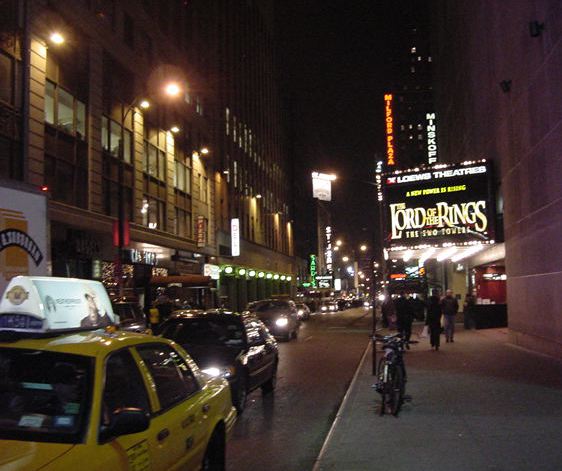 そして、待望の晩になりました。ホテルを出て、ブロードウェイと