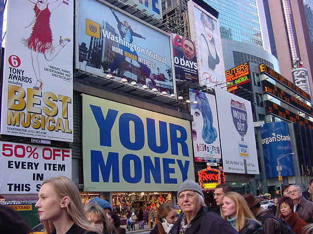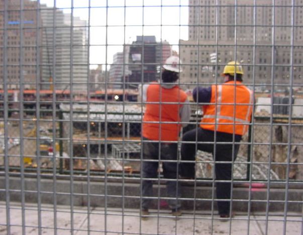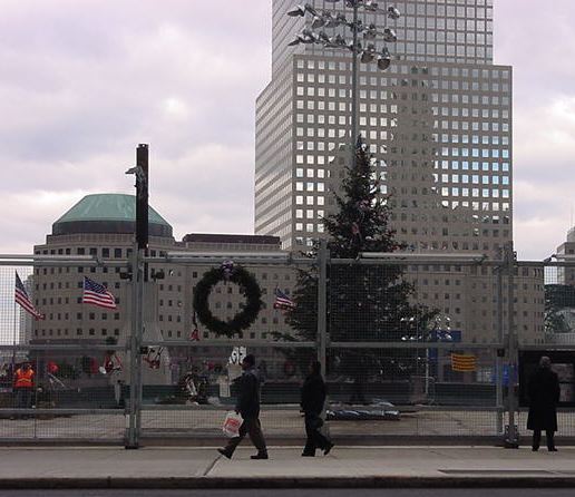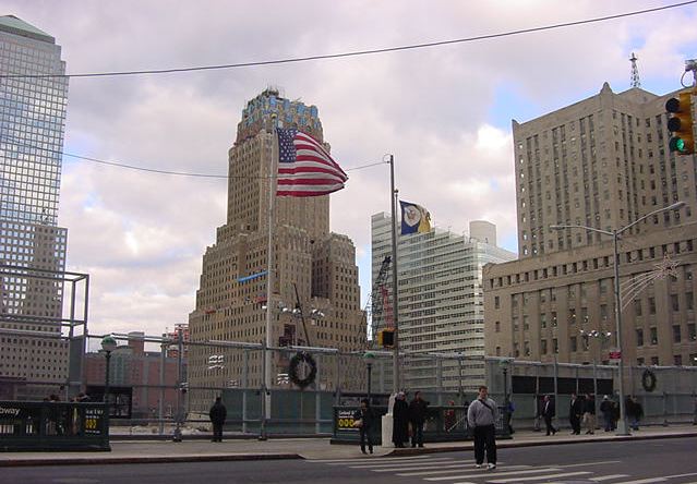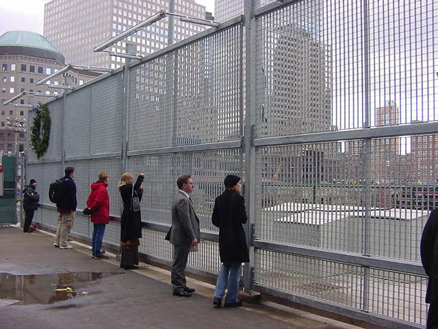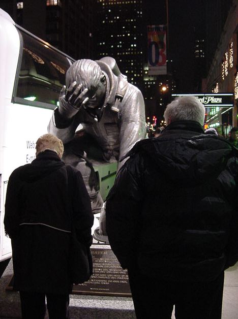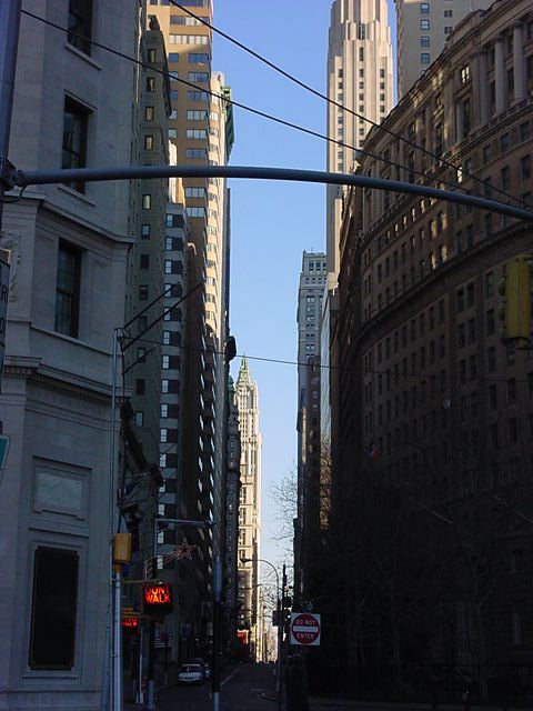 手袋に毛糸の帽子で防寒していても、ウォール街で上の写真を