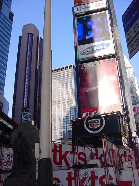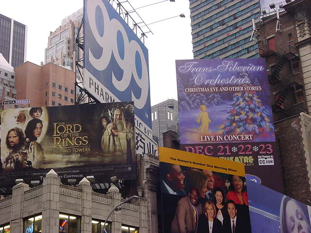 New York Tour 20032003年1月 長嶋洋一2003年の1月7日から1月15日まで、ニューヨークに初めて 行きました。いくつかの目的が重なった出張なのですが、 テーマは「パフォーミング・アートについて考える」です。 昼間にあれこれお仕事するのと、晩になってブロードウェイミュージカルを 観にいくのとが両立できるというNYはかなり効率のいい場所で、 限られた時間内でいろいろ堪能・満喫しつつ、とても勉強になりました。 国際情勢としてイラクや北朝鮮がトップニュースの時期で(ヤンキース の松井は現地TVでも殆ど見かけませんでした)、市内全域がいわば 厳戒体制にあるためか、治安の点では、いま世界でもっとも安心な場所が NYなのかもしれません。 以下、いつものように多数の写真とともに紹介しますので、 参考にしていただければ幸いです。