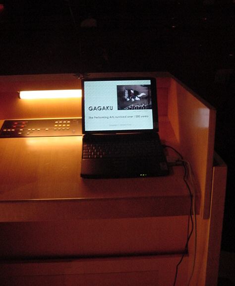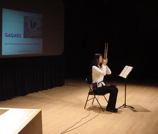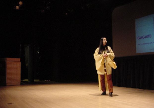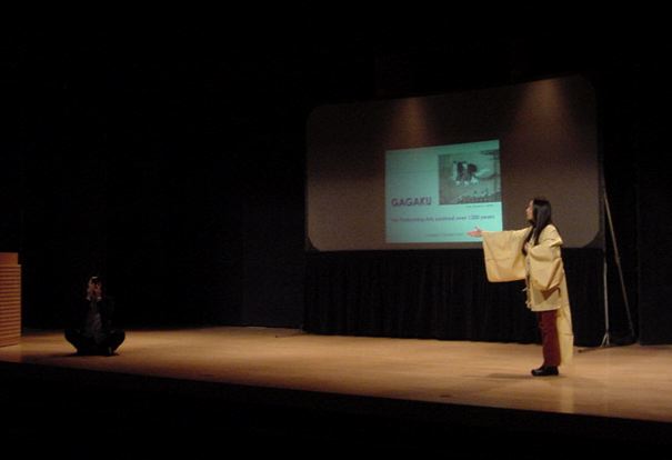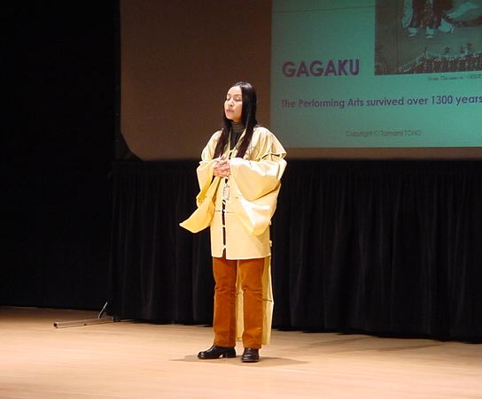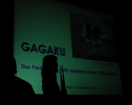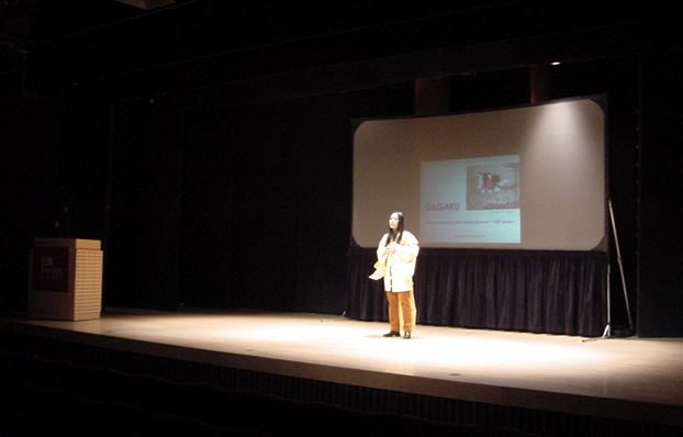プロデューサーの田村さんが雅楽のビデオプレゼンを行い、