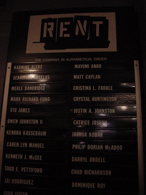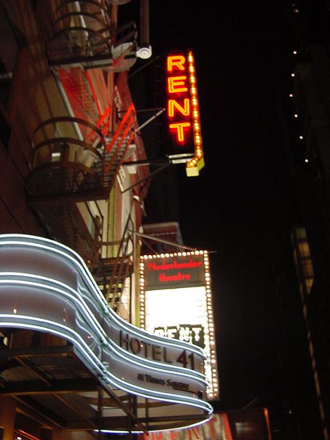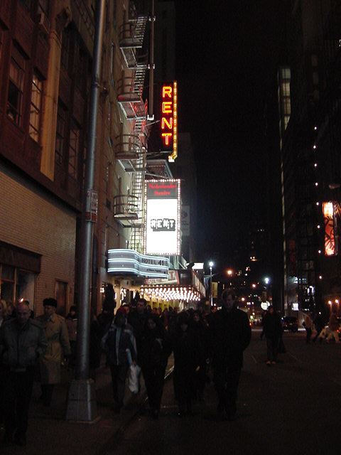 ★ ★ ★ ★ ★ ★ ★ ★ ★ ★ ★ ★ ★ ★ ★ ★ ★ ★ ★ ★ ★ ★ ★ ★ ★ ★ ★ ★ ★ ★ ★ ★ ★ ★ ★ ★ ★ ★ ★ ★ ★ ★ ★ ★ ★ ★ ★ ★ ★ ★ ★ ★ ★ ★ ★ ★ ★ ★ ★ ★ ★ ★ ★ ★ ★ ★ ★ ★ ★ ★ ★ ★ ★ ★ ★ ★ ★ ★ ★ ★ ★ ★ ★ ★ ★ ★ ★ ★ ★ ★ ★ ★ ★ ★ ★ ★ ★ ★ ★ ★ ★ ★ ★ ★ ★ ★ ★ ★ ★ ★ ★ ★ ★ ★ ★ ★ ★ ★ ★ ★ ★ ★ ★ ★ ★ ★ ★ ★ ★ ★ ★ ★ ★ ★ ★ ★ ★ ★ ★ ★ ★ ★ ★ ★ ★ ★ ★ ★ ★ ★ ★ ★ ★ ★ ★ ★ ★ ★ ★ ★ ★ ★ ★ ★ ★ ★ ★ ★ ★ ★ ★ ★ ★ ★ ★ ★ ★ ★ ★ ★ ★ ★ ★ ★ ★ ★ ★ ★ ★ ★ ★ ★ ★ ★ ★ ★ ★ ★ ★ ★ ★ ★ ★ ★ ★ ★ ★ ★ ★ ★ ★ ★ ★ ★ ★ ★ ★ ★ ★ ★ ★ ★ ★ ★ ★ ★ ★ ★ ★ ★ ★ ★ 出演者の皆さんや田村さんは「サッポロ」での打ち上げに 向かうということで、ここで僕は別行動となりJapan Societyを 後にしました。ところがこの日は月曜日で、行ってみたかった場所が お休みである事が判明し、バスでタイムズスクエアに戻り、初めての お土産ショッピングタイムを持ちました。まぁ、ミュージカルで お勉強のために投資(散財)しているので、タクシーも乗らず、 食事もごく簡素に済ませて(ステーキも一度も無し。チップの必要な レストランに入ったのも「サッポロ」だけ)、お土産といっても 絵葉書ぐらいなものです。一点豪華主義のメリハリが重要でしょう。 そして1/13の晩になりました。この日は、最初から狙っていた、 ロックミュージカル「レント」です。写真は41thストリートの この会場までのもの、そして会場の入り口付近と休憩時間中に ちらっと撮った内部、そして再びホテルまでのブロードウェイ の風景(月曜日の夜23時頃なのにこの賑わい)、という お馴染みのものです。チケットは7列目の中央ブロック Aisle Seatという、これまたいい場所でした。 「レント」については、ロックミュージカルということで HairとかJesus Christ Superstarとかの流れを勝手に期待 したのですが、当然ながら違っていて、現代らしく主人公が AIDSだったりします。このミュージカルの流れについては、 ぼちぼち体力の限界に近付いて前半はときどき睡魔と戦って いたこともあり、セリフについていけませんでした。音楽も まぁシンプルでした。ところが後半になると、ゴスペルっぽい 迫力のボーカル/コーラスがあり、そしてストーリーの展開に従って 一気にフィナーレへ急展開、というパワーに圧倒されました。 このミュージカルは泣かずに終わったなぁ、と思いつつラスト シーンがやってきたその最後の一瞬に、しゅーーーっと 一気に惹き付けた演出は凄いもので、その冷静な気持ちの数秒後、 フィナーレで静止した瞬間、突然にぐわぁぁぁ・・・、と涙が 出て来て当惑しつつもまた感動しました。これはなんなんでしょう。 スタンディングオベーションに思わず加わりつつ、「なんでだろー、 なんでだろー」というフレーズがよぎってきました。いやいや、 素晴らしい。やられました。 ★ ★ ★ ★ ★ ★ ★ ★ ★ ★ ★ ★ ★ ★ ★ ★ ★ ★ ★ ★ ★ ★ ★ ★ ★ ★ ★ ★ ★ ★ ★ ★ ★ ★ ★ ★ ★ ★ ★ ★ ★ ★ ★ ★ ★ ★ ★ ★ ★ ★ ★ ★ ★ ★ ★ ★ ★ ★ ★ ★ ★ ★ ★ ★ ★ ★ ★ ★ ★ ★ ★ ★ ★ ★ ★ ★ ★ ★ ★ ★ ★ ★ ★ ★ ★ ★ ★ ★ ★ ★ ★ ★ ★ ★ ★ ★ ★ ★