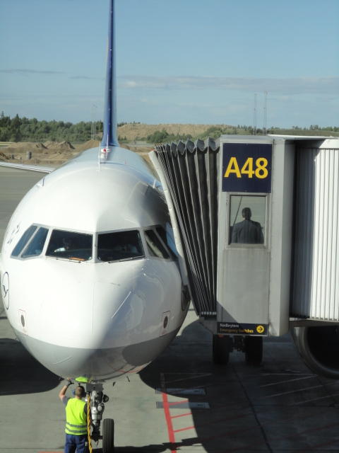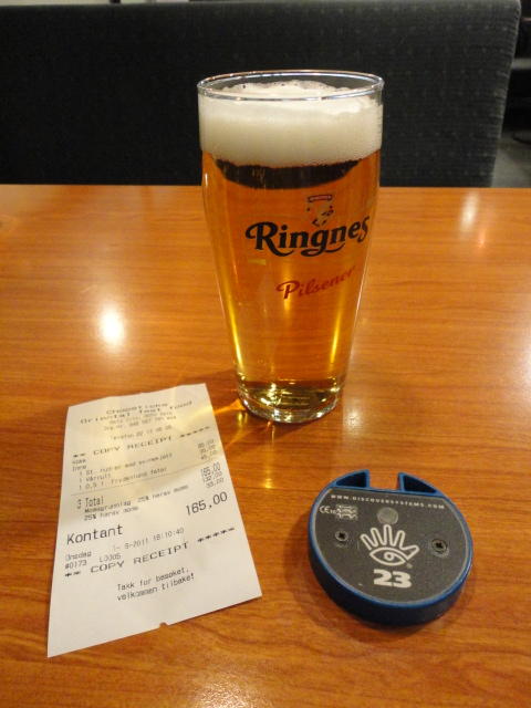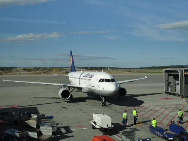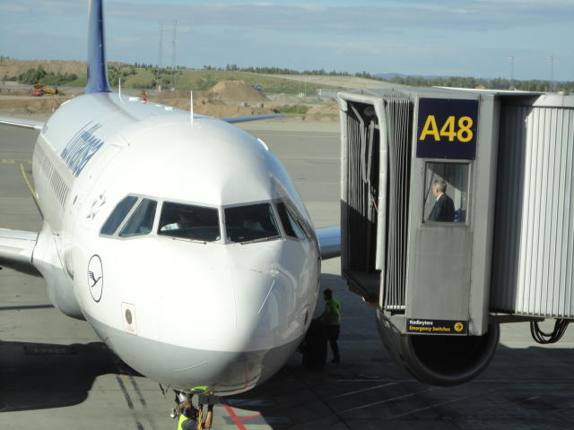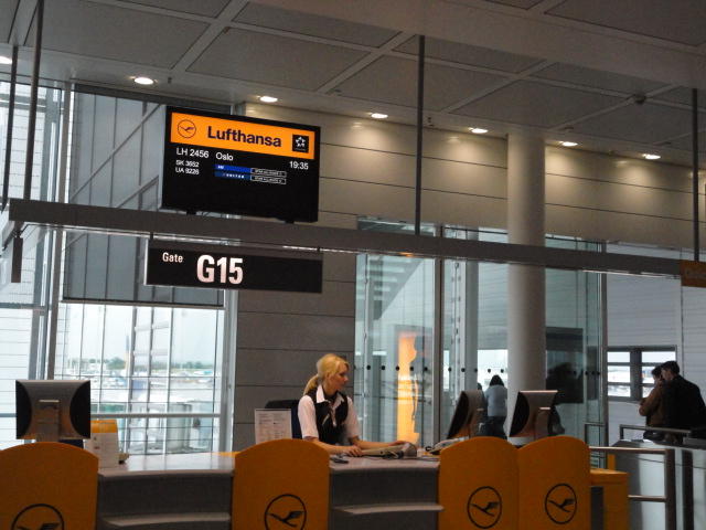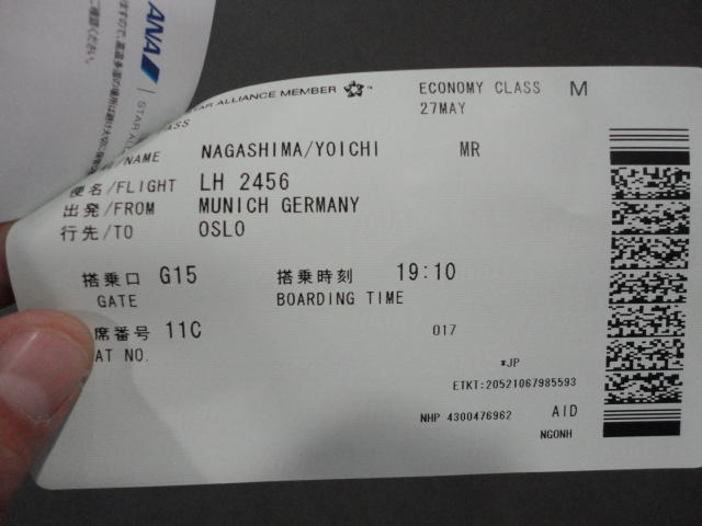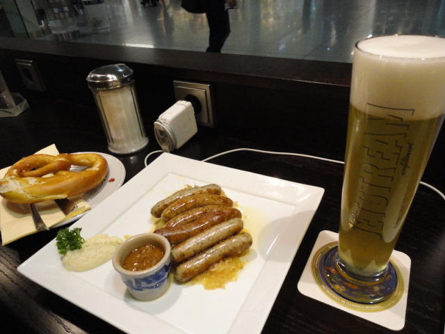 ミュンヘン空港での乗り継ぎには2時間ほどあったので、お約束のビールとソーセージ。 国内からのたくさんのメイルに返信しました。これで日本は週末に入るので一段落です。 アイスランドの噴火でイギリスの空港が閉鎖されたり、ドイツでも一部の空港が混乱しましたが、 何ということもなく無事に通過できました。 オスロまでのフライトはルフトハンザですが、Star Allianceなので、この区間にもちゃんとマイルが付いてます(^_^)。