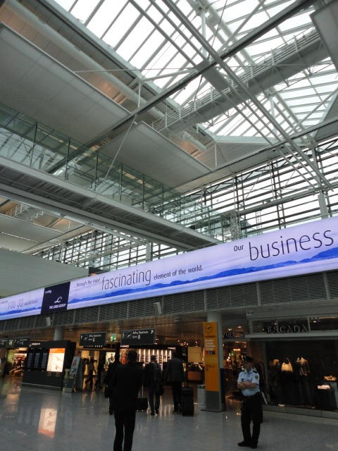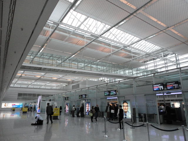 成田空港のANAのヨーロッパ便はいつもこのゲートのあたりです。 2ヶ月後にはまた、ここからロンドンに飛びます。 機内では最後尾のcenter blockのaisle seatの指定を取りました。 ここがいちばん、ラクなので、ロンドン便の往復も同じ「37D」です。 乗り込んだ途端に腕時計を現地時間に合わせてそのつもりになりきり、ワインを飲んでまずは爆睡。 その後は起きたままで、 Processing日記 の続きを書いたりしました。 ミュンヘン空港はフランクフルト空港より小さいので、ヨーロッパ便の乗り継ぎとして気に入っています。