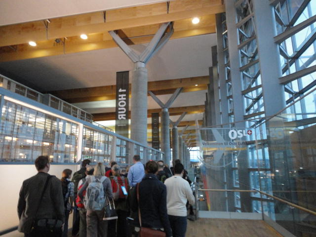 ホテルに戻ってスーツケースを受取り、トラムで中央駅に向かっていたところ、 突然にトラムが故障して(^_^;)、「全員降りろ」ということになり、 1駅区間、ごろごろと押していきましたが、時間に余裕があったので問題ありませんでした。 Flytogetでオスロ空港へ行き、朝から読んでいなかったので、最後のメイルチェックをしました。