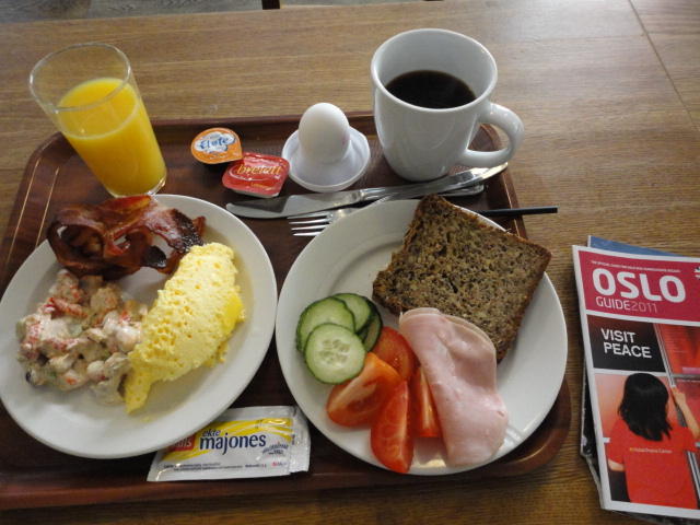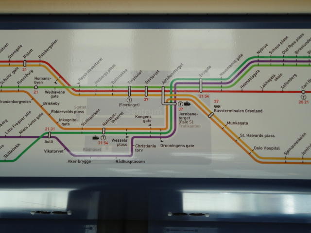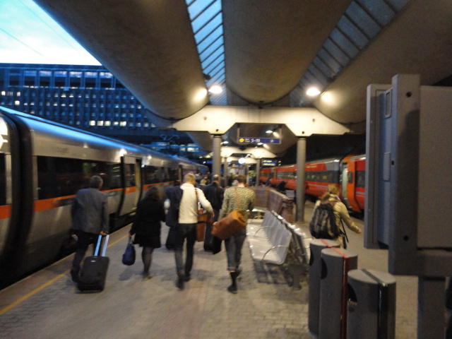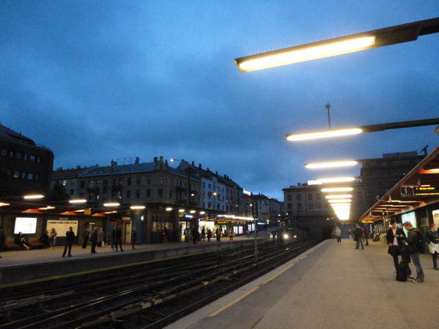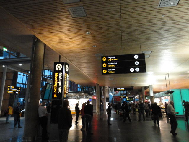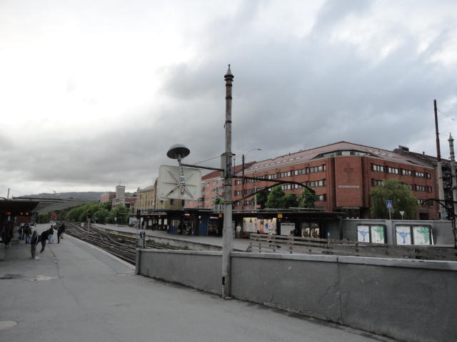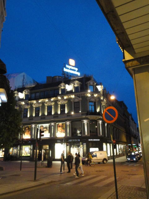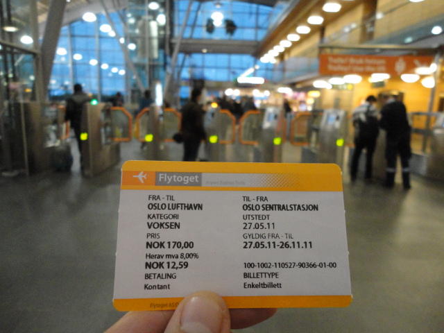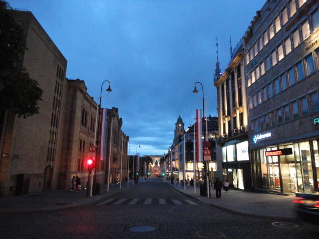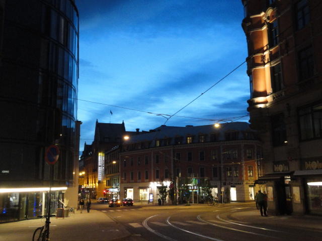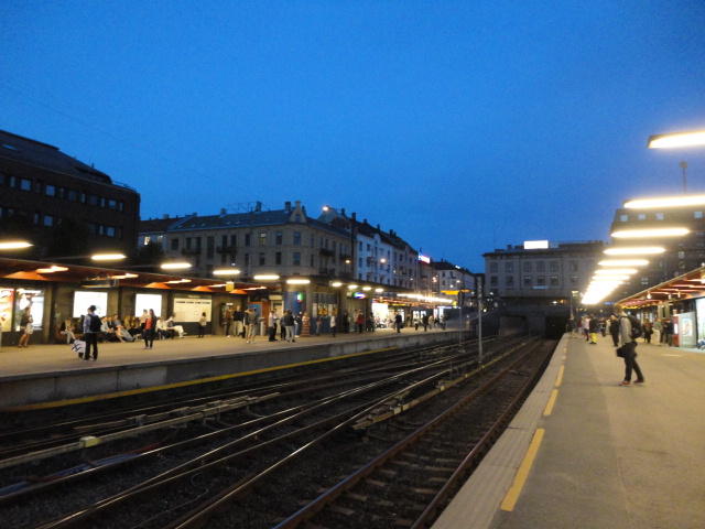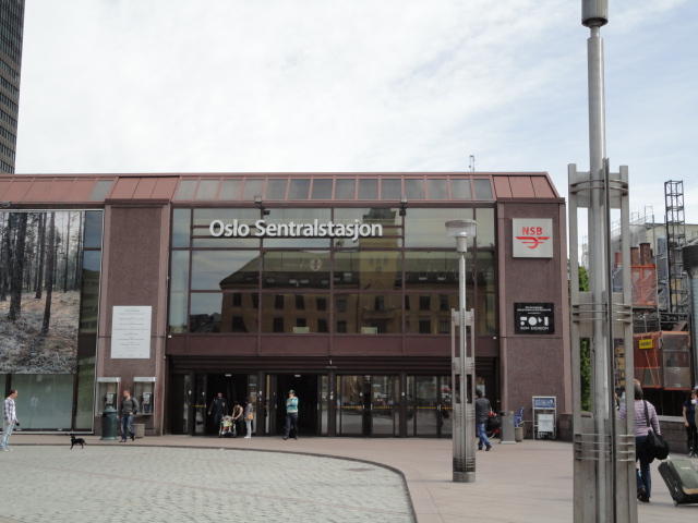 いよいよ初めてのオスロです。 空港からオスロ中央駅までは、Flytogetという専用の列車(成田エキスプレスみたいなもの)が20分間隔で出発し、 20分ほどで着く2つ目の駅がもうオスロ中央駅です。 中央駅が市内の中央にあるという意味でも、この便利さは、 コペンハーゲン に匹敵します。 ただしオスロ中央駅からホテルまでは、到着したのが22:40頃だったので何も判らない事もありタクシーを使いました。 ほんの3分ほどで着きましたが料金は154NOK(2310円)。 これはノルウェーの物価はハンパ無いぞ・・・と覚悟しました(^_^;)。