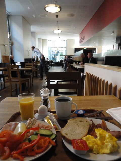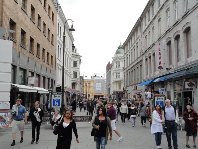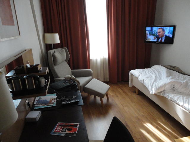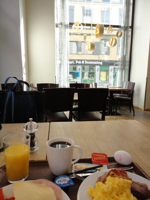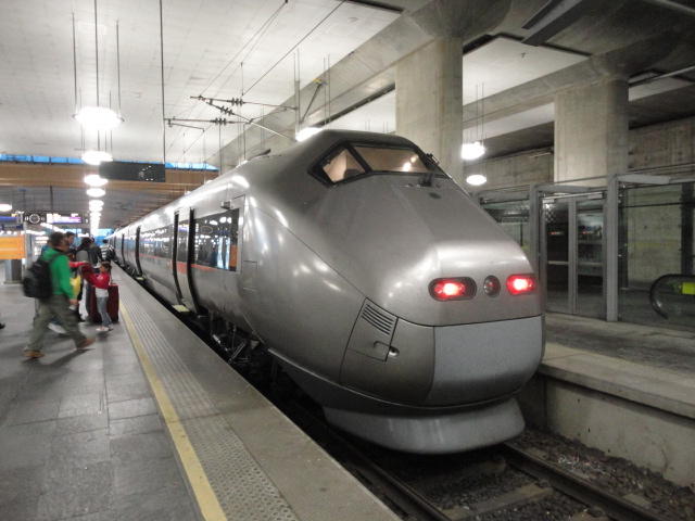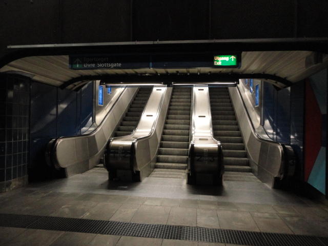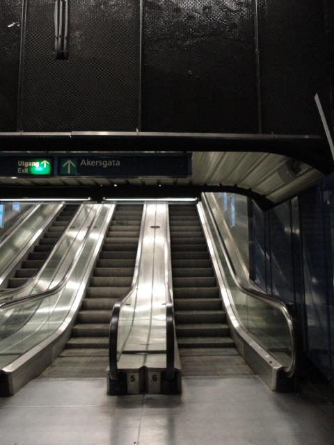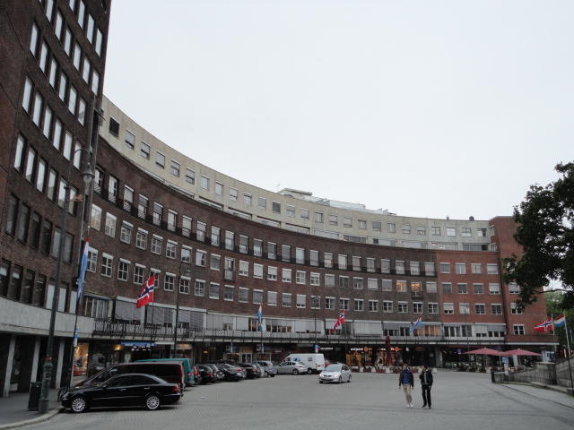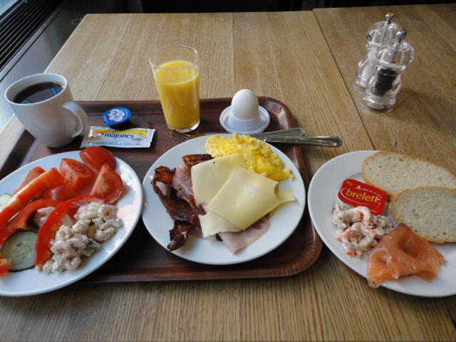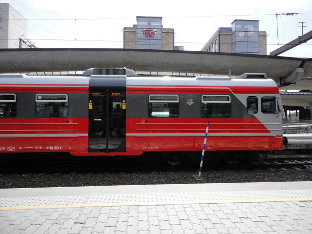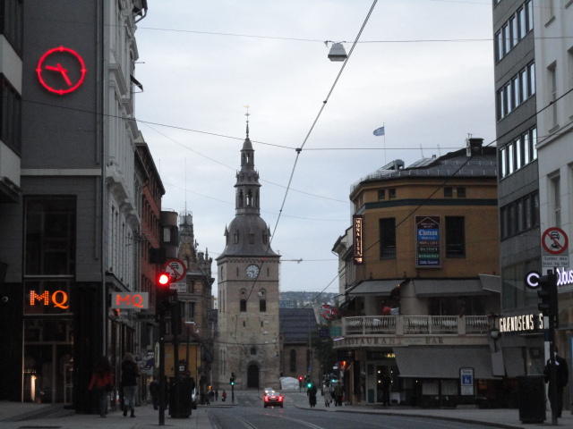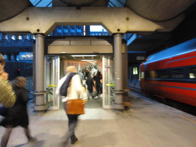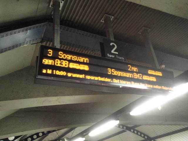 いよいよ初めてのオスロです。 空港からオスロ中央駅までは、Flytogetという専用の列車(成田エキスプレスみたいなもの)が20分間隔で出発し、 20分ほどで着く2つ目の駅がもうオスロ中央駅です。 中央駅が市内の中央にあるという意味でも、この便利さは、 コペンハーゲン に匹敵します。 ただしオスロ中央駅からホテルまでは、到着したのが22:40頃だったので何も判らない事もありタクシーを使いました。 ほんの3分ほどで着きましたが料金は154NOK(2310円)。 これはノルウェーの物価はハンパ無いぞ・・・と覚悟しました(^_^;)。