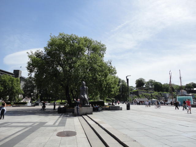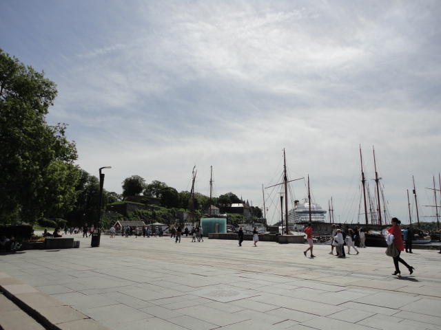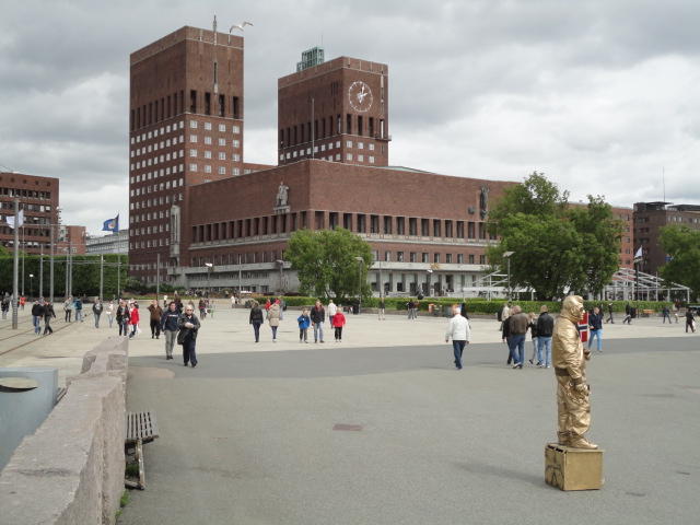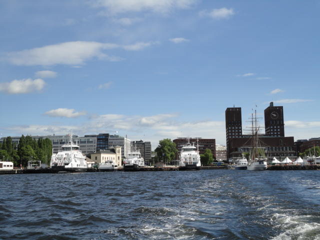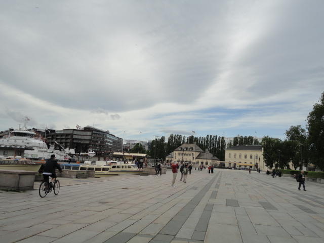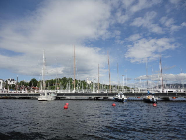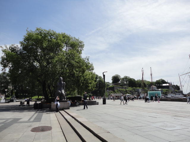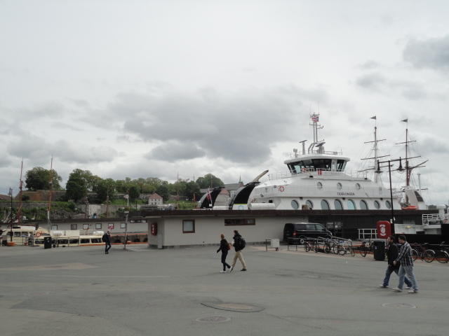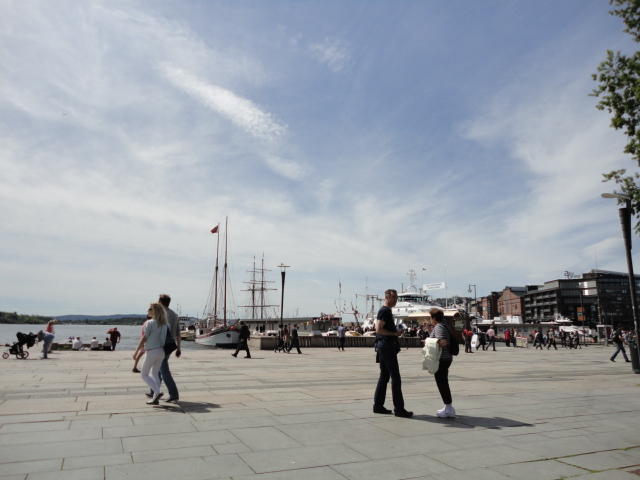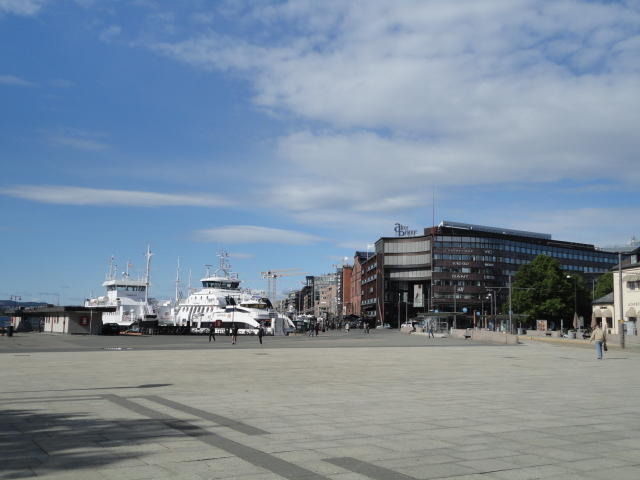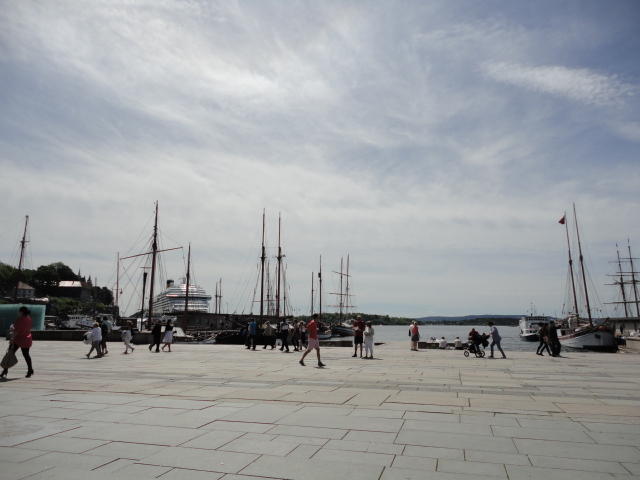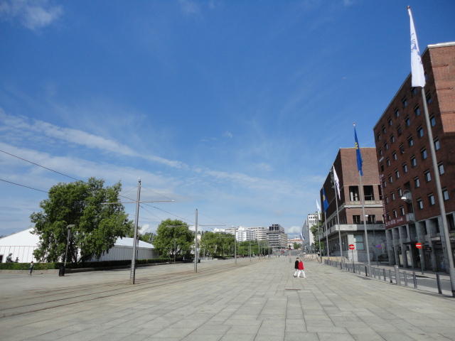 NIMEは6月1日で終わりなのですが、最後のコンサートセッションが終わるのが24時では、 とうてい帰れません(^_^;)。 そこでさらに1泊して、翌日6/2が帰国日となります。 ところがこの6/2ですが、なんと帰りのフライトはミュンヘンで25分で乗り継ぐ(^_^;)、 というぎりぎりスケジュールのため、オスロ出発は夕方の18時です。 それで、最終日にプチ観光が出来ると判明したので、ゆっくり起きてチェックアウトして、 スーツケースをホテルに預けると、再びAker Bryggeへ向かいました。