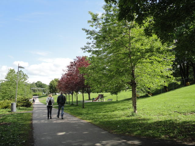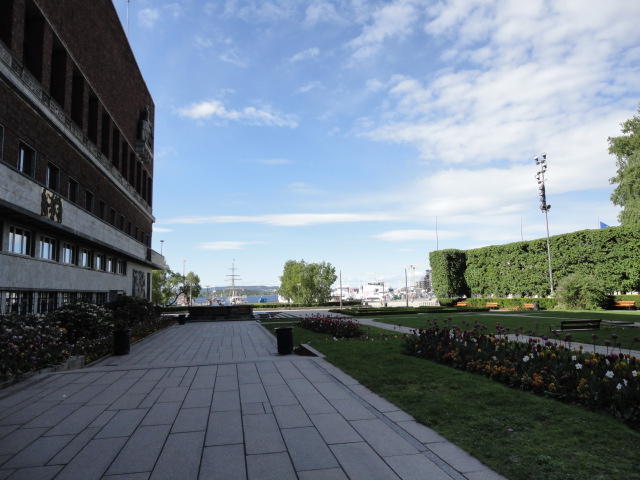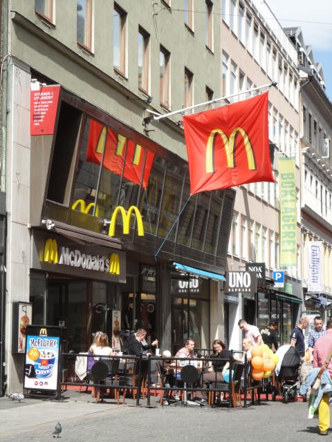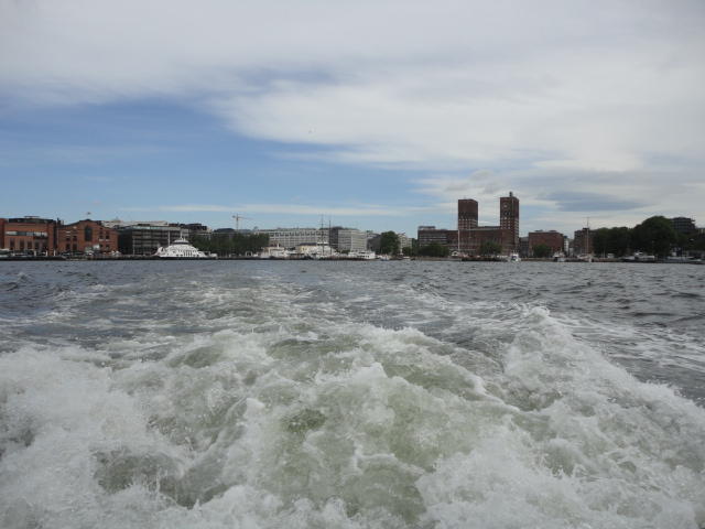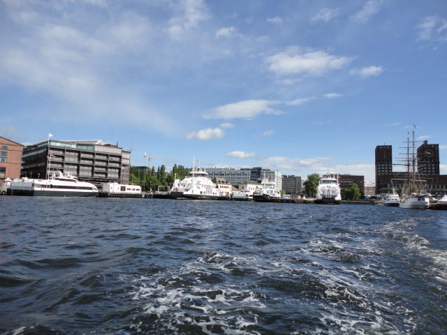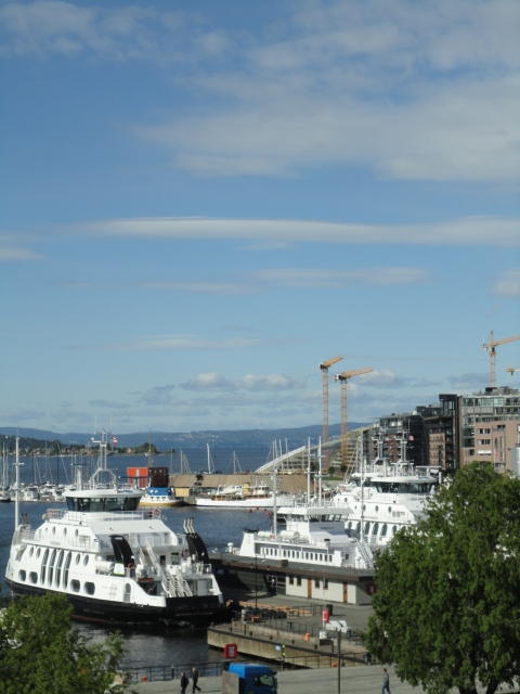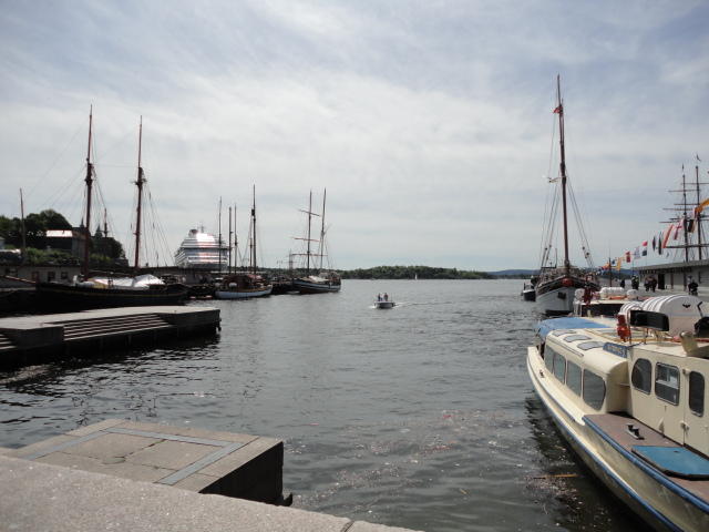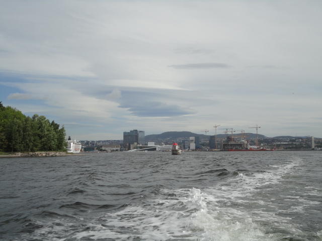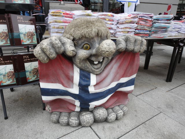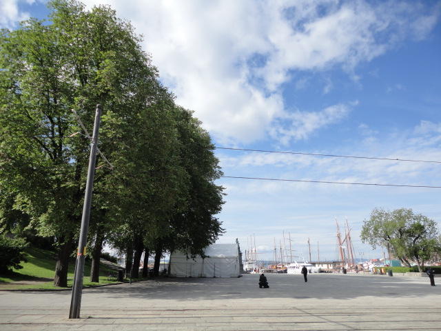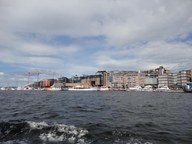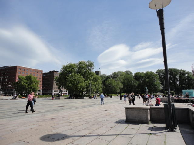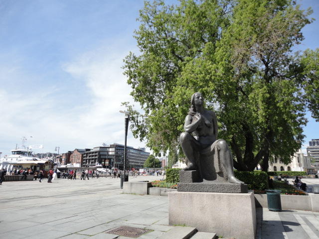 NIMEは6月1日で終わりなのですが、最後のコンサートセッションが終わるのが24時では、 とうてい帰れません(^_^;)。 そこでさらに1泊して、翌日6/2が帰国日となります。 ところがこの6/2ですが、なんと帰りのフライトはミュンヘンで25分で乗り継ぐ(^_^;)、 というぎりぎりスケジュールのため、オスロ出発は夕方の18時です。 それで、最終日にプチ観光が出来ると判明したので、ゆっくり起きてチェックアウトして、 スーツケースをホテルに預けると、再びAker Bryggeへ向かいました。