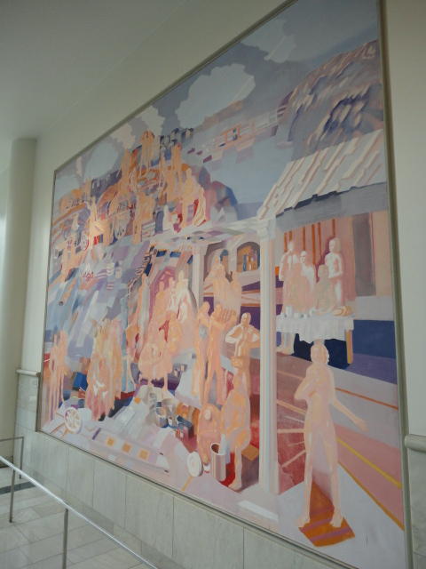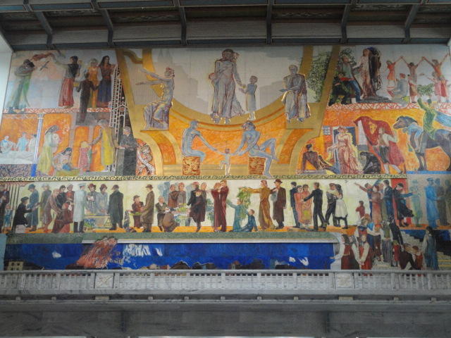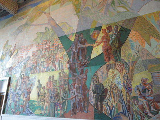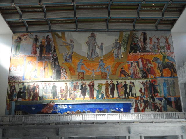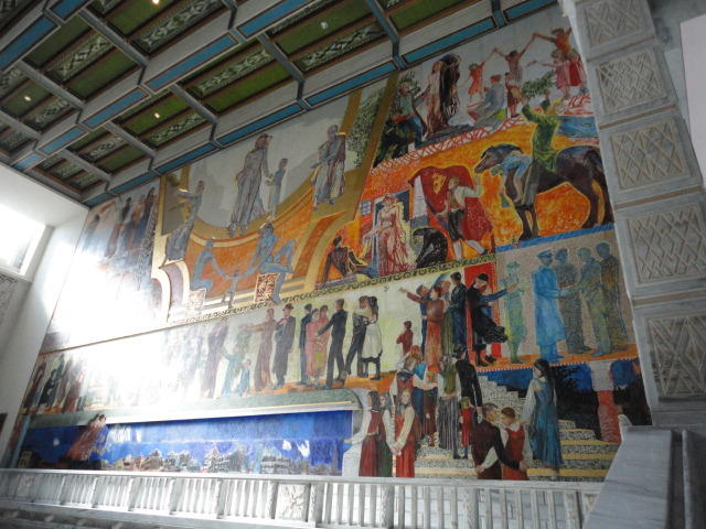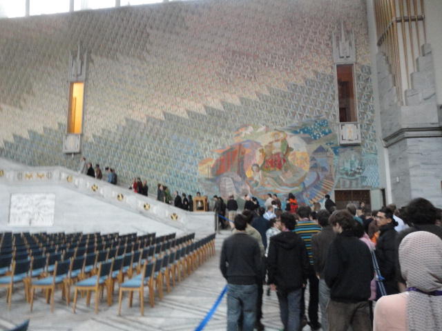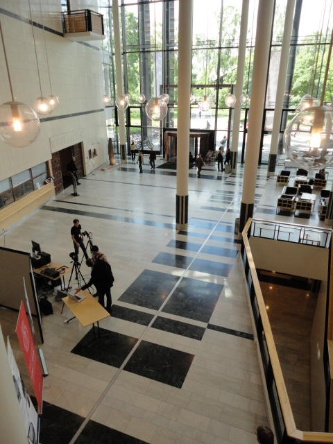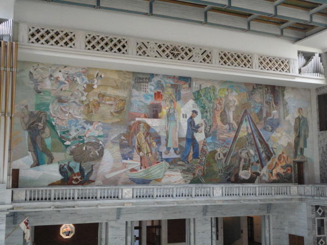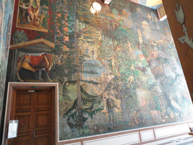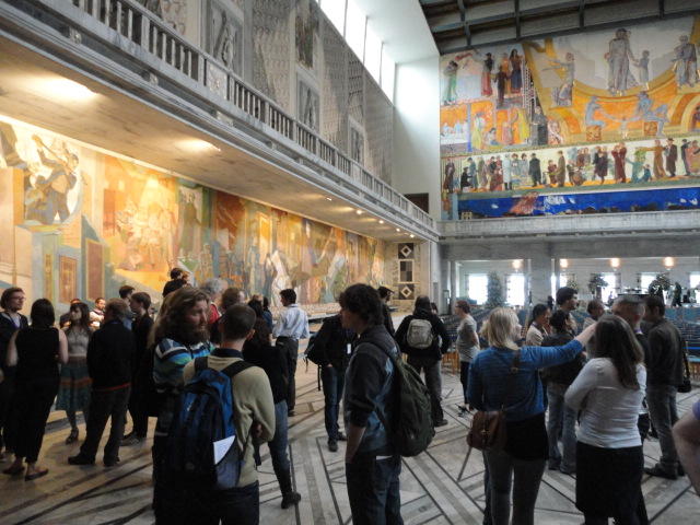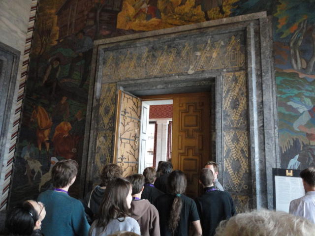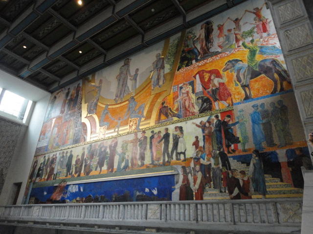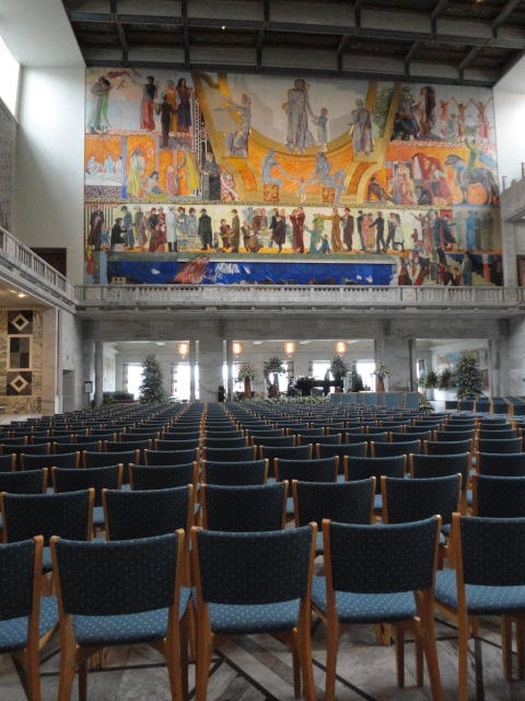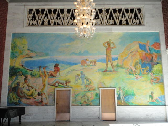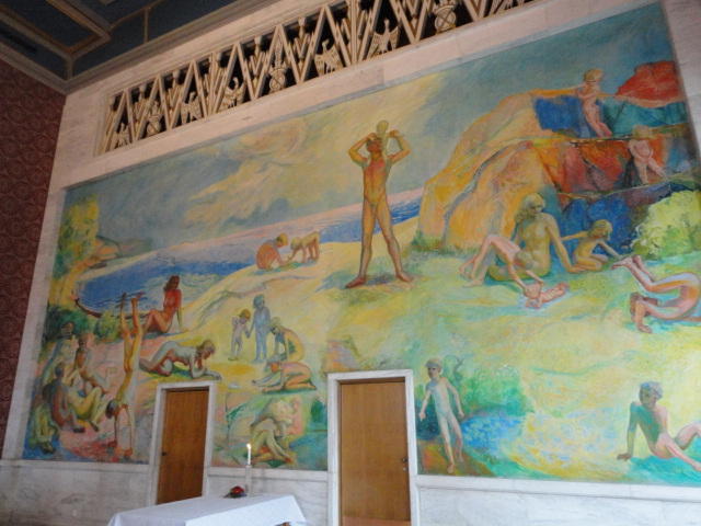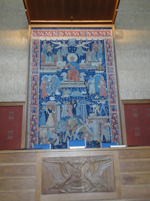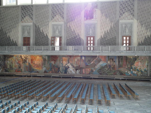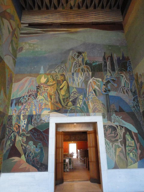 この日は午後からいよいよNIME2011のレジストレーションなどが始まるので、 天気のいい朝イチから、フルに活動しました。 まずは前日にも行ったオスロ市庁舎に行き、ノーベル平和賞の授賞式会場でもあるホール、 さらに誰でも入場(無料)できるエリアを見て回りました。 午前中から観光客でごった返す場所ですが、まだ朝イチ(9時過ぎ)ということで、 たった一人で素晴らしい空間を堪能しました。