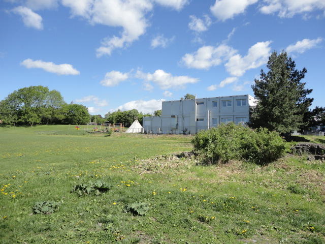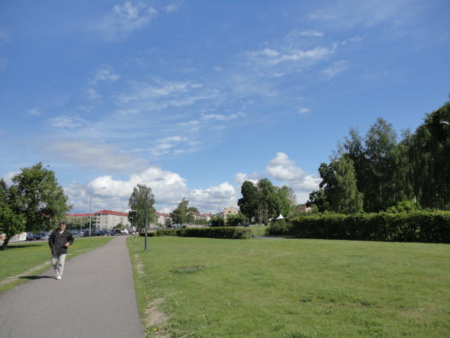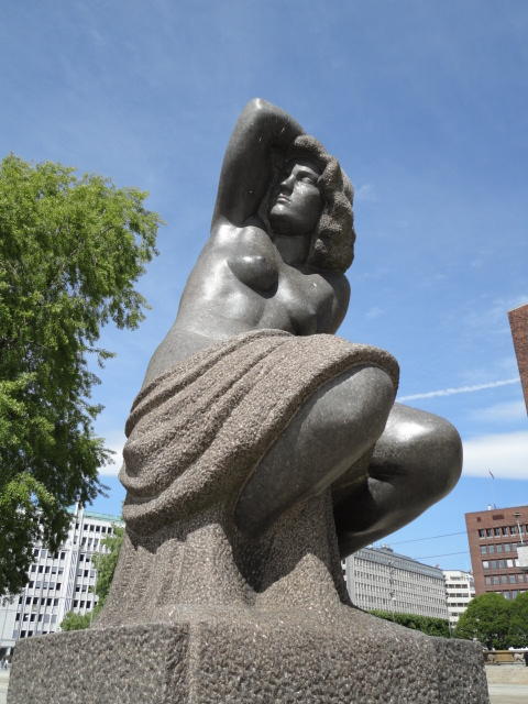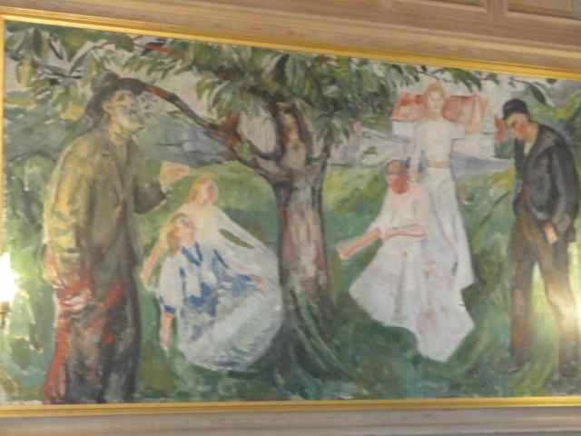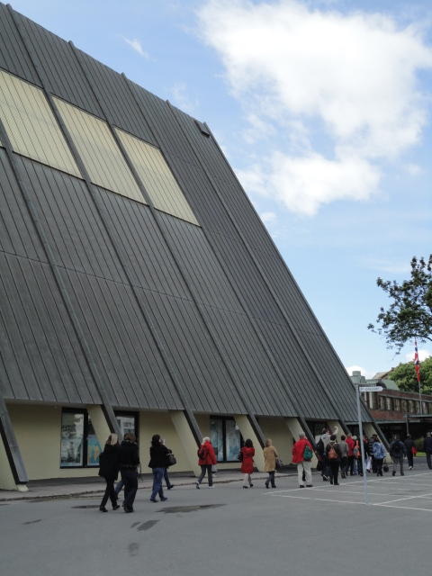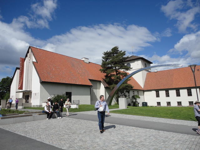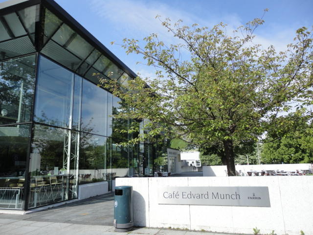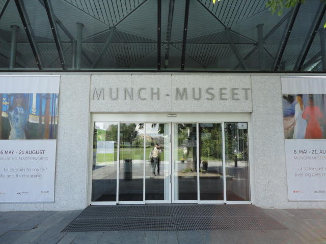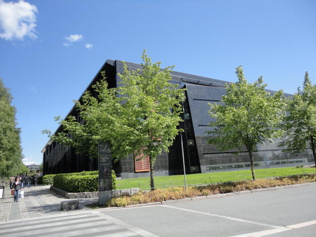 ノルウェーで画家と言えばムンク、作曲家と言えばグリーグだそうです。 そこでメトロでちょっとの場所にある「ムンク美術館」に行きましたが、 なんと土曜日だけは開館時刻が1時間遅い(11時)ということで、美術館の前の芝生でまったりしました。 何故か、朝はいい天気というのはヨーロッパに多い気がします。 本物の「叫び」を見ましたが、ムンクの「叫び」は4種類ほどあるとの事でした(^_^;)。 他の絵はどうもイマイチで、「叫び」テイストの絵が印象的でした。