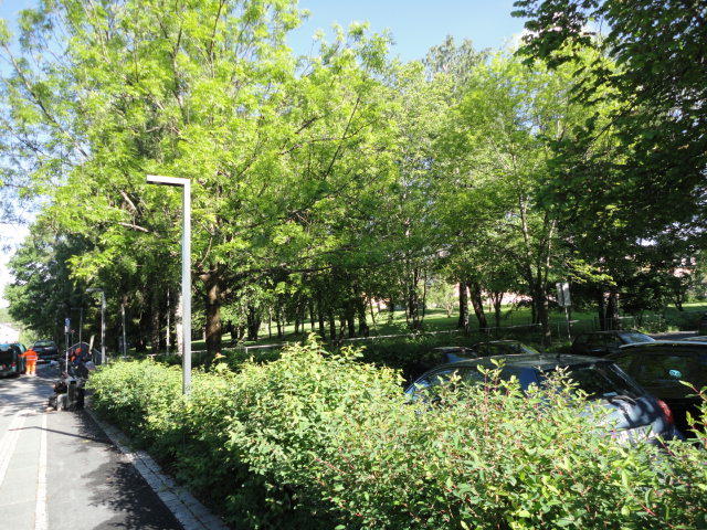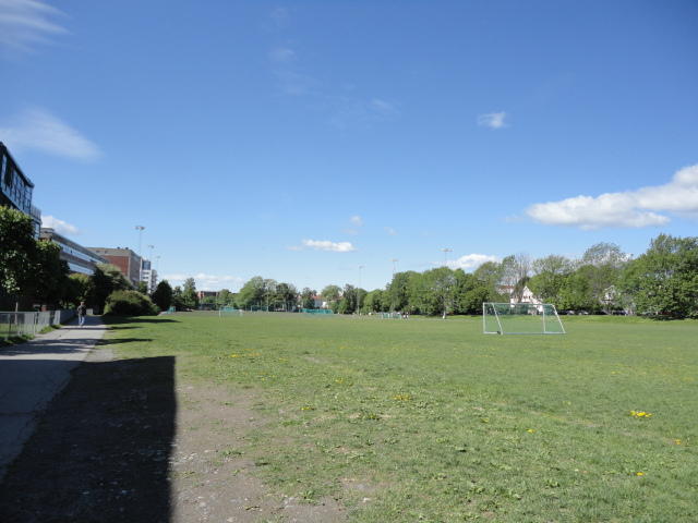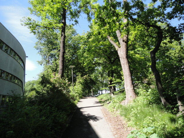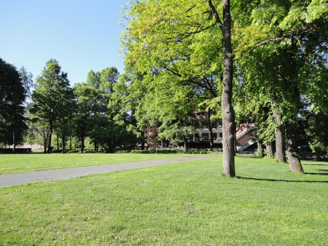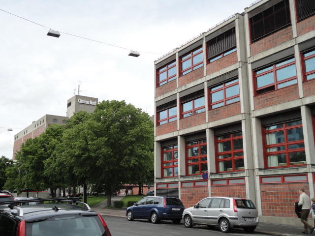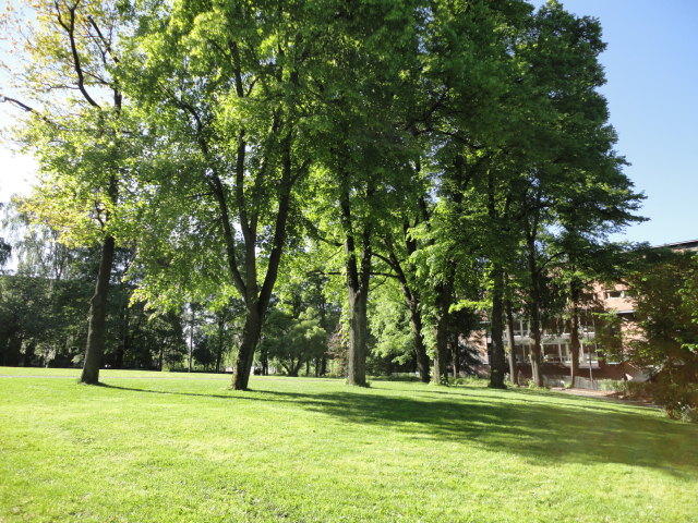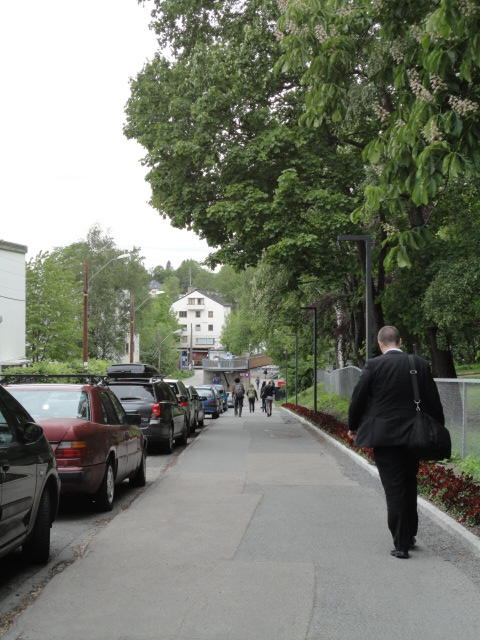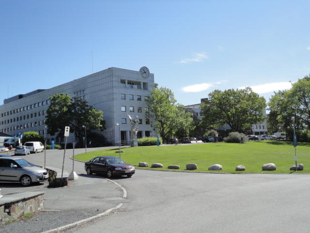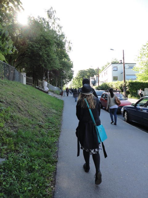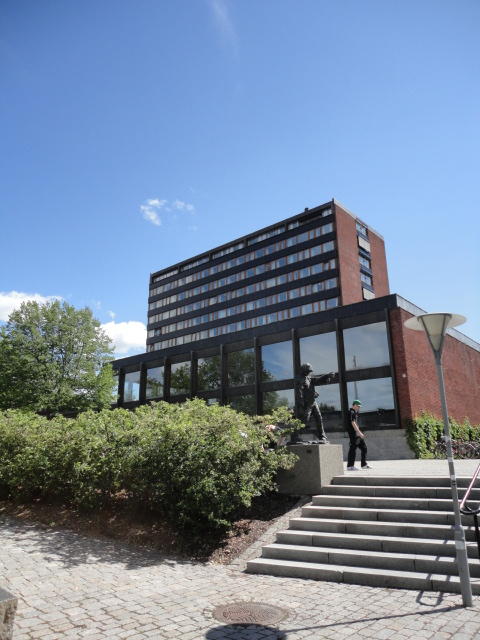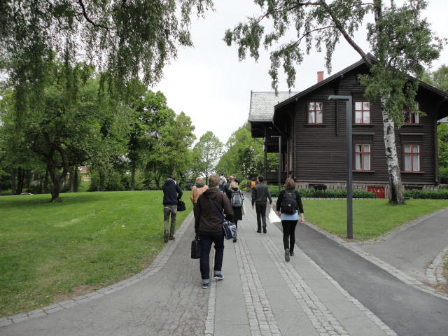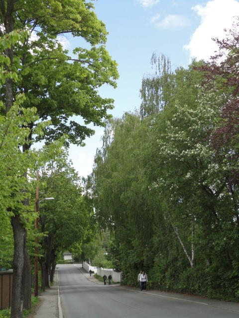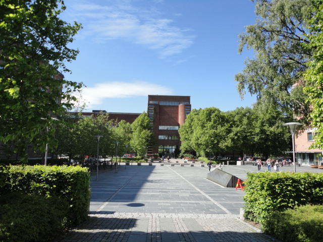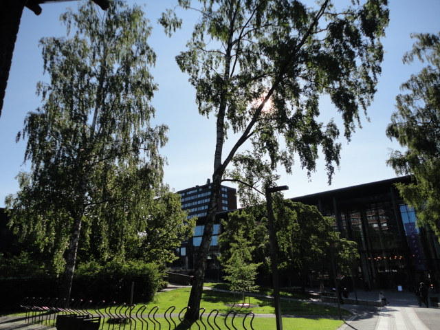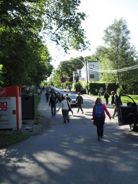 オスロ大学図書館は、メトロでは「Blindern」という駅から徒歩5分ほどです。 そしてコンサートセッション会場のNorwegian Academy of MusicとChateau Neufは向かい合った建物で、 メトロでは隣りの「Majorstuen」という駅から徒歩5分ほどです。 しかし両者はオスロ大学キャンパスの中にあるので、駅までの距離を考えると、 直接に歩いての移動でも10分ほどで変わりません。 この日はいい天気だったので、のんびりと歩いて、リハーサル会場のChateau Neufに移動しました。