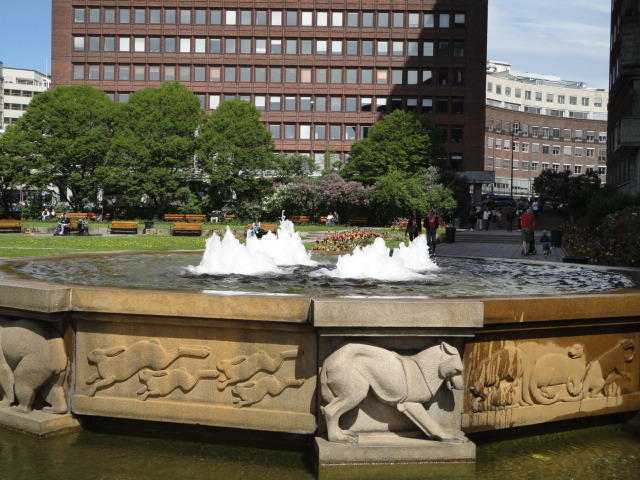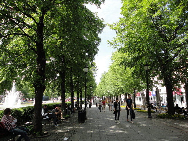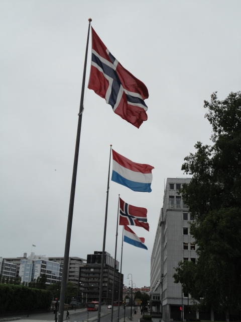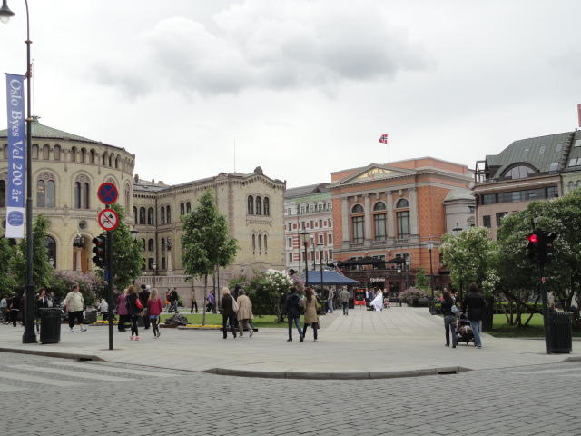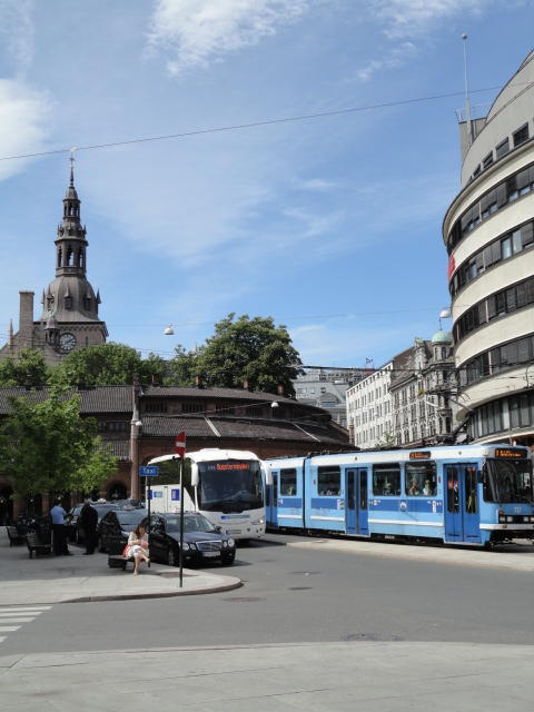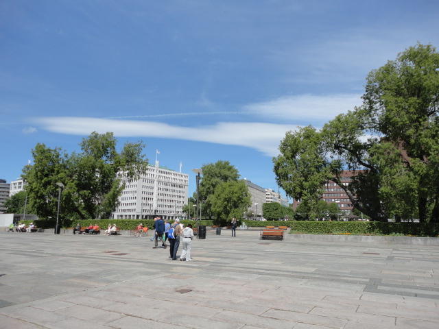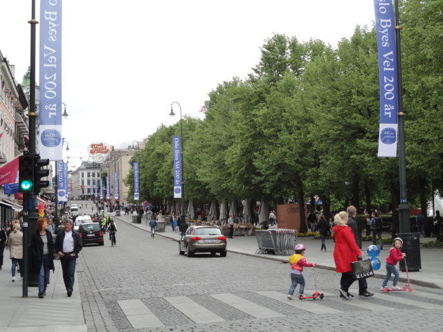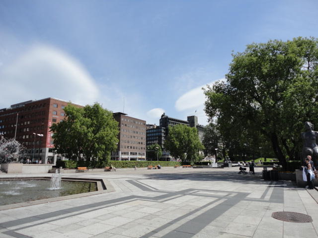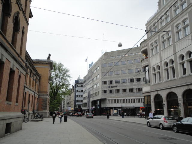 ムンク美術館から市内に戻り、オスロ中央駅から王宮までずっと続く「カール・ヨハン通り」のあたりを散策し、 トラムにも馴れようとあちこち乗りました(オスロカードでタダなので)。 ただしこの日は午後になって、小雨がパラパラと降ったりして折り畳み傘が活躍したので、 あまり遠出することもなくホテルに戻りました。