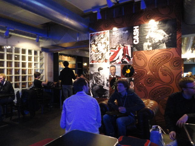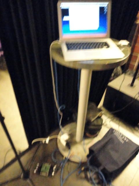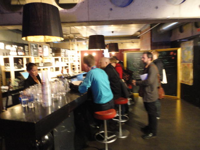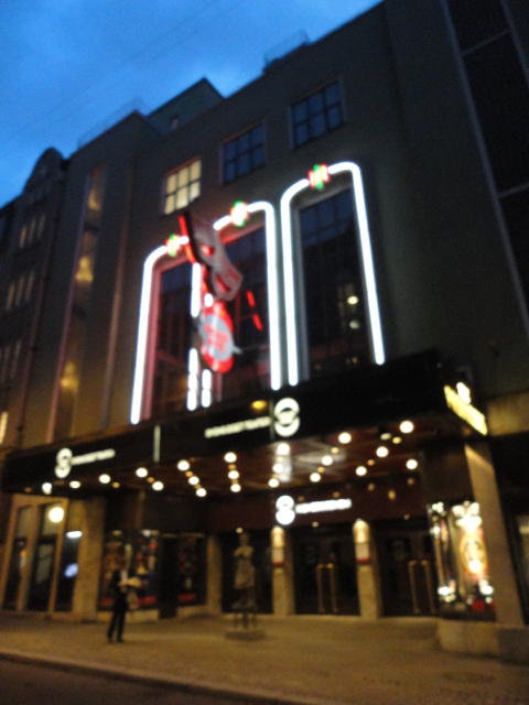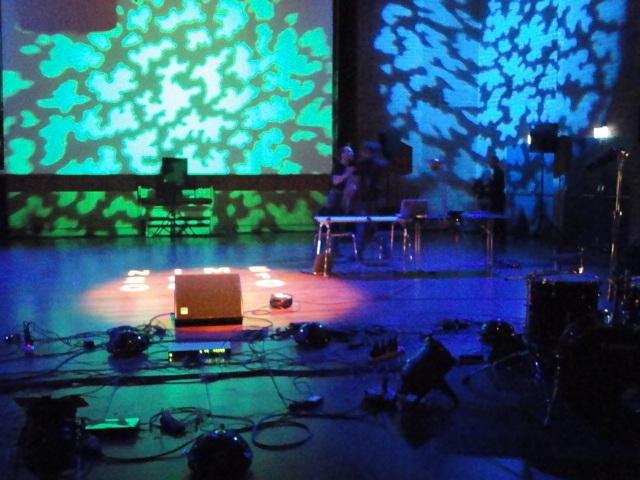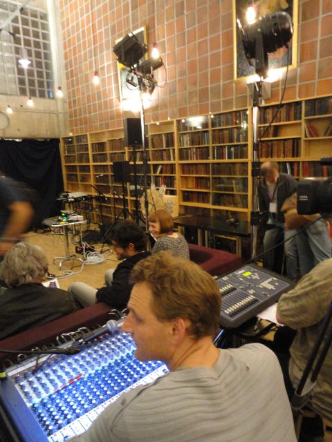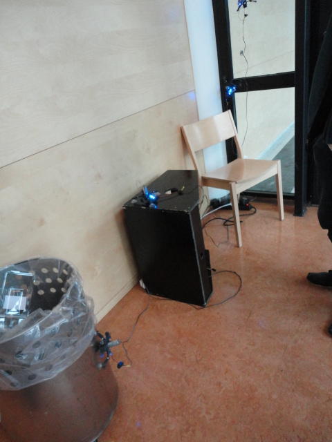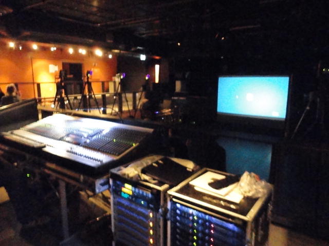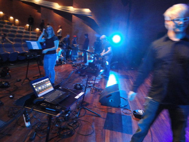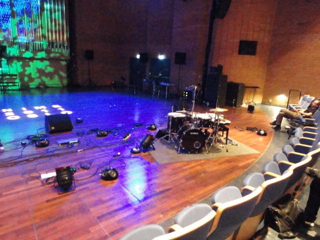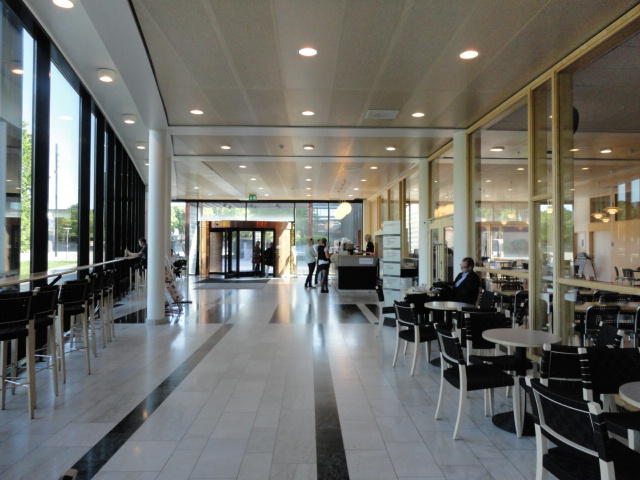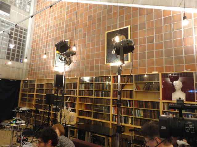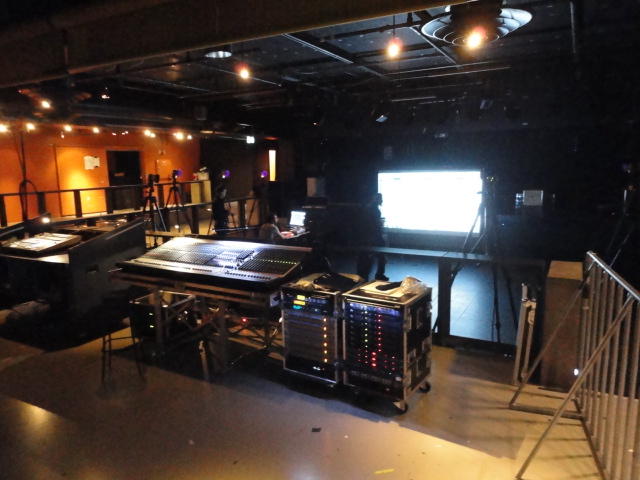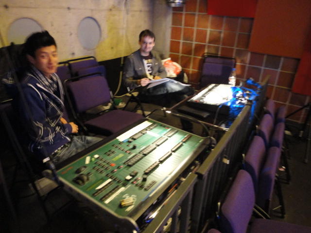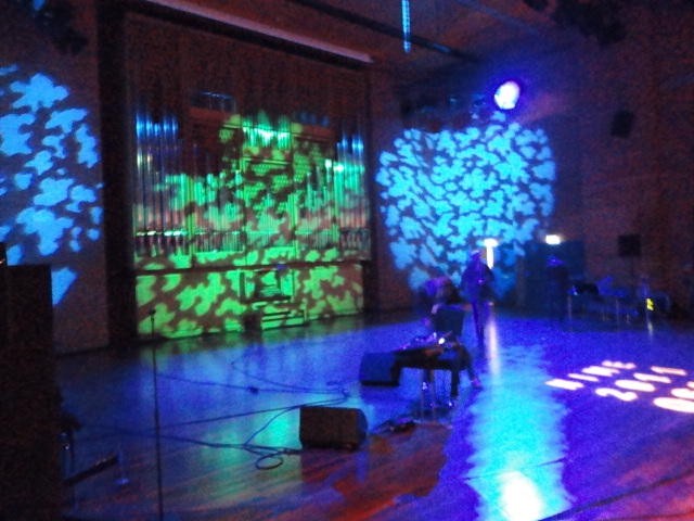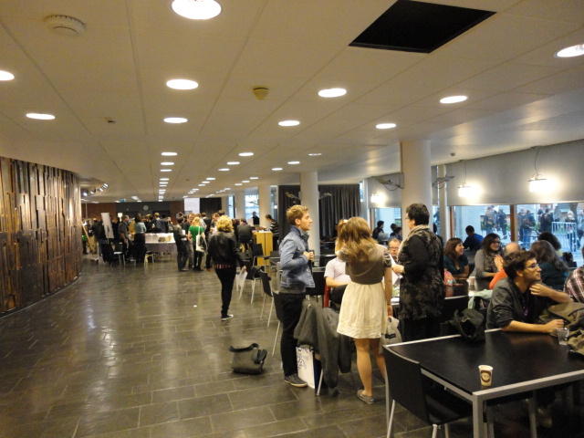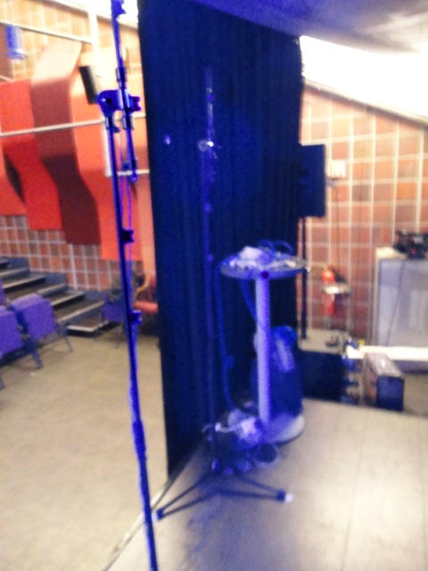 Chateau Neufというのはオスロ大学のStudent House(学生会館?)で、中にはサークル関係、 パブなどがあり、ホール、ライブスペースなども多数ありました。 過去にはセックスピストルズのライヴとかもあった名門らしいです。 ここでセンサをセッティングして(2回生には講義の中で見せましたよね?)、 リハを無事に済ませました。 テンションを残しておくために、サウンドチェックの後では、通しリハをたった1度だけです。 リハを終えると、再びキャンパス内を図書館に戻り、ランチブレークに入っていたので、カフェで休憩しました。