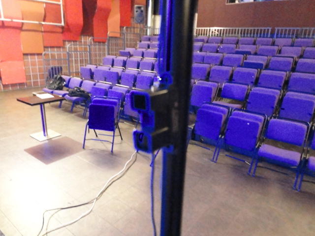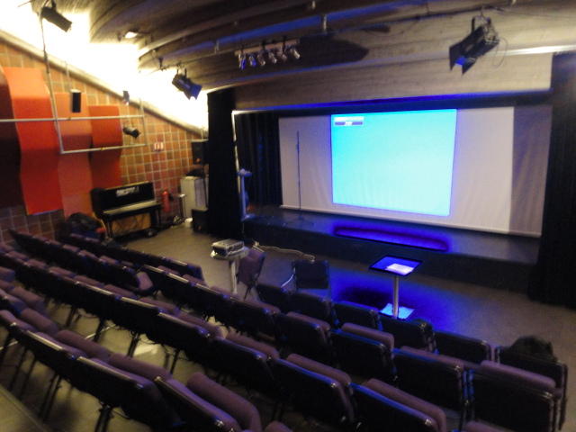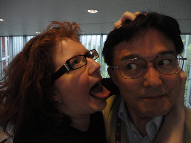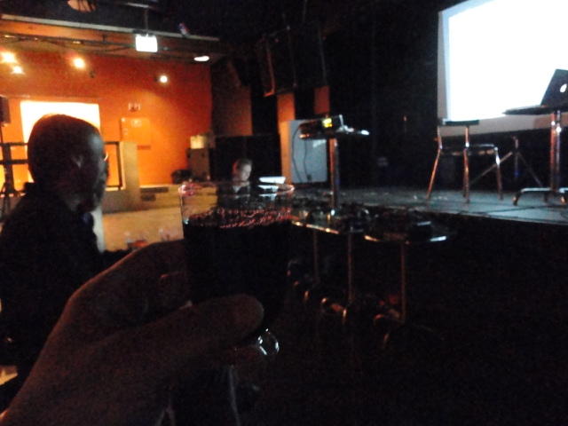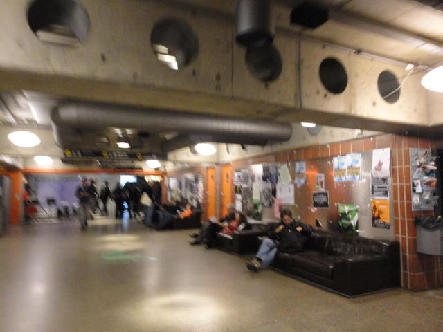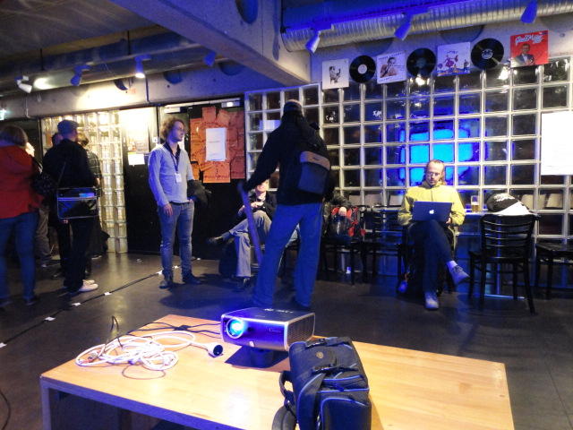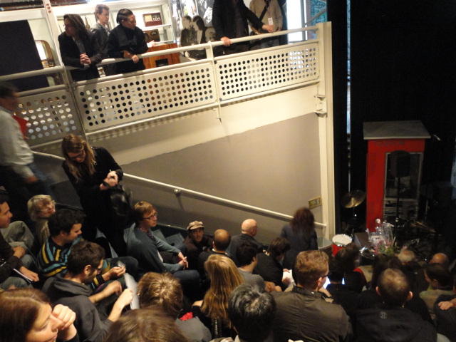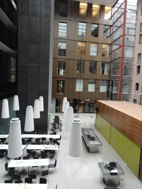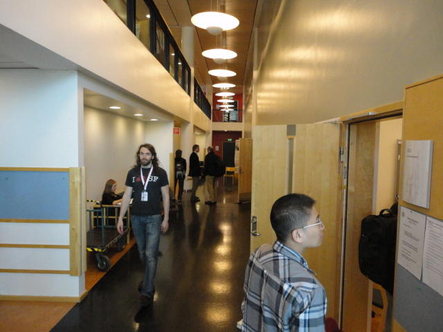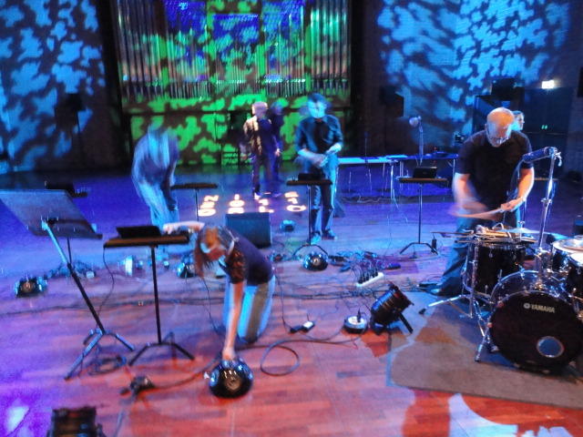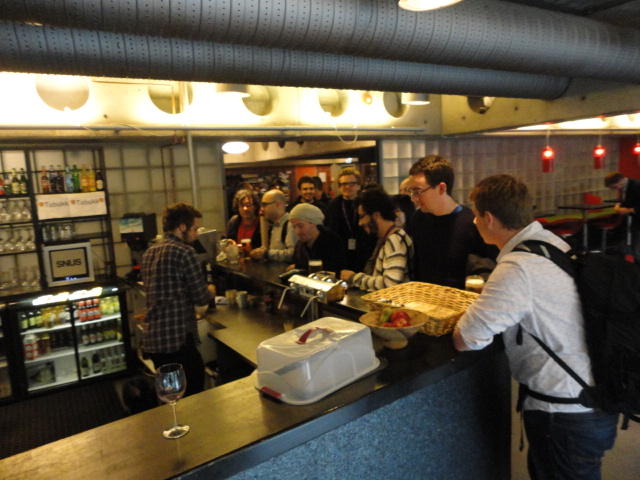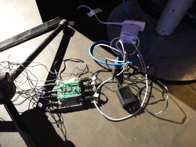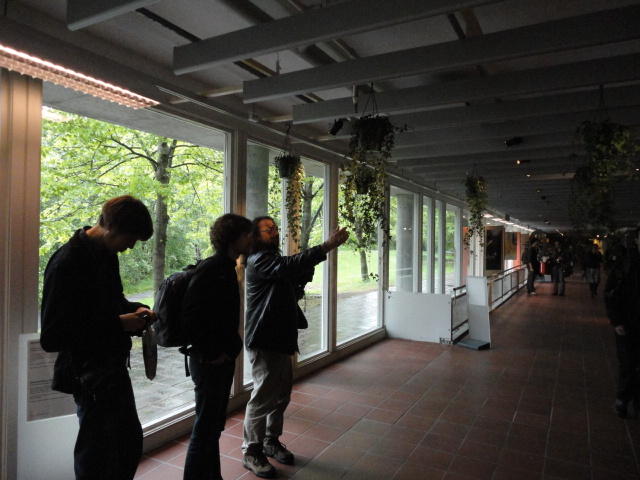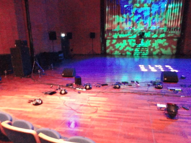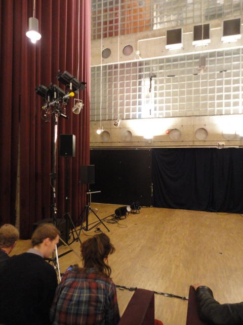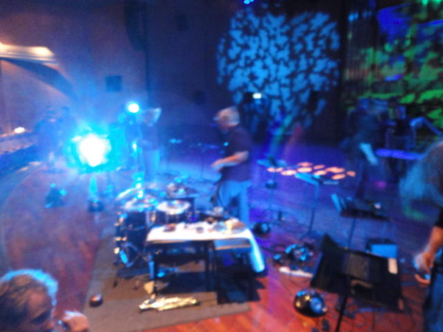 Chateau Neufというのはオスロ大学のStudent House(学生会館?)で、中にはサークル関係、 パブなどがあり、ホール、ライブスペースなども多数ありました。 過去にはセックスピストルズのライヴとかもあった名門らしいです。 ここでセンサをセッティングして(2回生には講義の中で見せましたよね?)、 リハを無事に済ませました。 テンションを残しておくために、サウンドチェックの後では、通しリハをたった1度だけです。 リハを終えると、再びキャンパス内を図書館に戻り、ランチブレークに入っていたので、カフェで休憩しました。